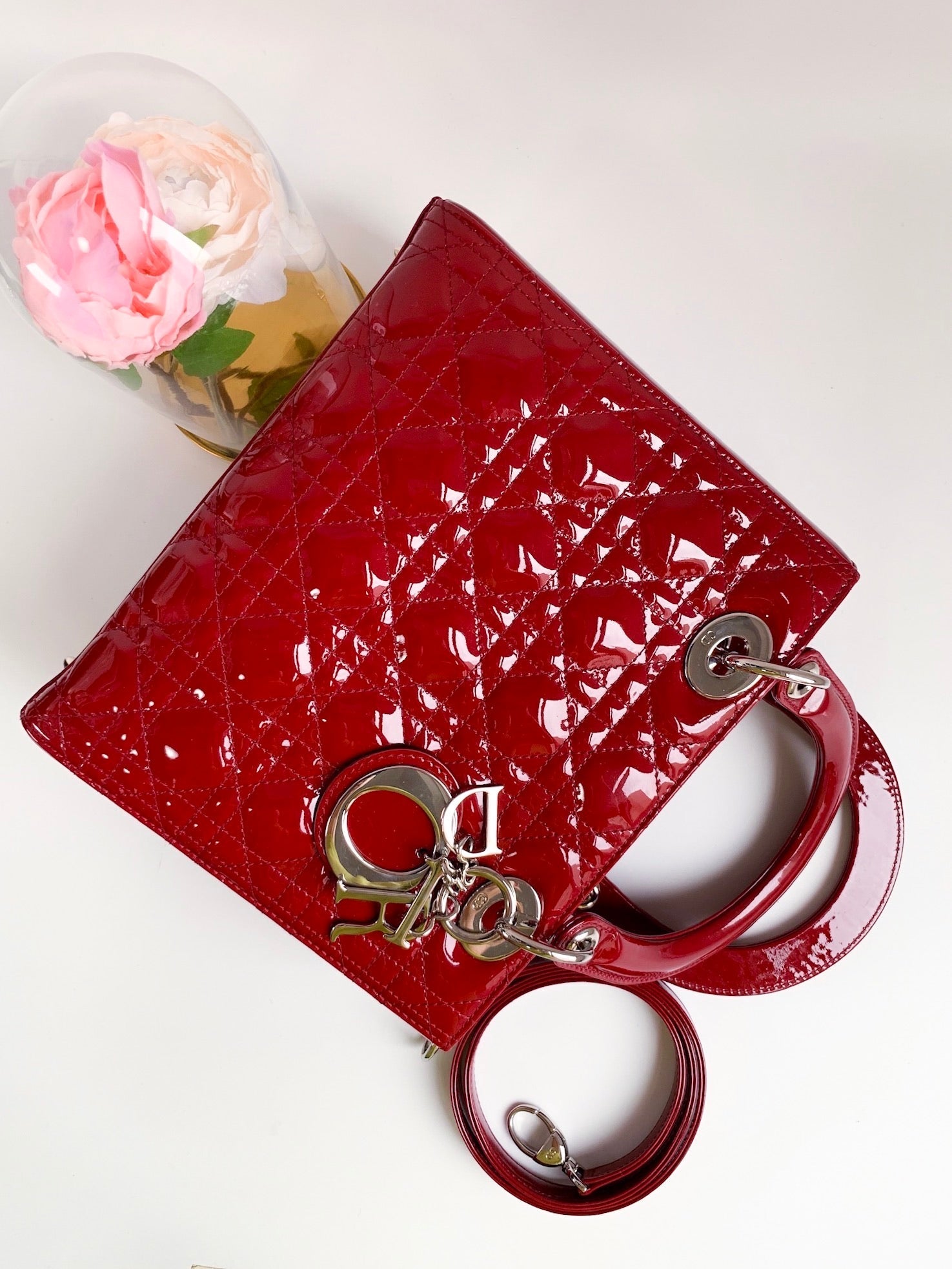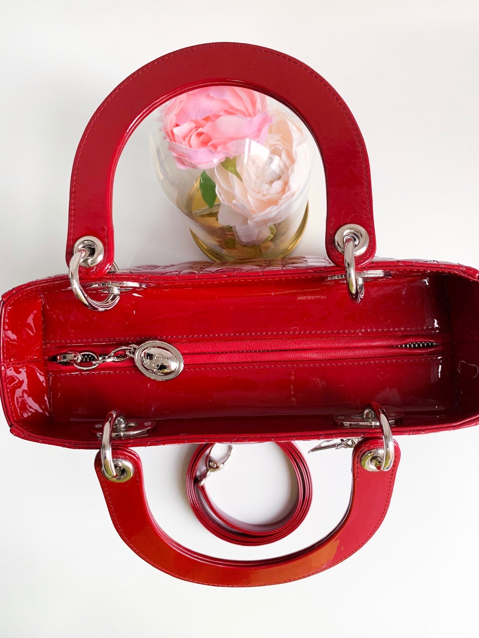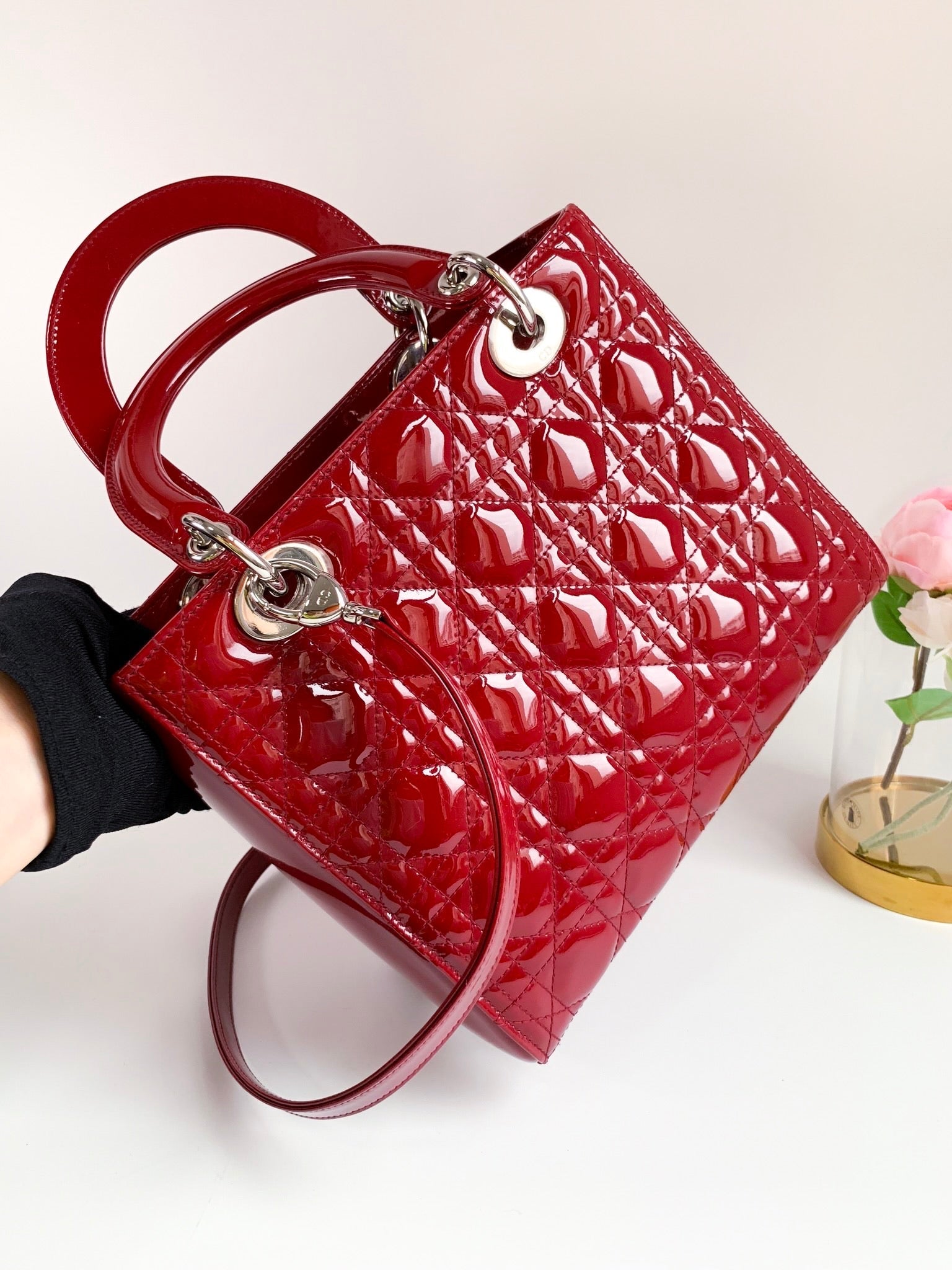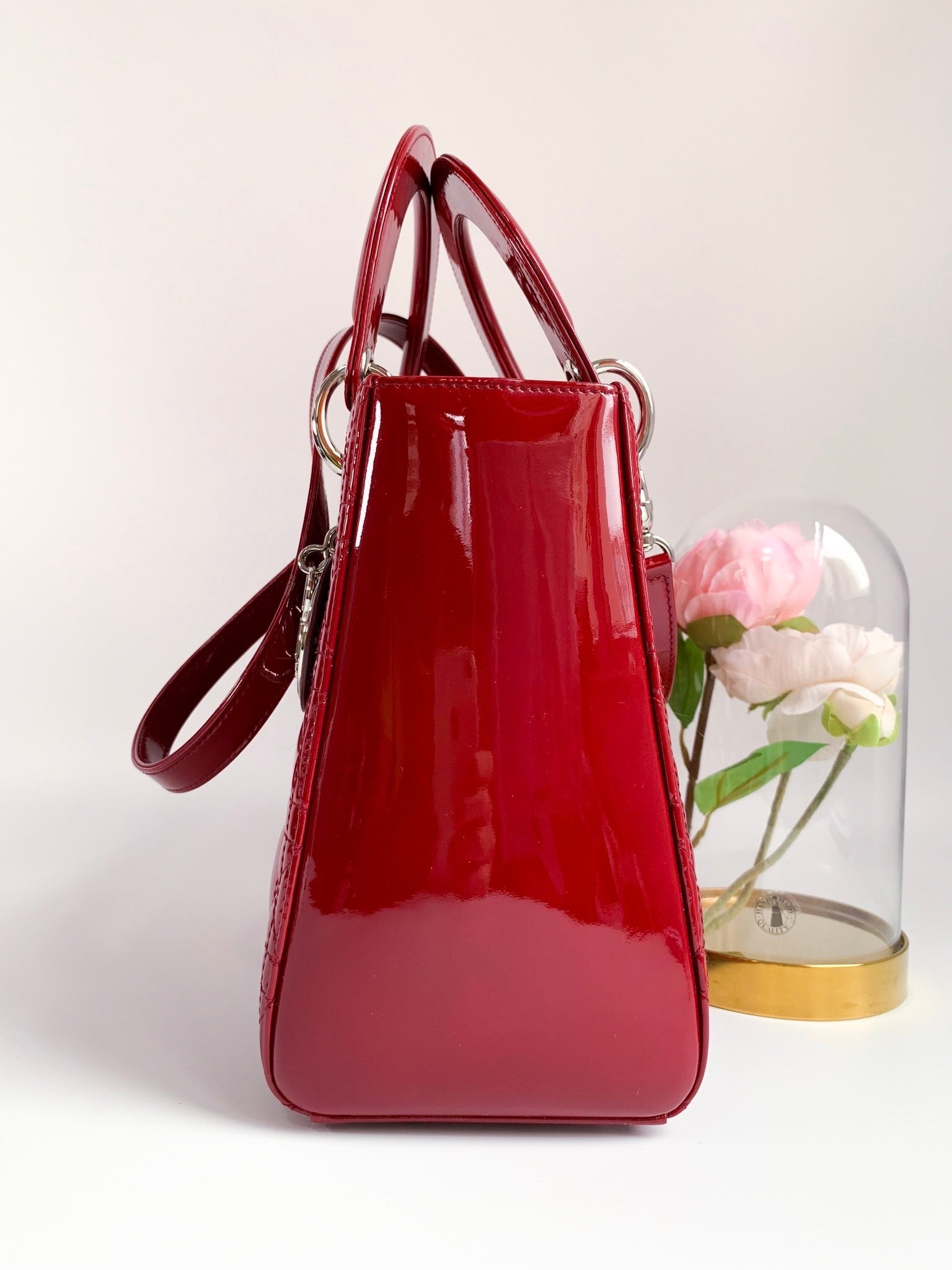 Christian Dior Patent Cannage Medium Lady Dior Red Silver Hardware