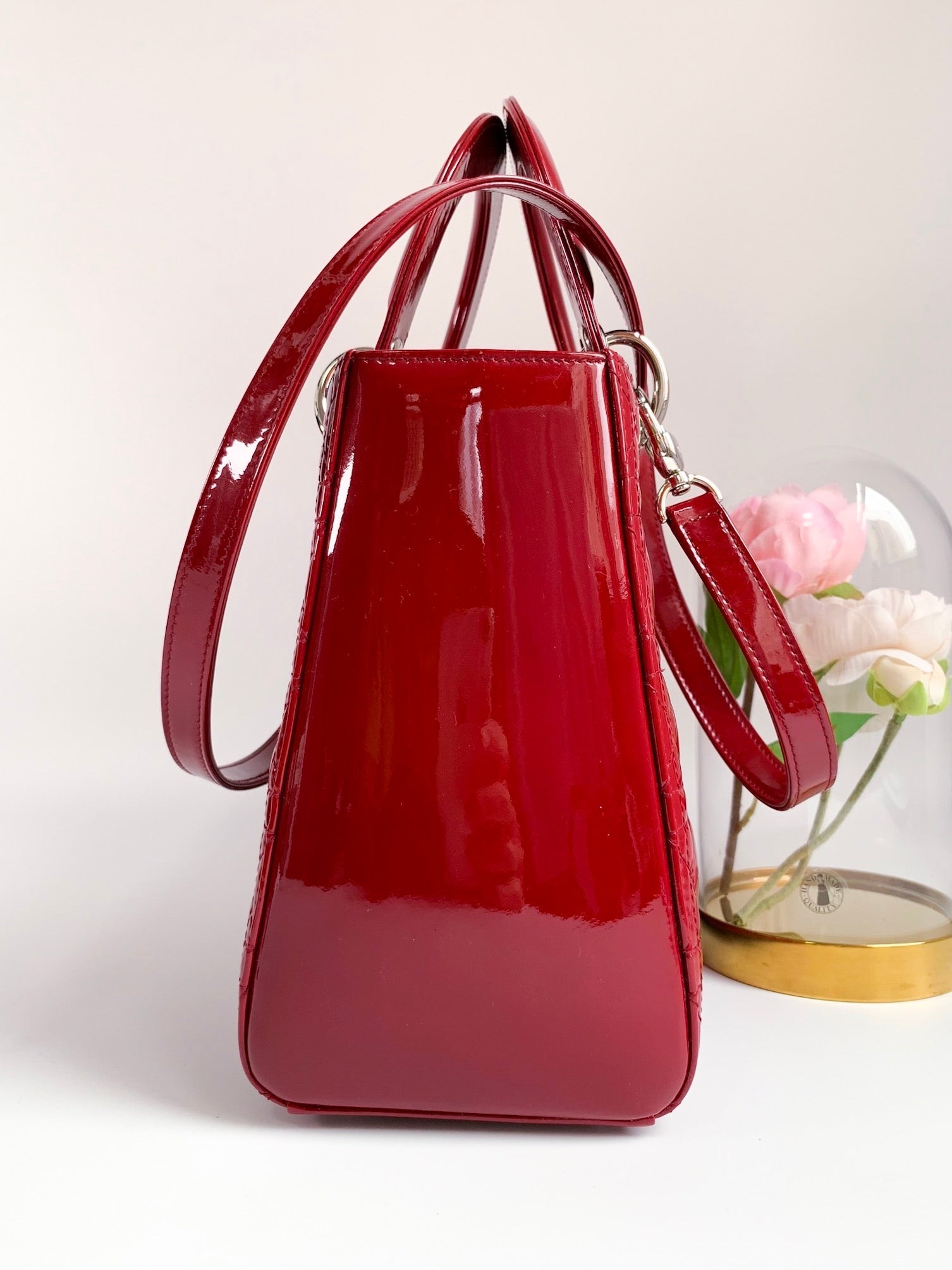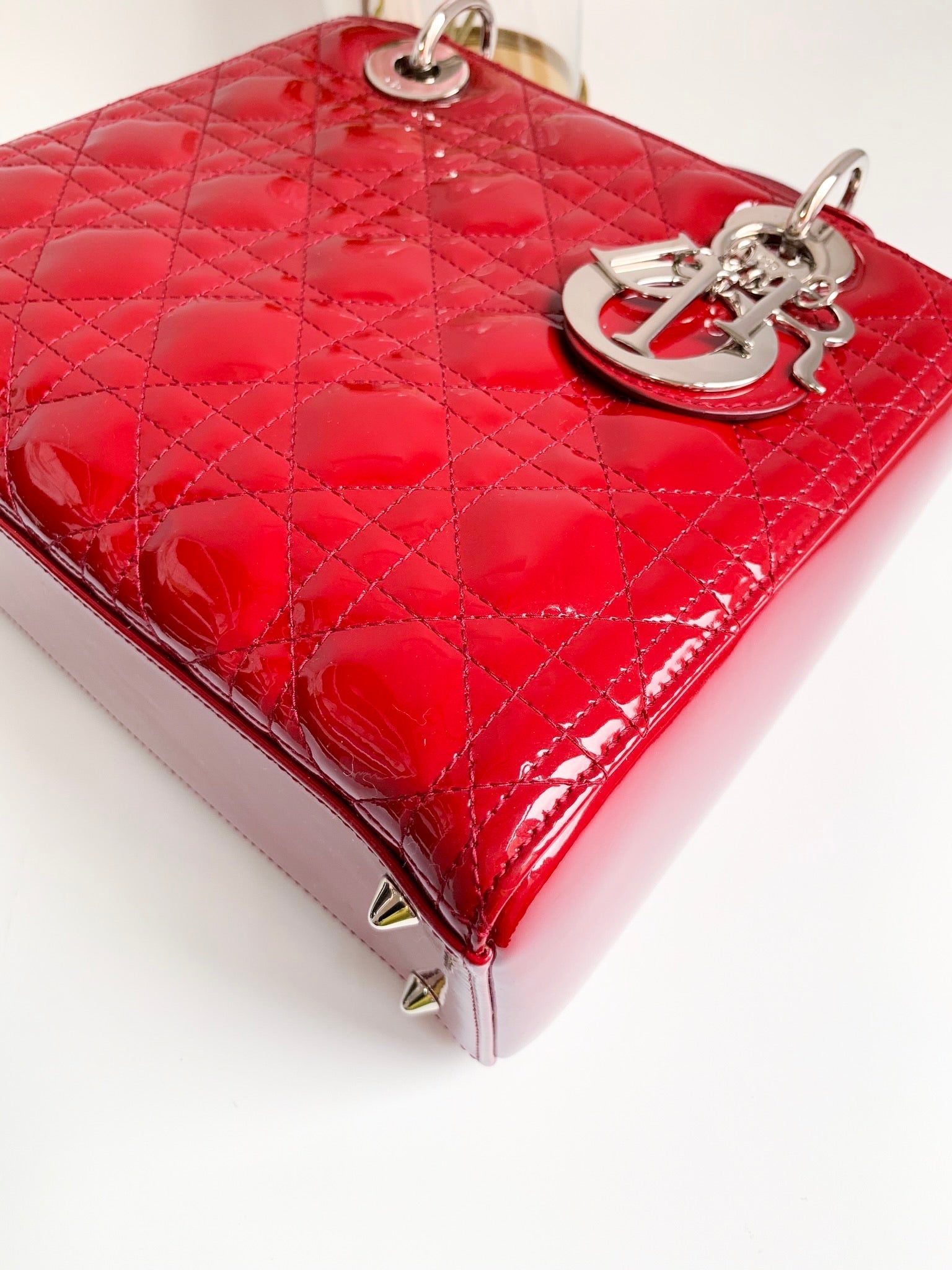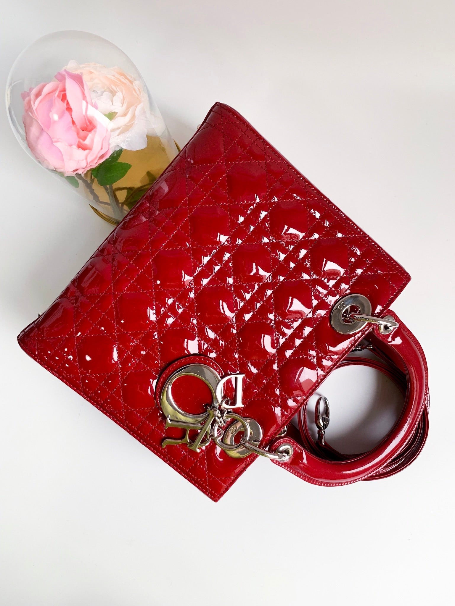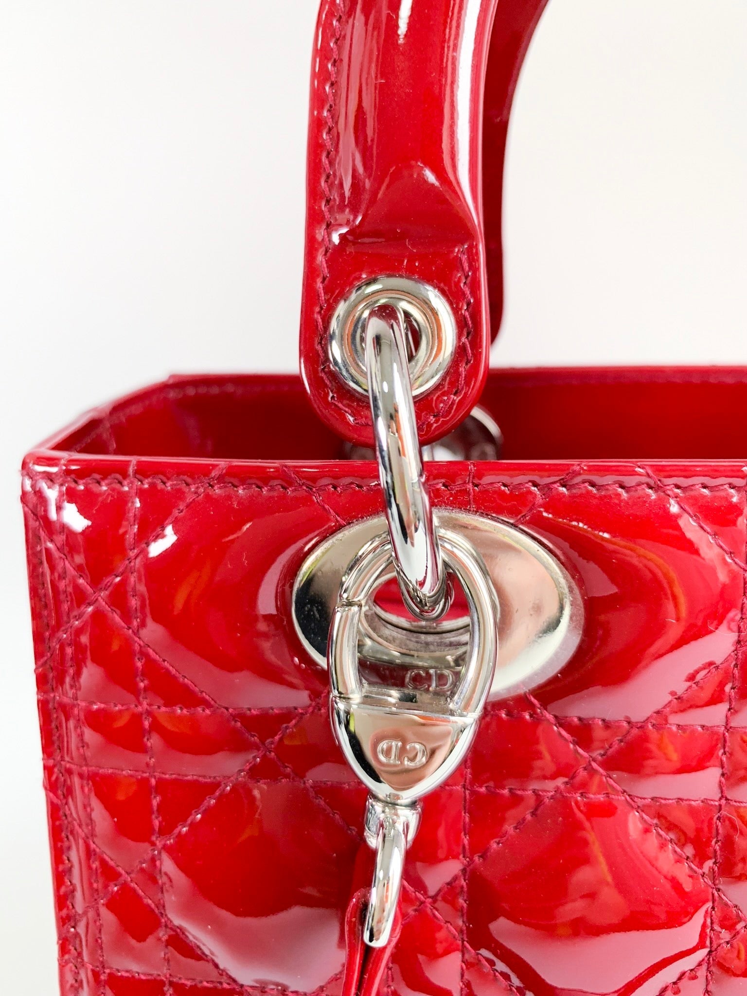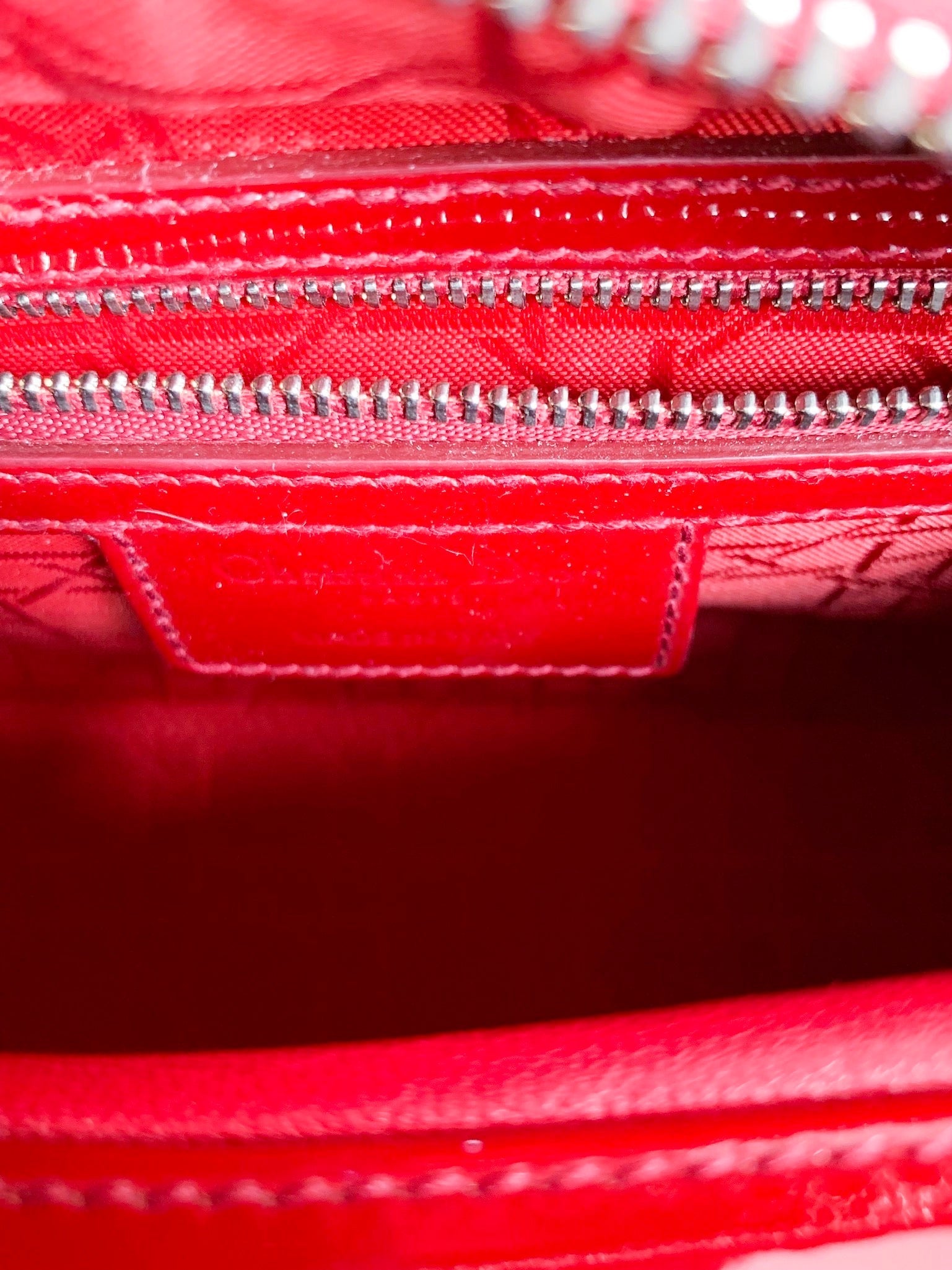 Christian Dior Patent Cannage Medium Lady Dior Red Silver Hardware