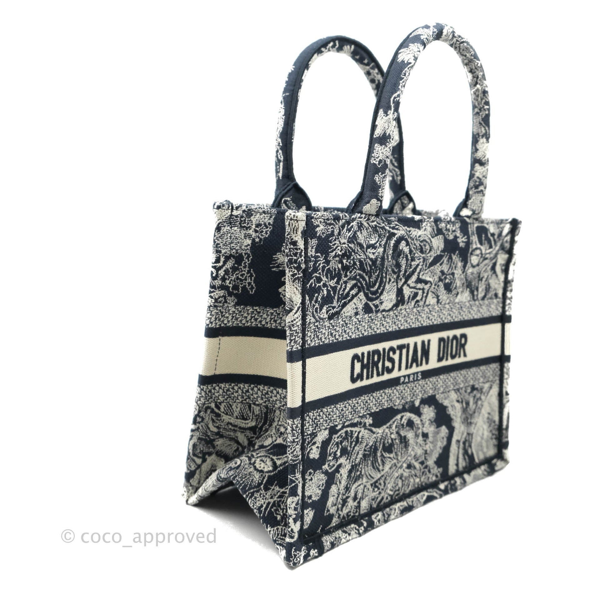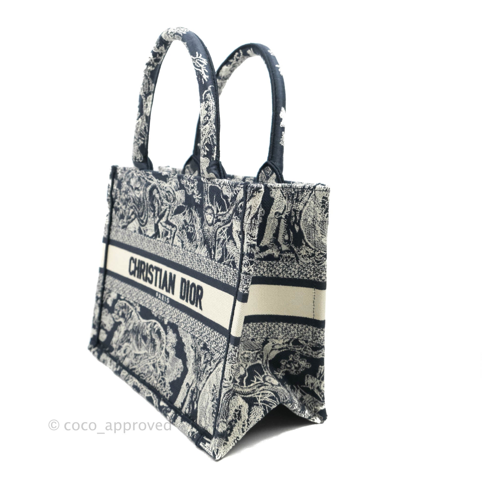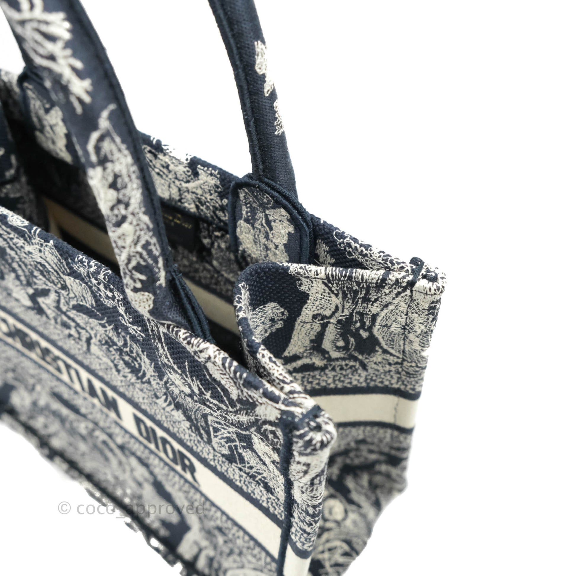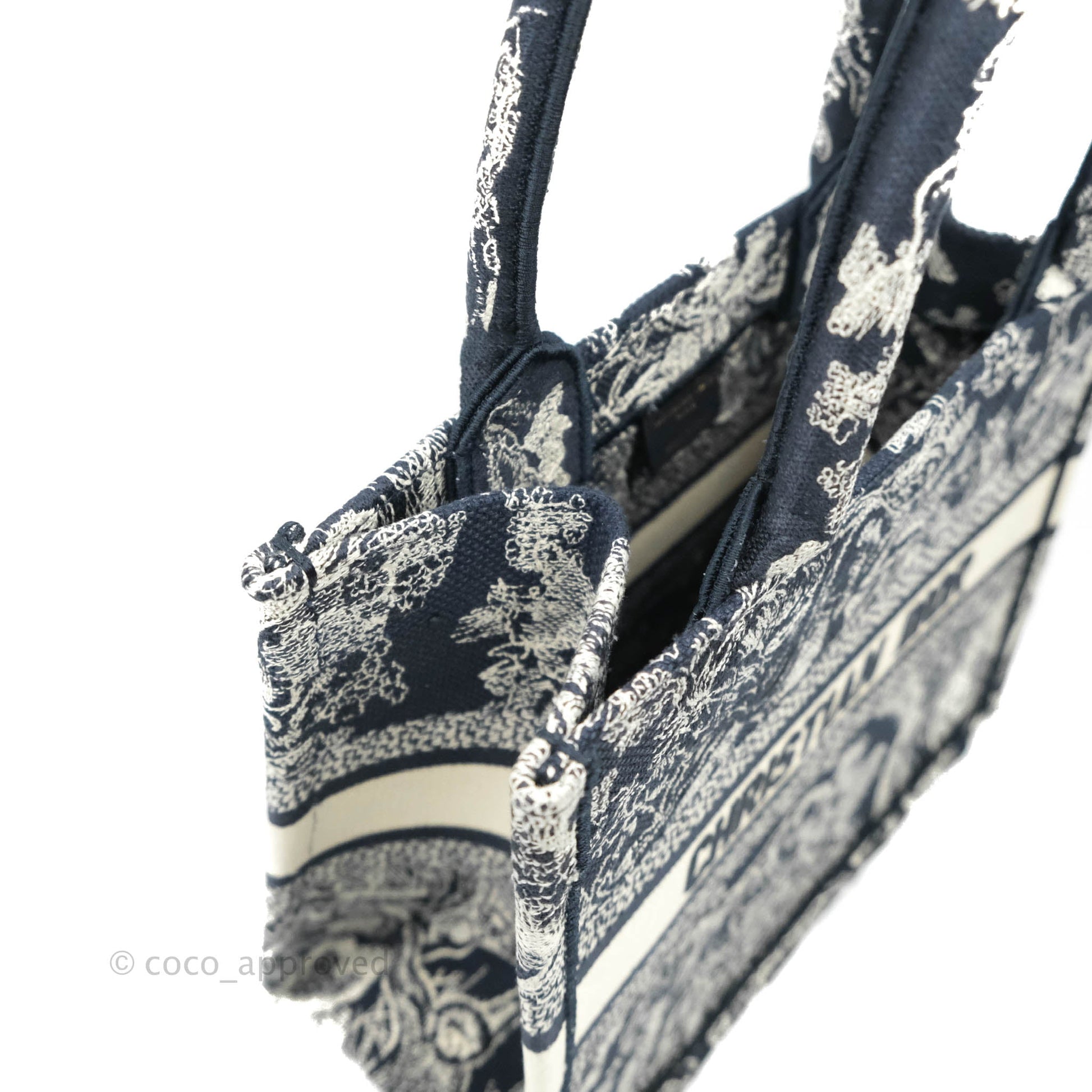 Christian Dior New Small Embroidered Toile De Jouy Navy Canvas Book Tote