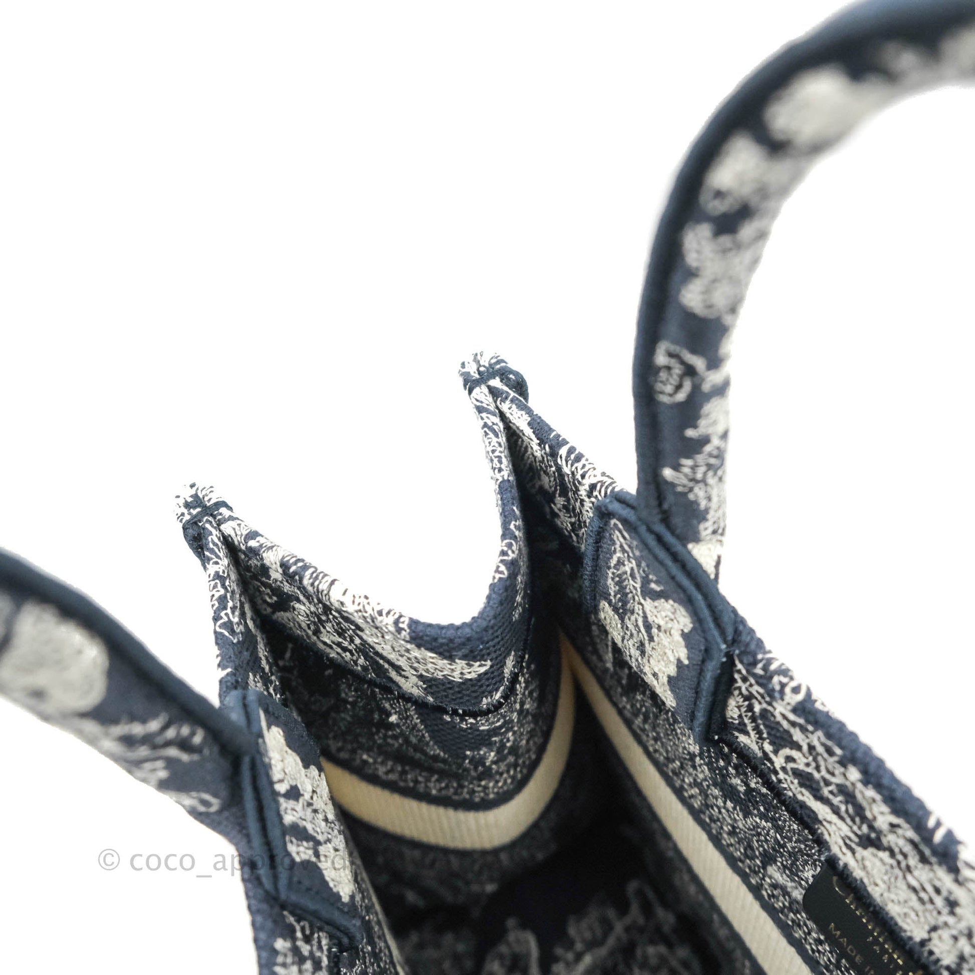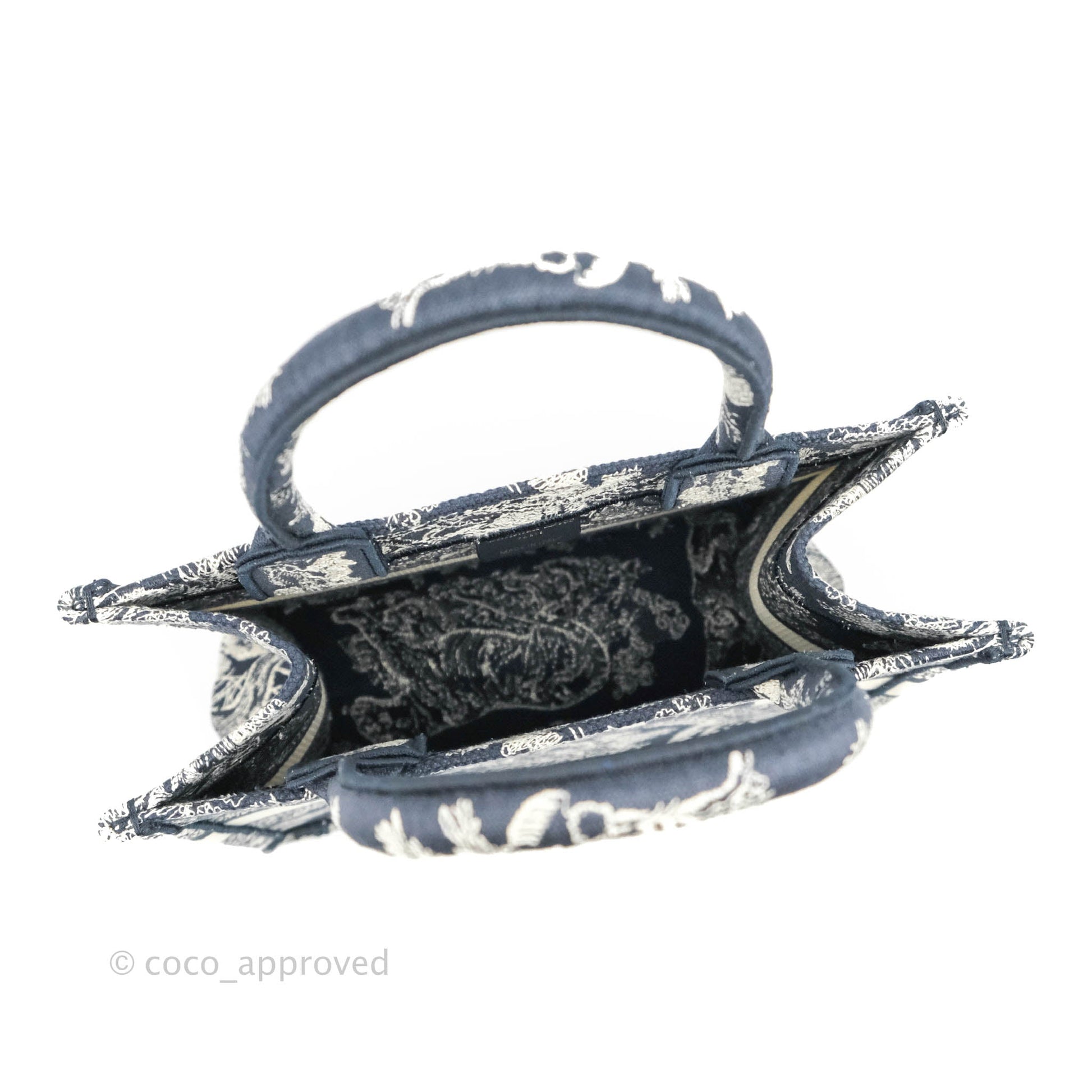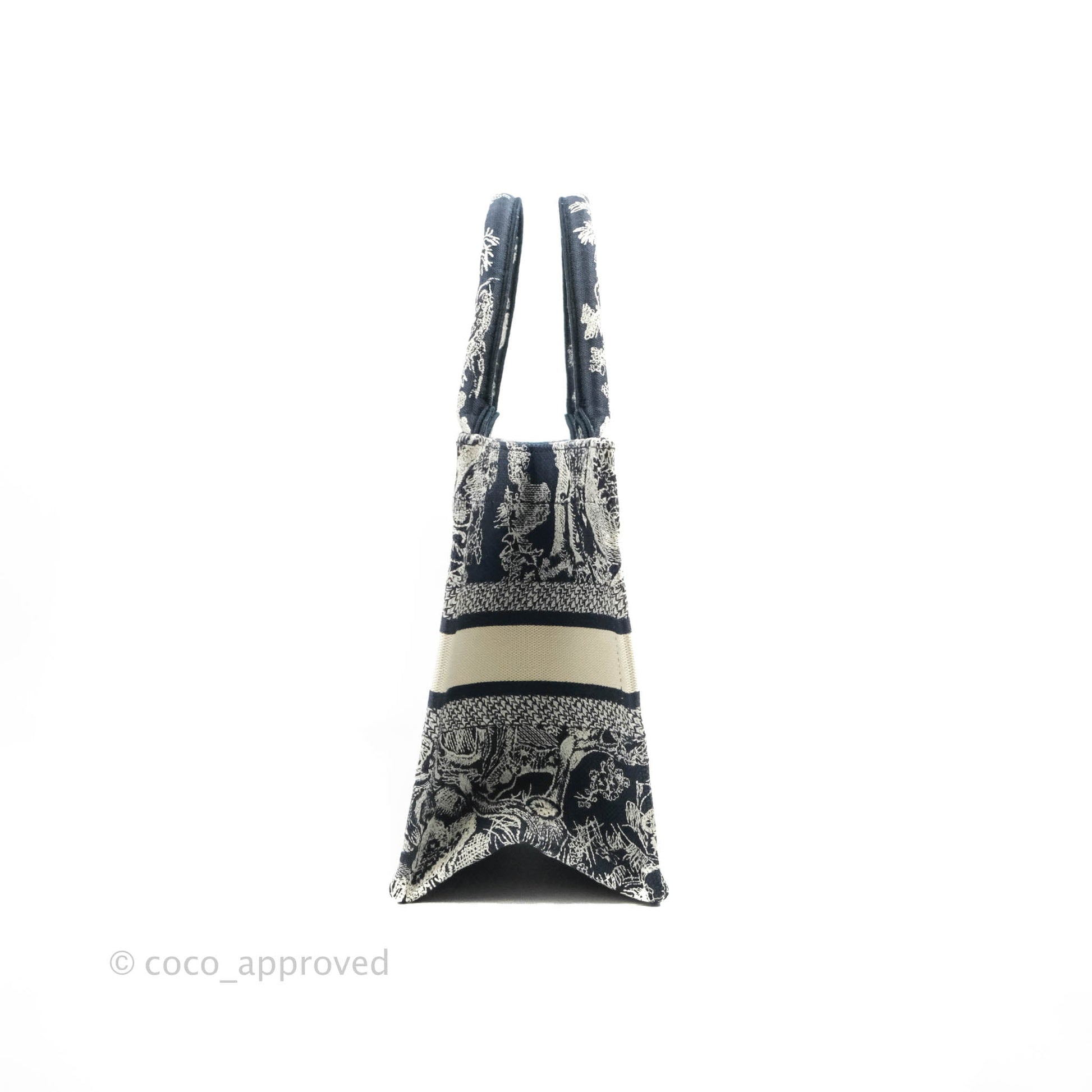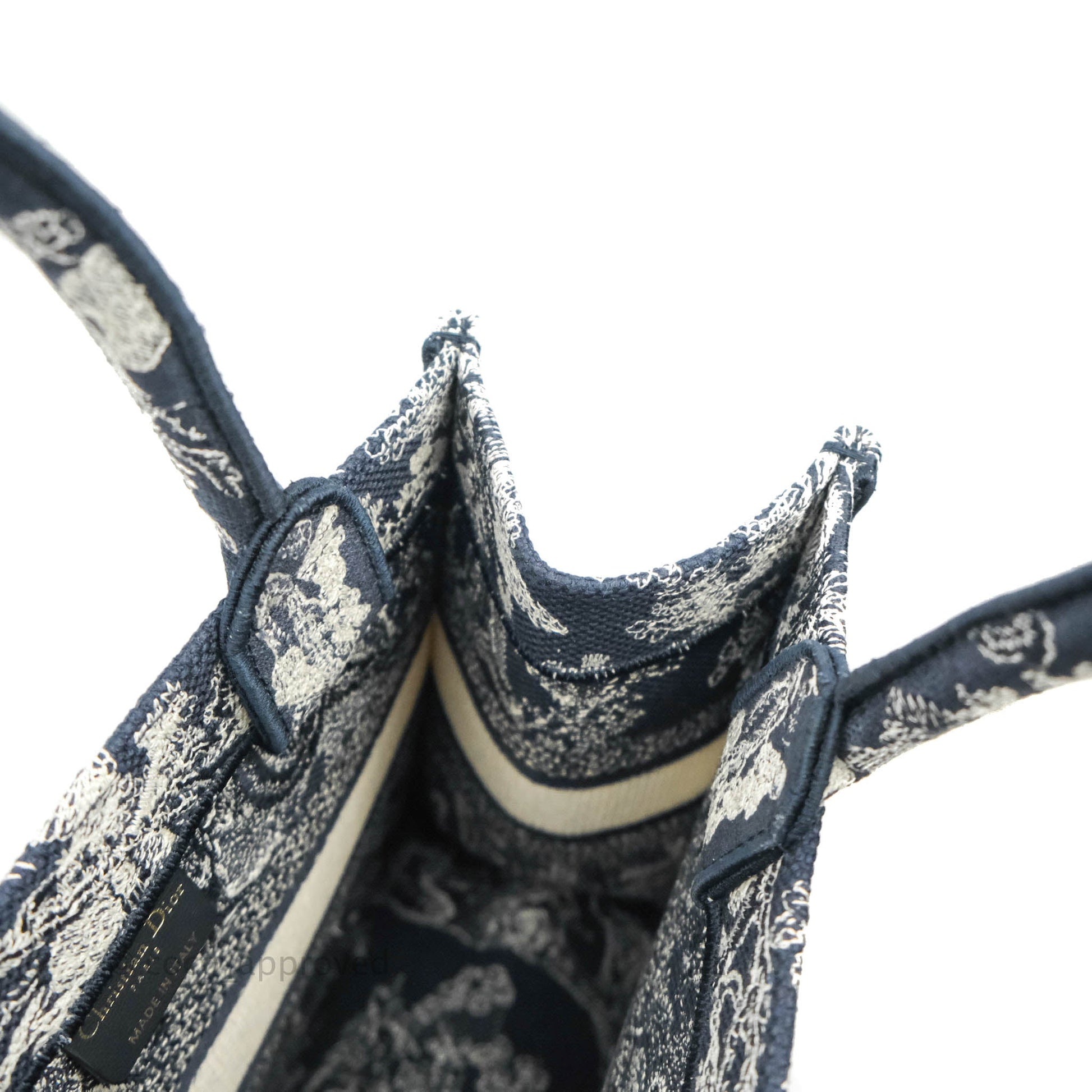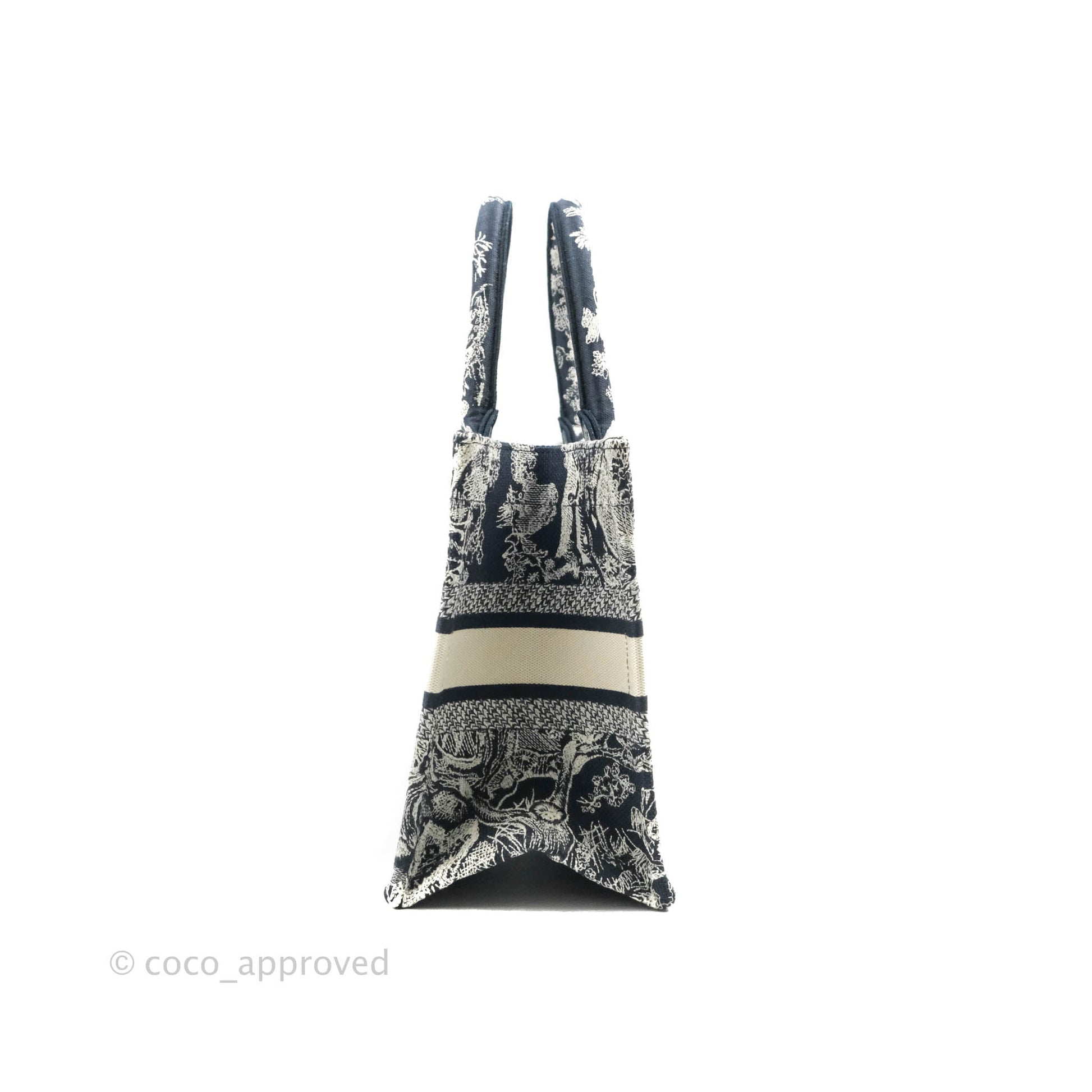 Christian Dior New Small Embroidered Toile De Jouy Navy Canvas Book Tote