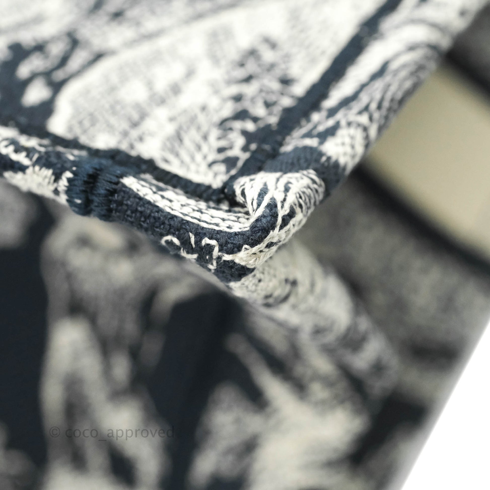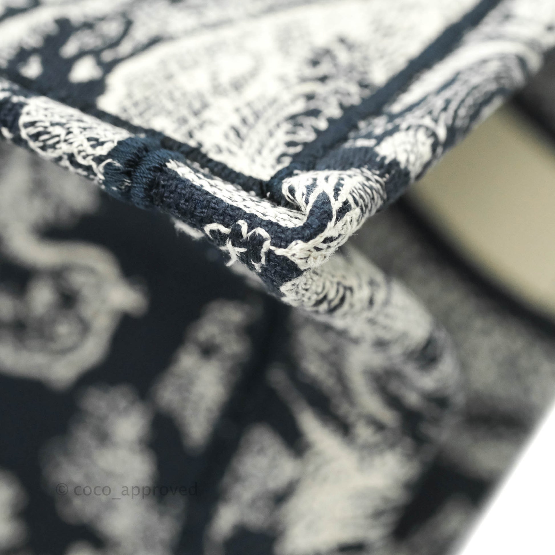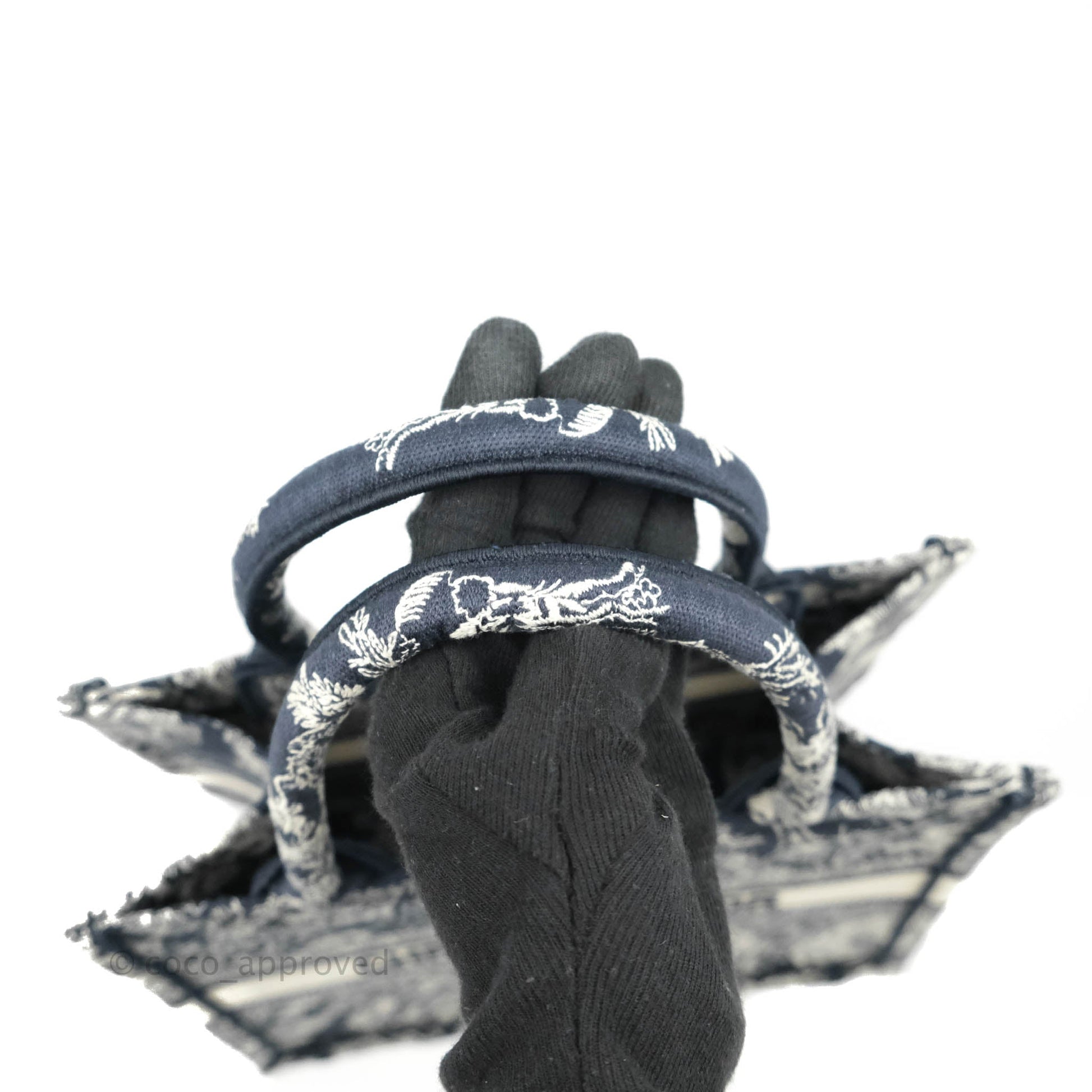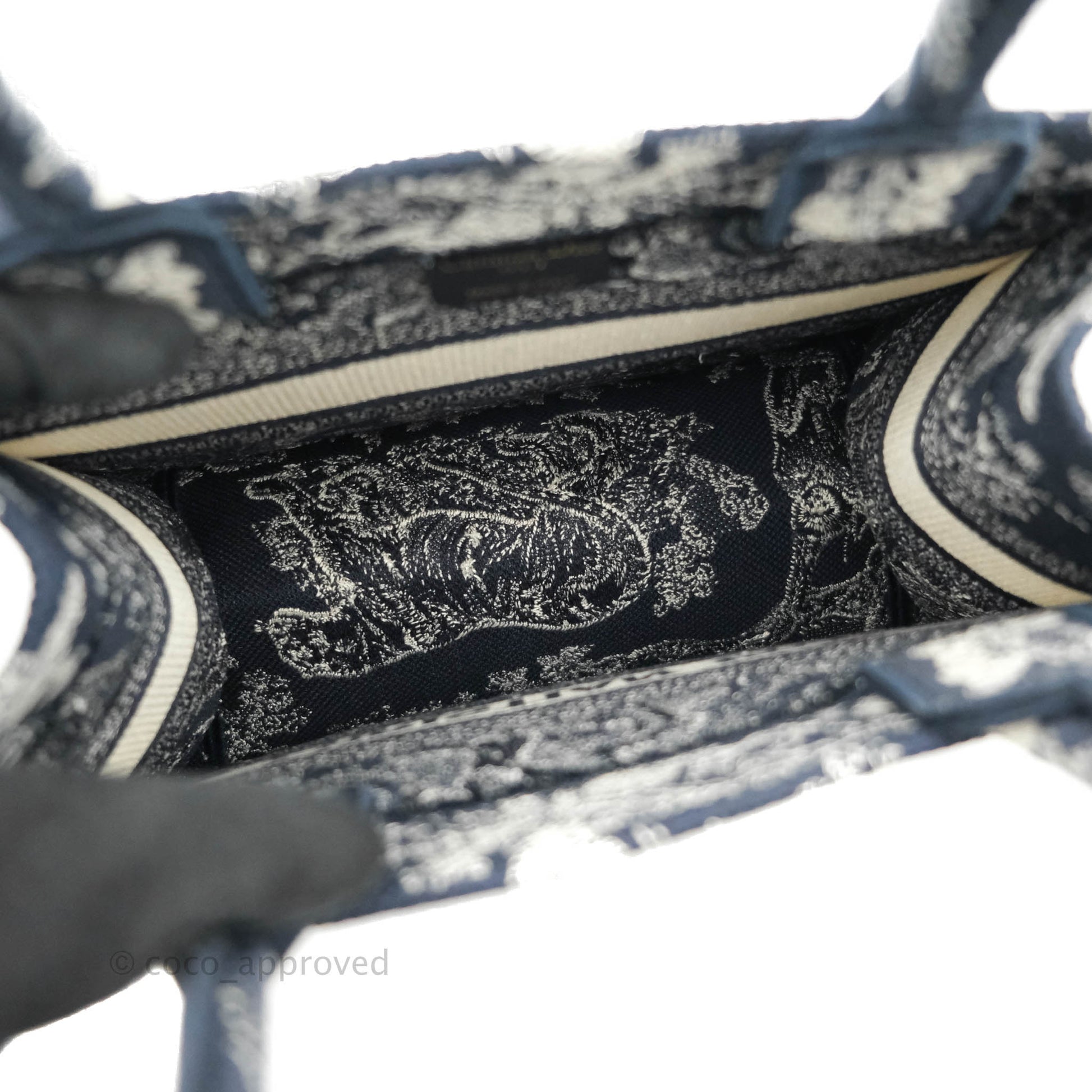 Christian Dior New Small Embroidered Toile De Jouy Navy Canvas Book Tote