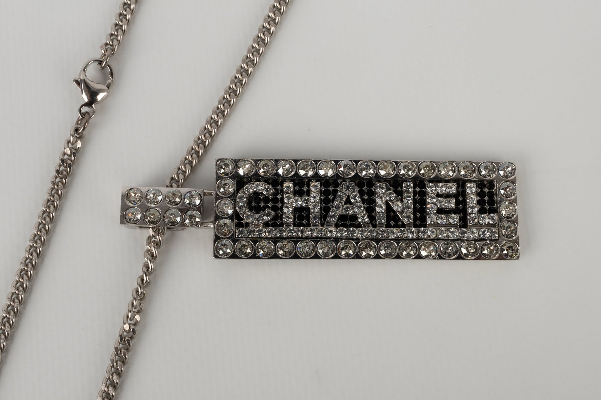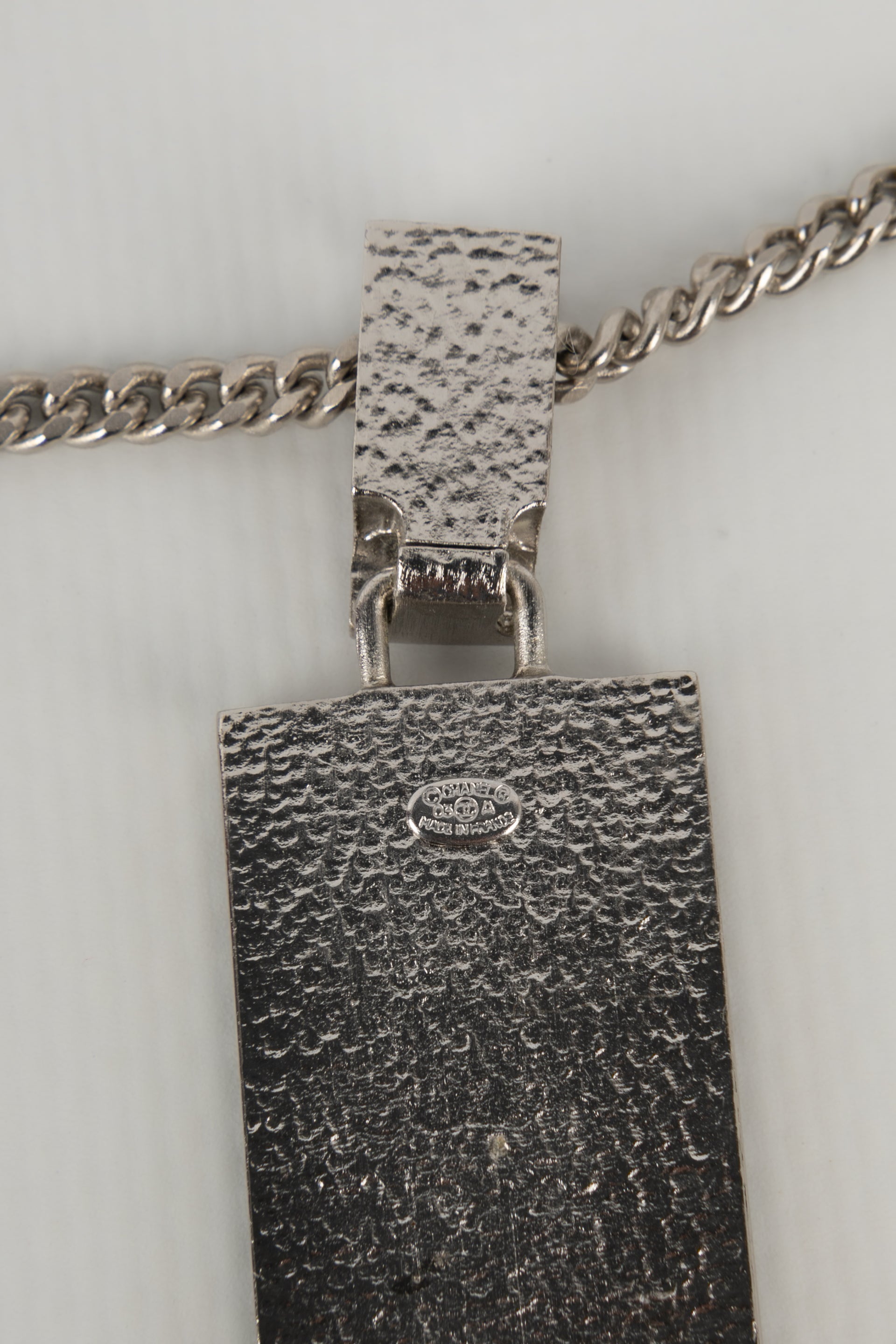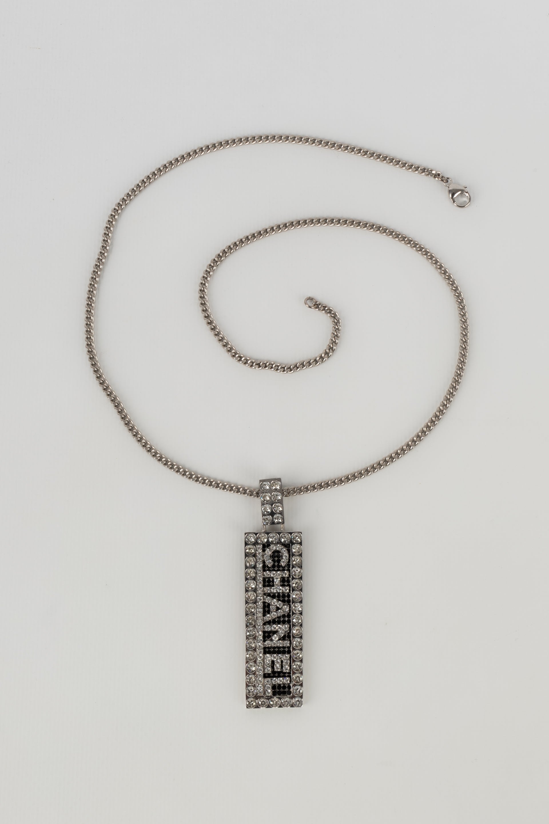 CHANEL - (Made in France) Collier pendentif en mtal argent et strass de Swarovski. Collection Automne-Hiver 2003.