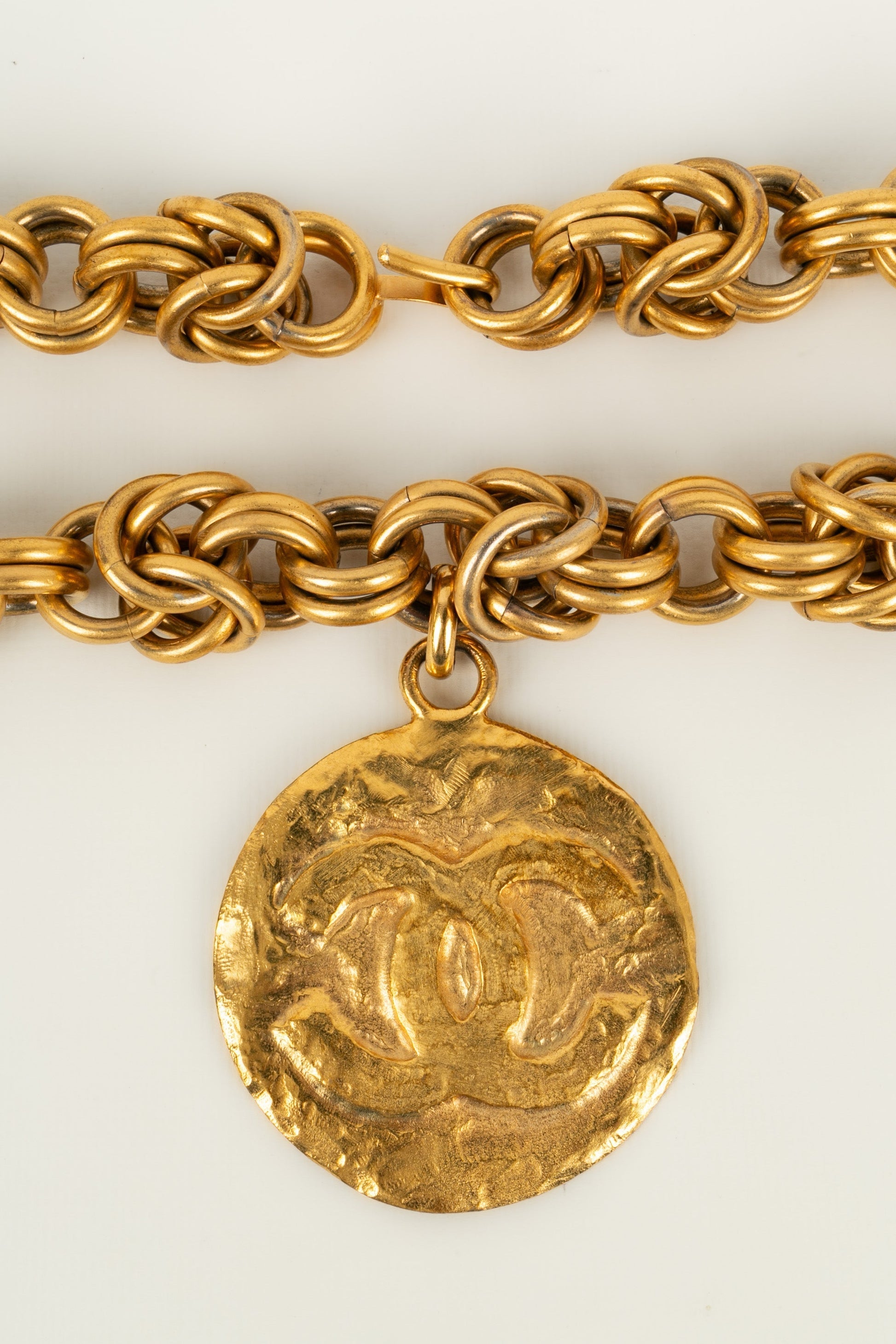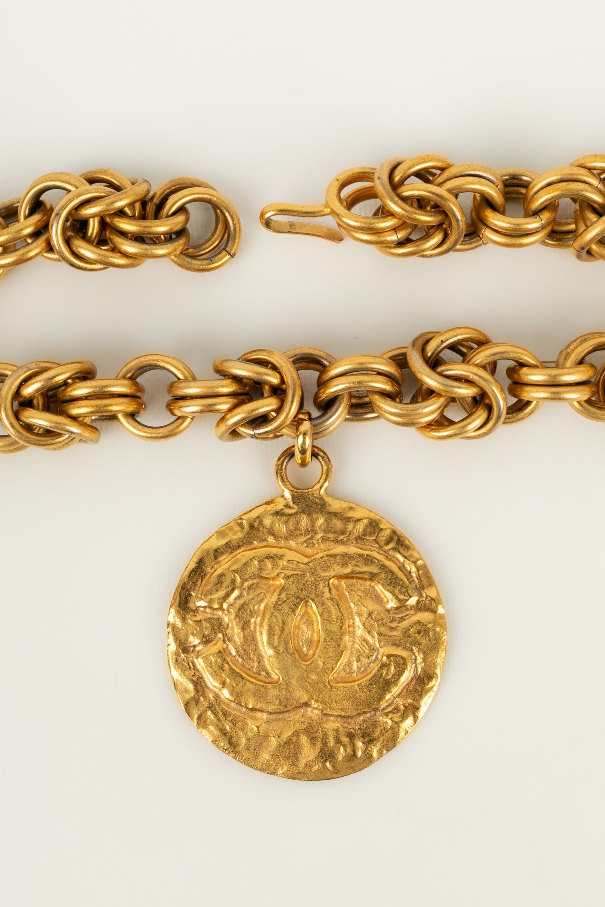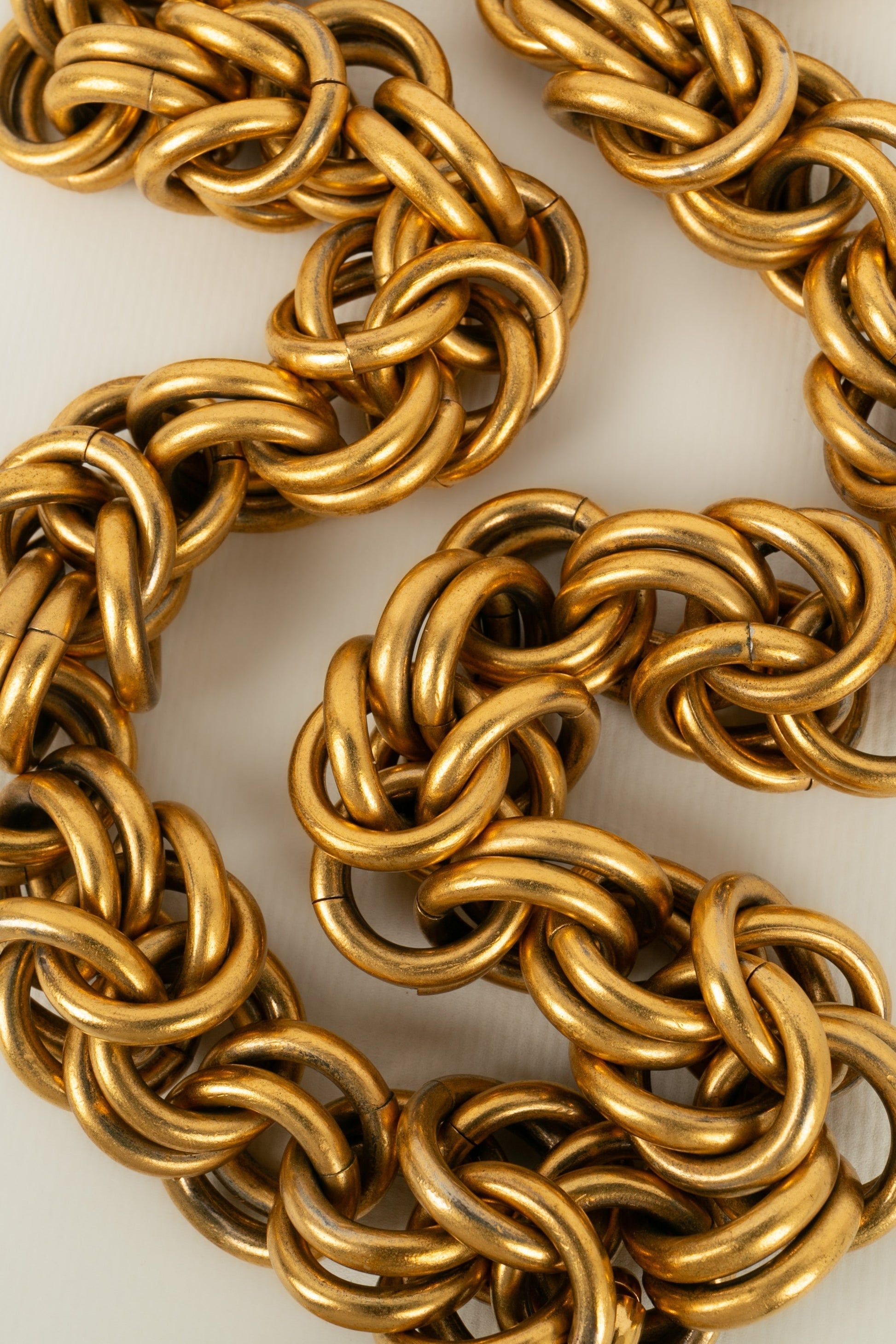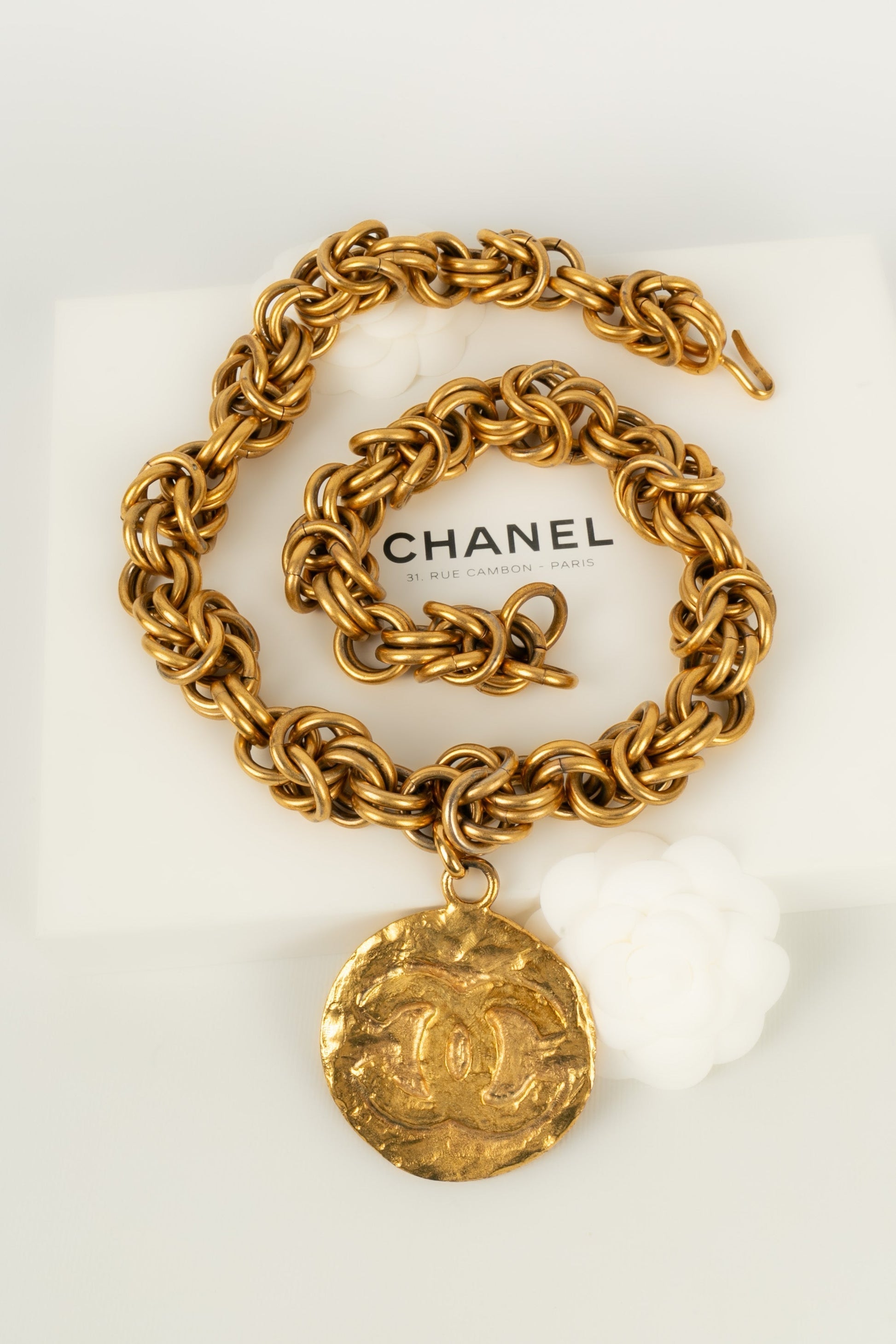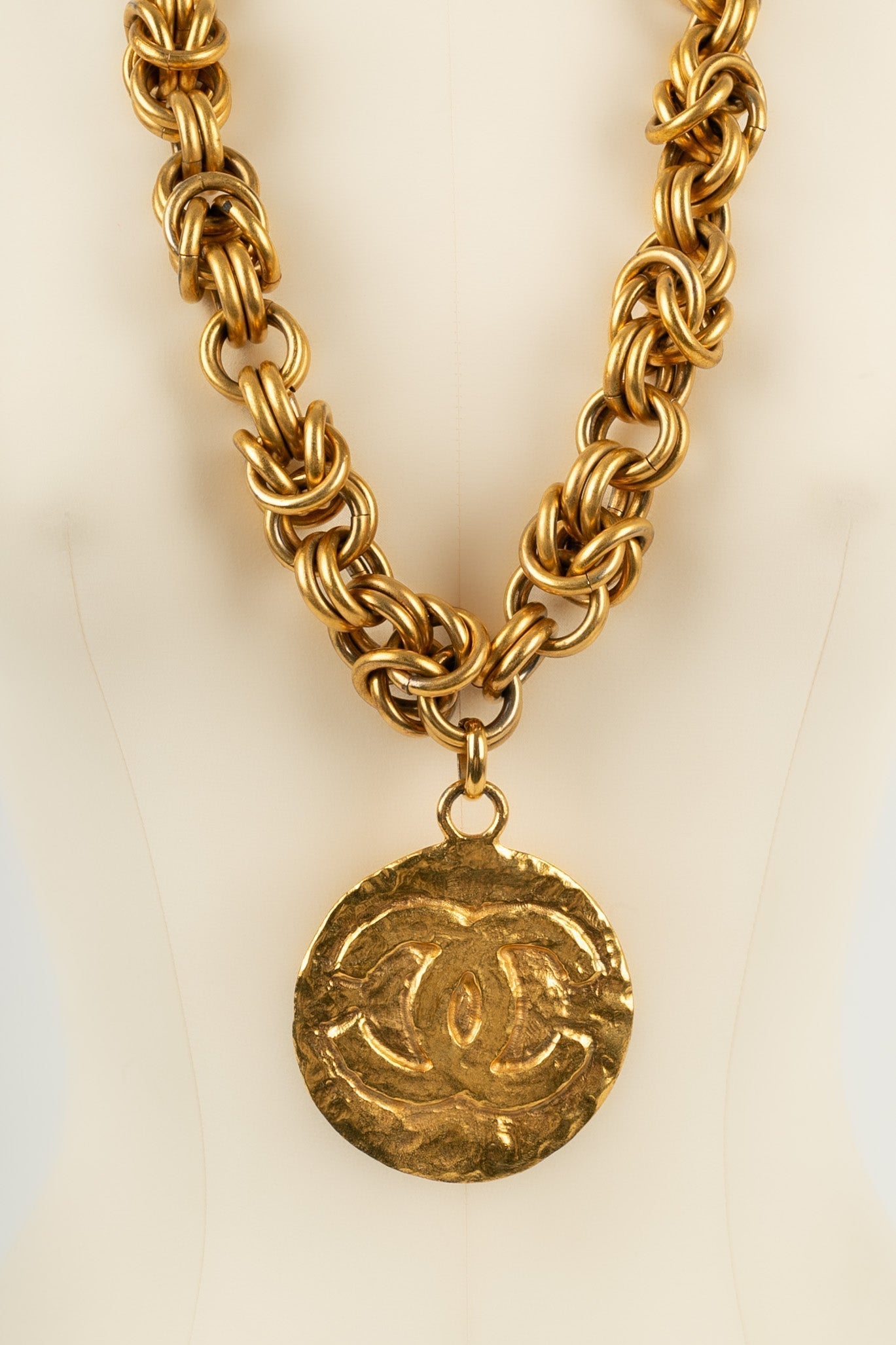 CHANEL - (Made in France) Imposant collier Haute Couture en mtal dor et son pendentif cc. Non sign.