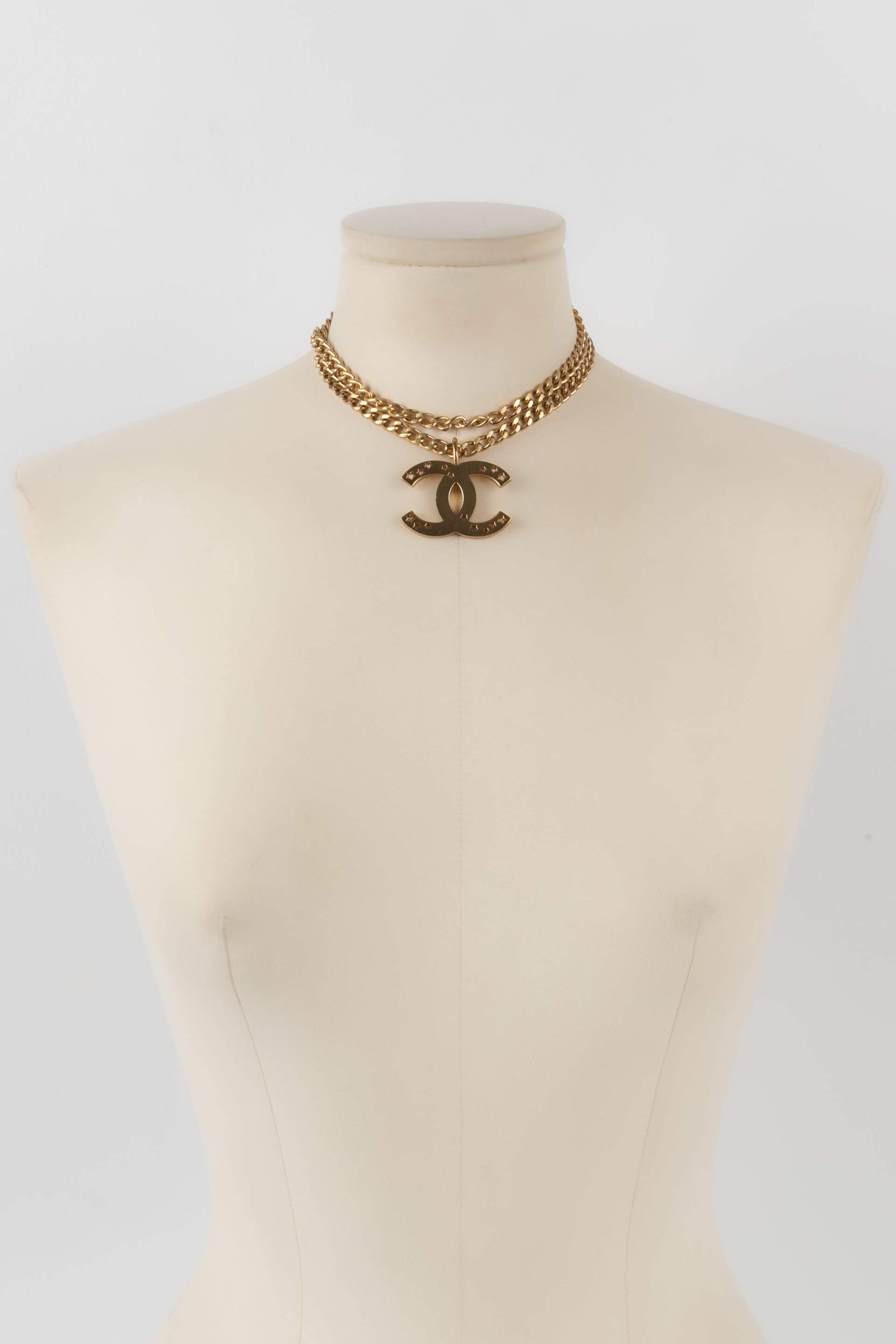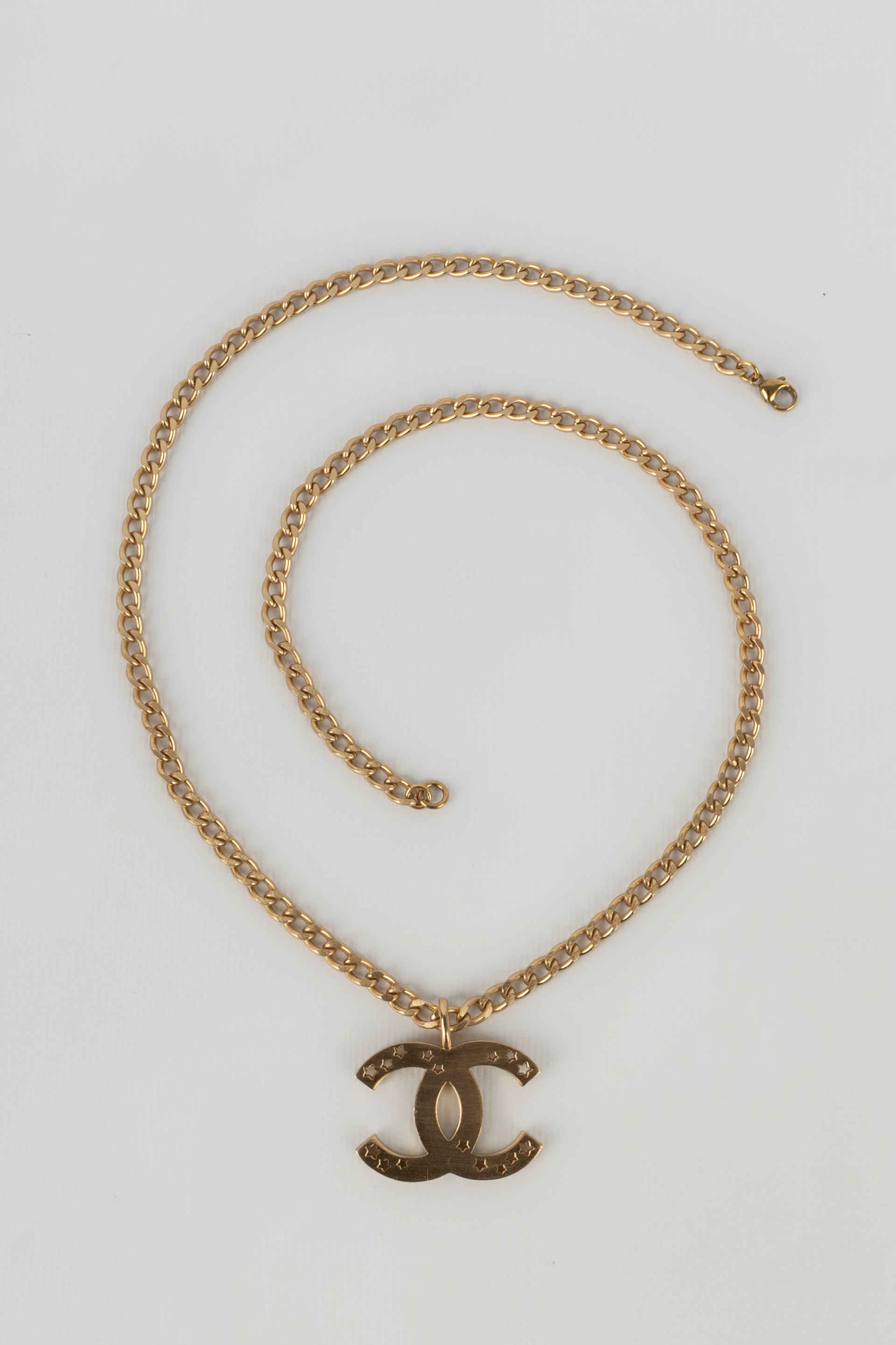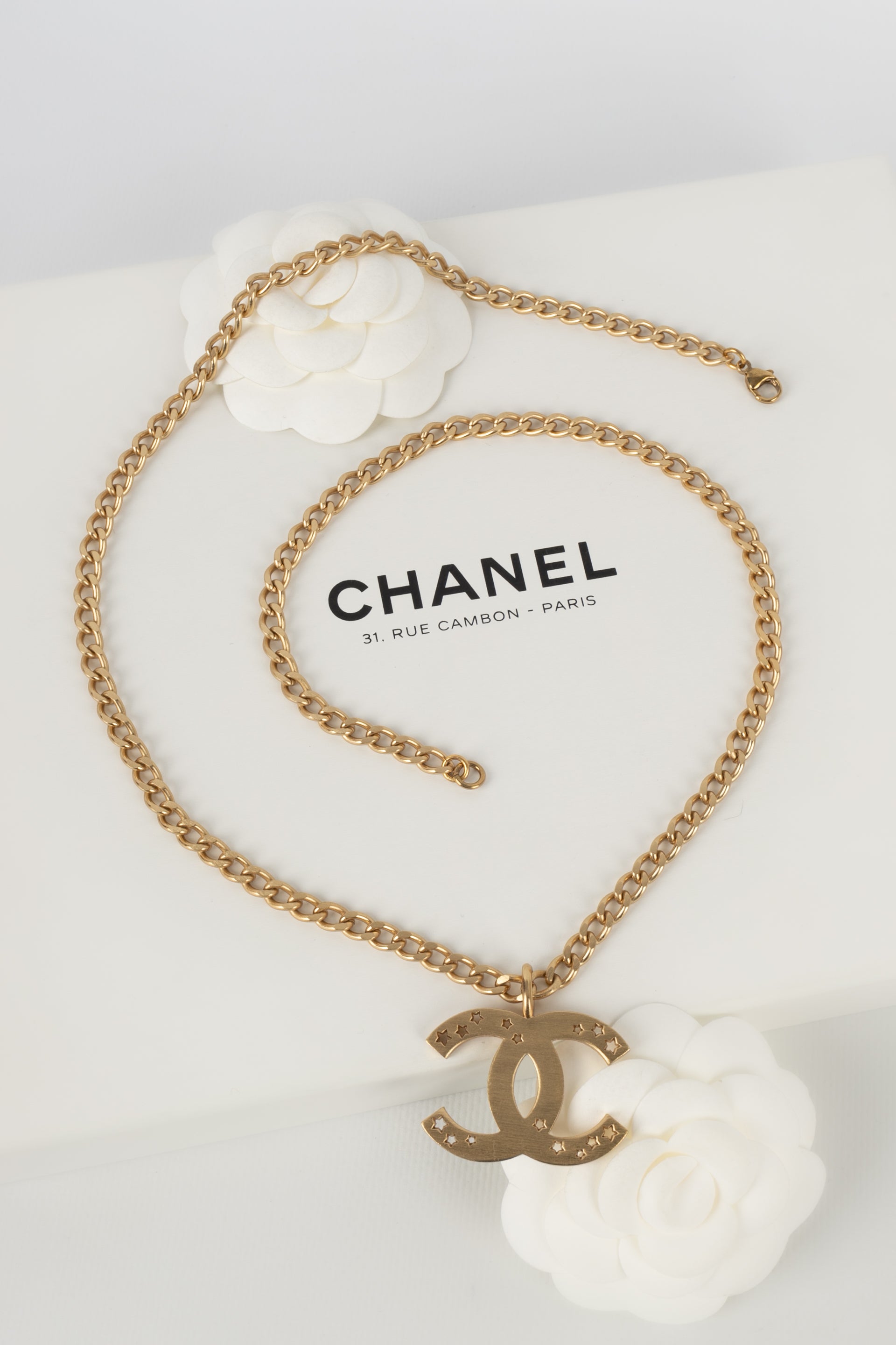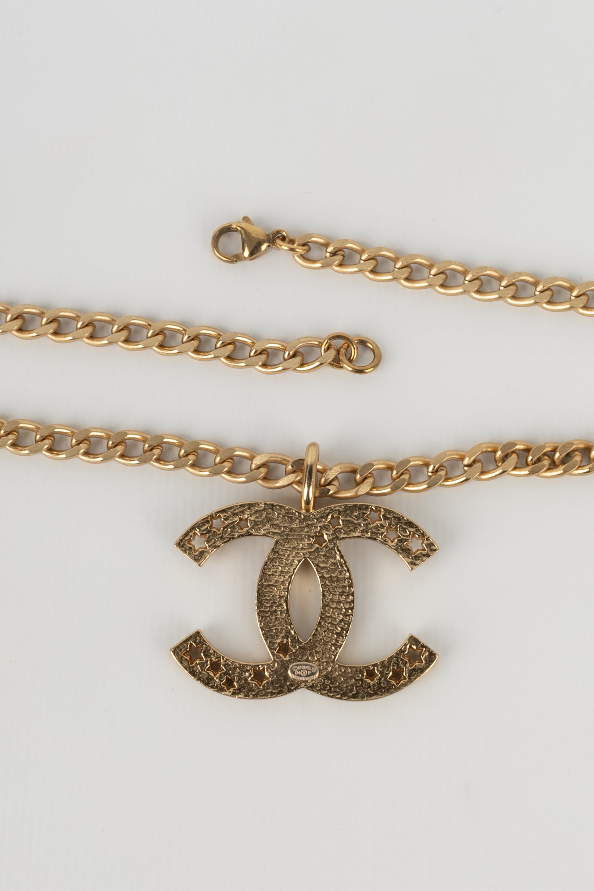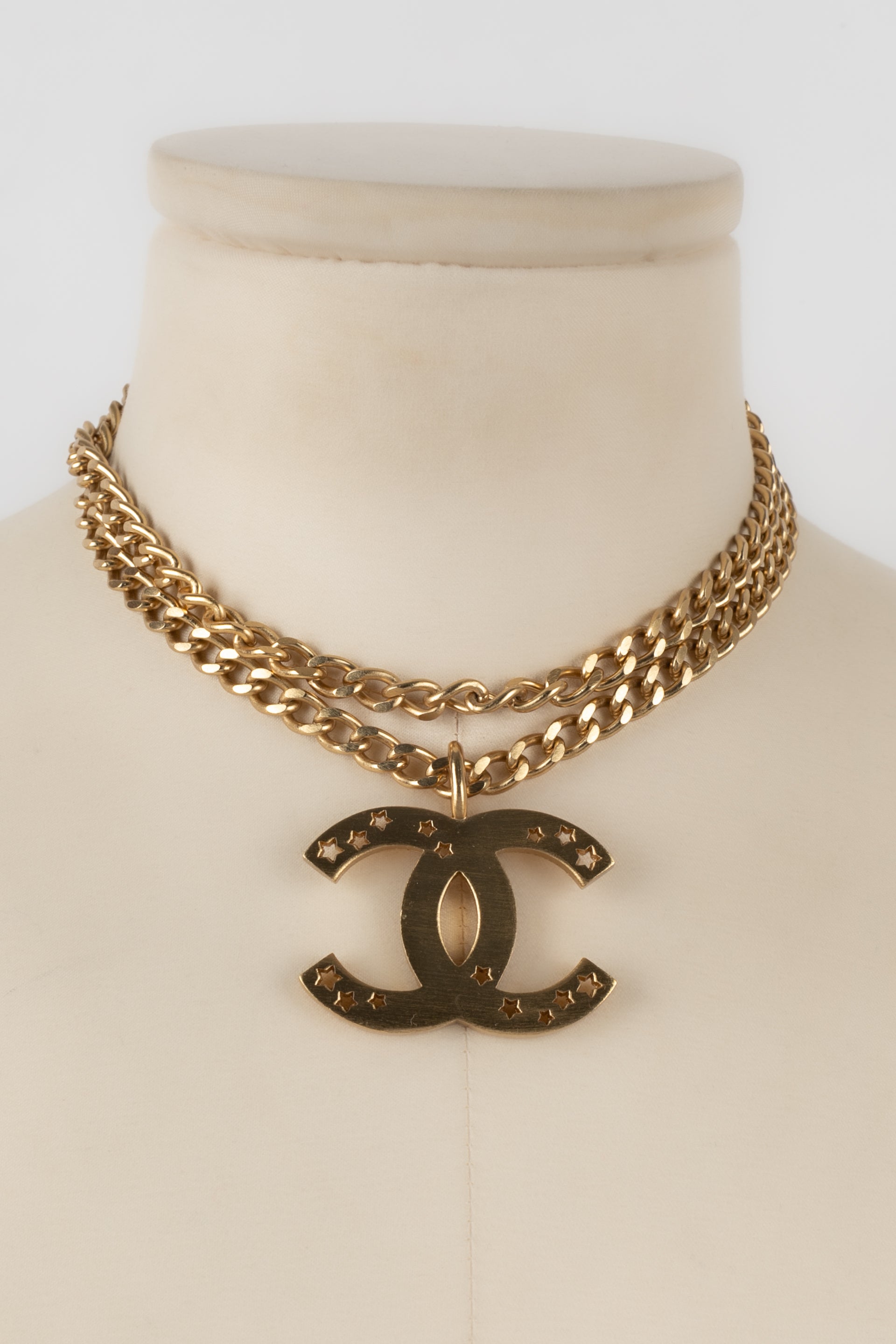 CHANEL - (Made in France) Collier en mtal dor et son pendentif cc ajour d'toiles. Collection Printemps-Et 2004.
