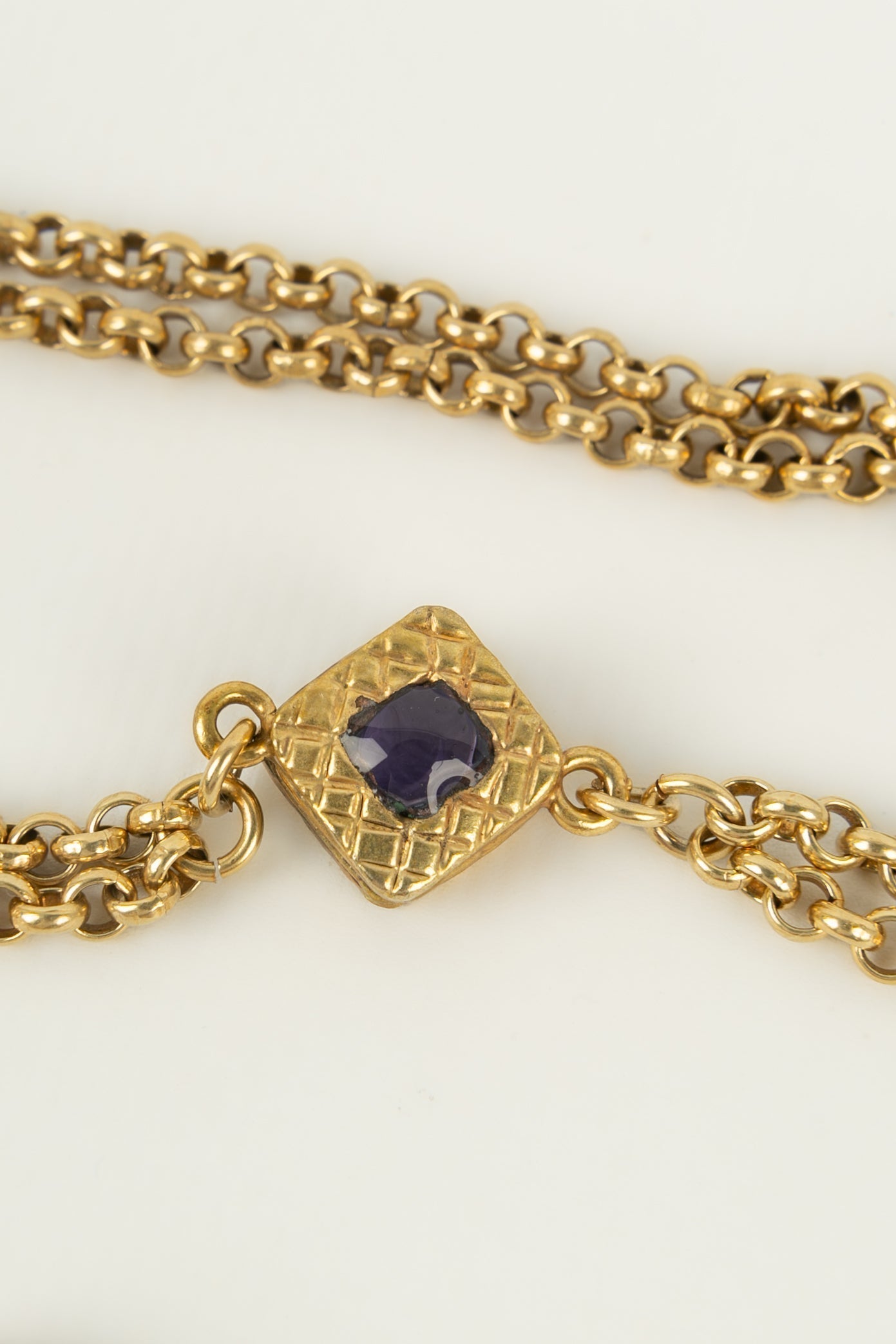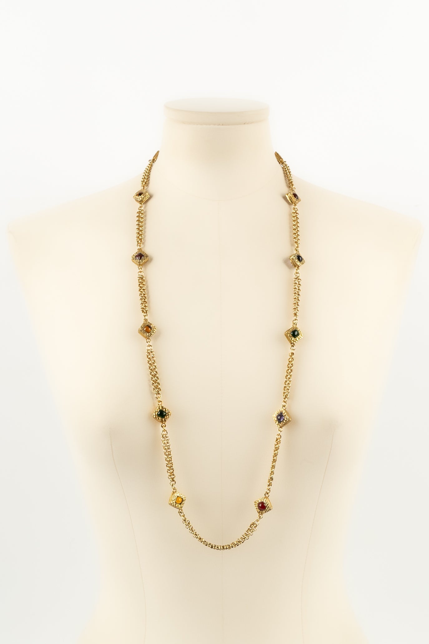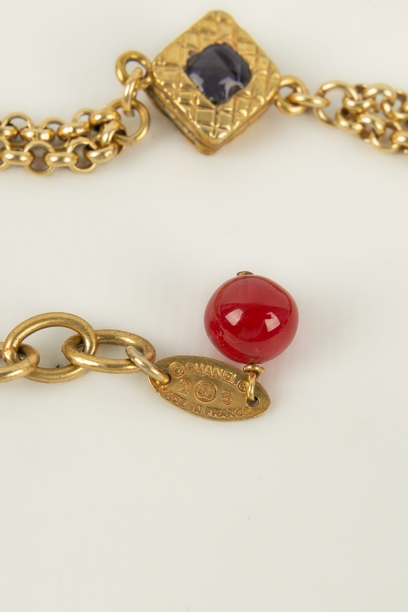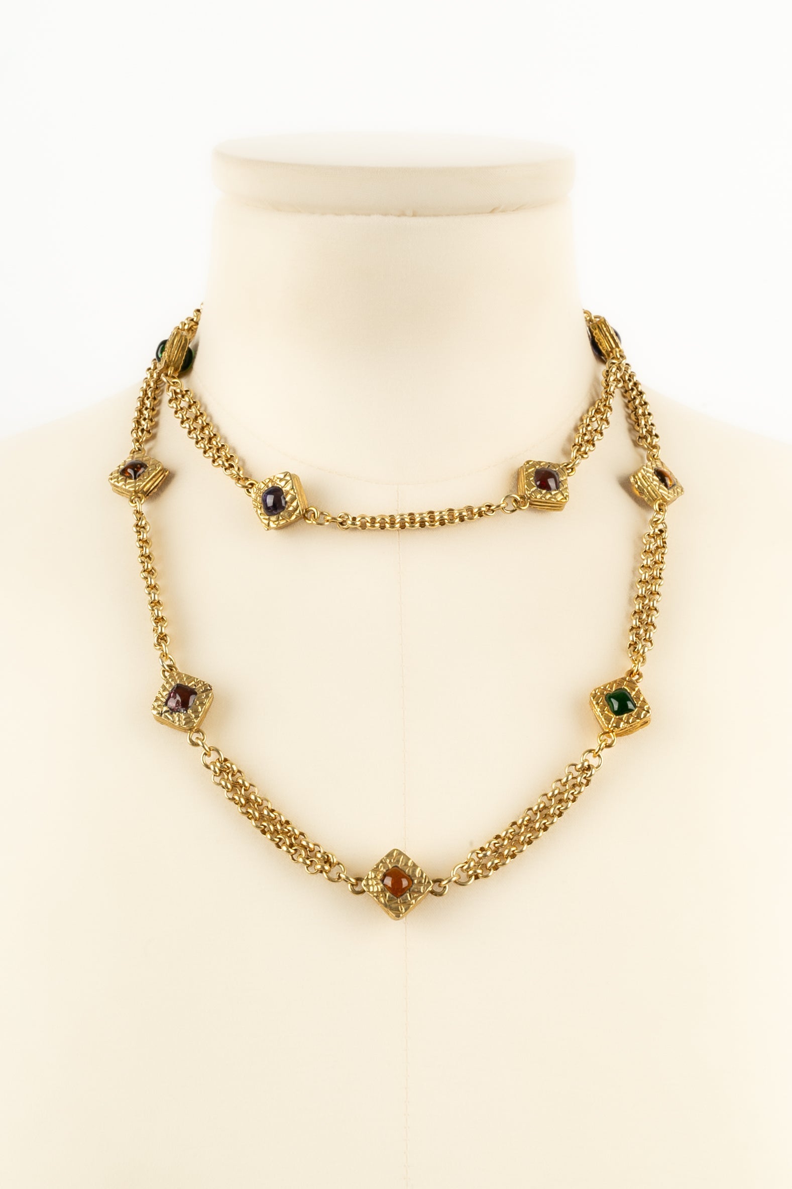 CHANEL - (Made in France) Collier chaine en mtal dor et lments centrs de pte de verre color. Travail de l'atelier Gripoix pour la maison Chanel.