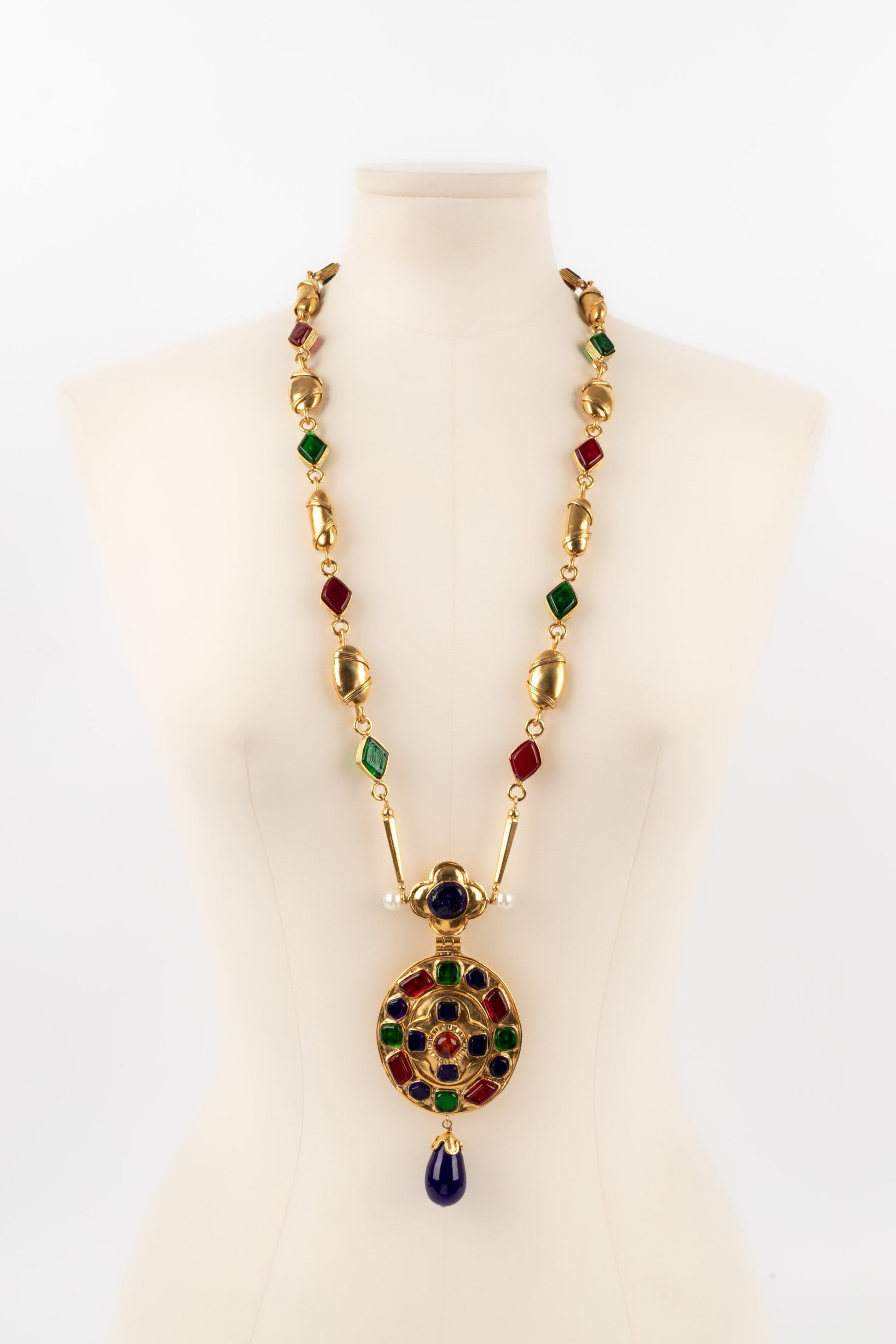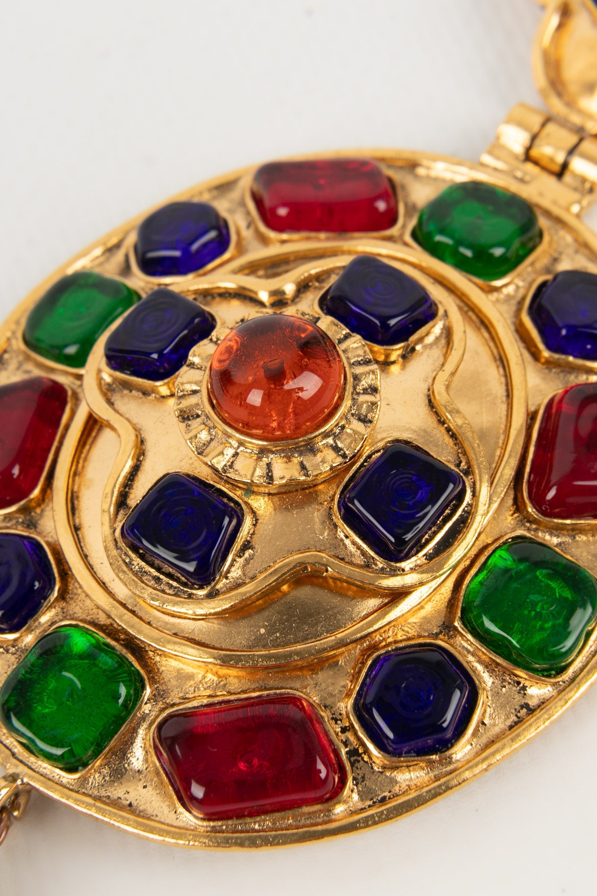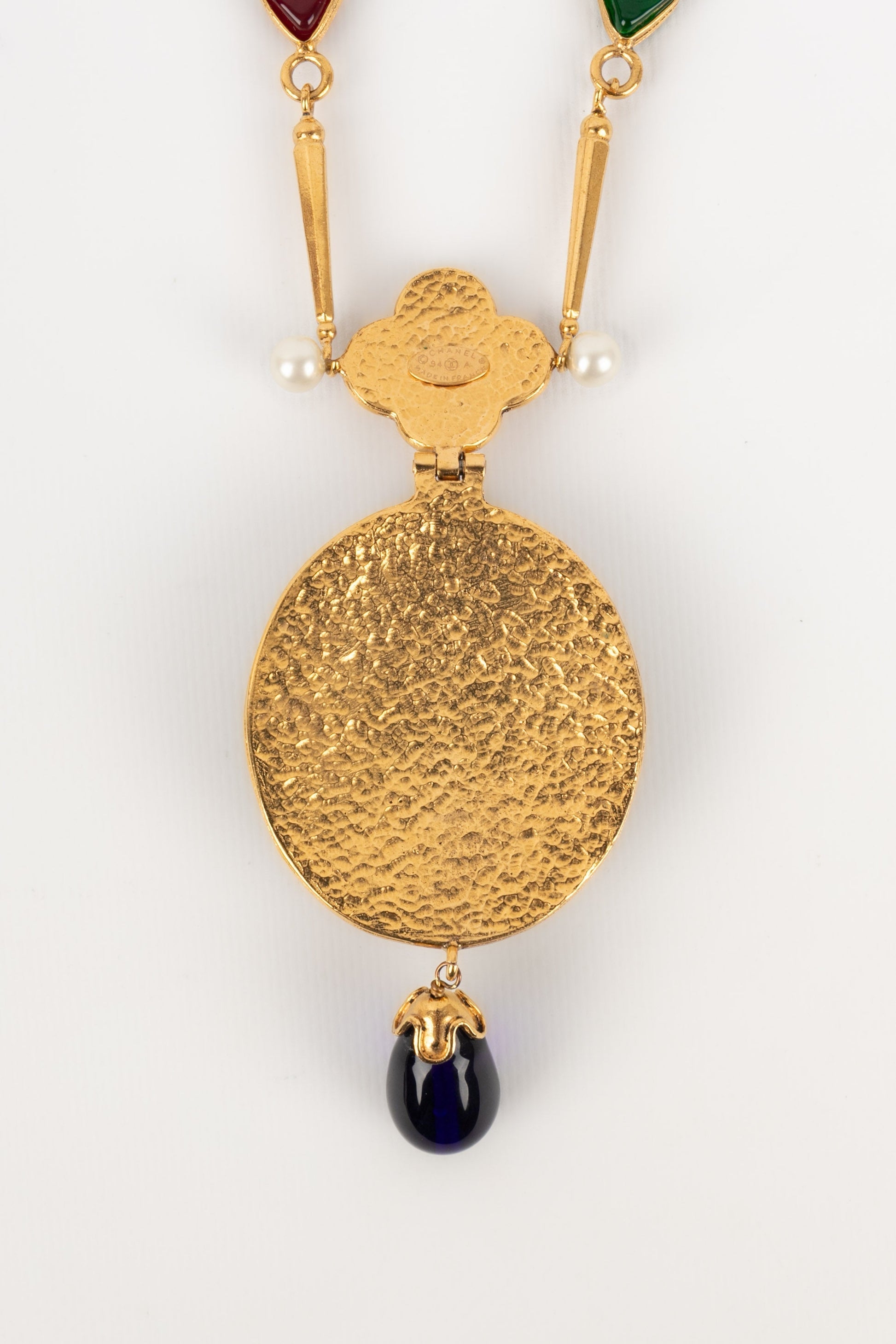 CHANEL - (Made in France) Collier en mtal dor et cabochons en pte de verre. Collection Automne-Hiver 1994.