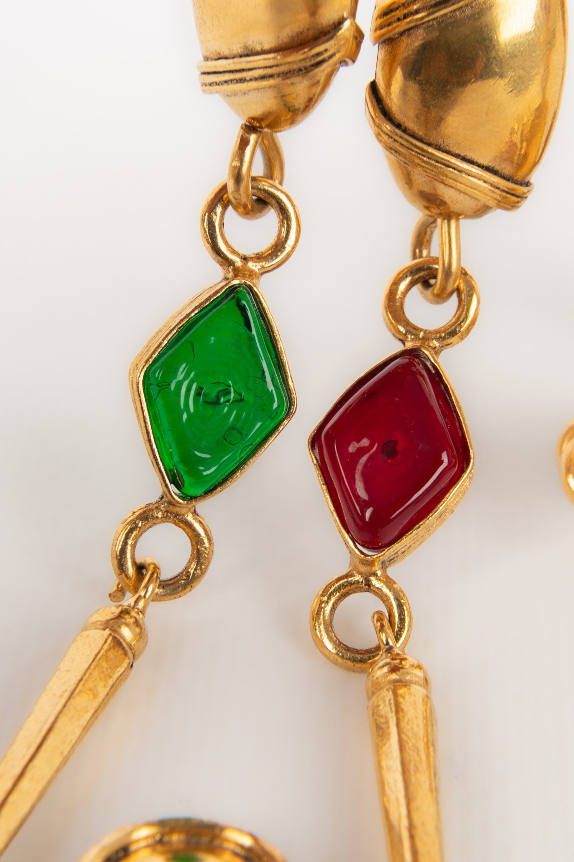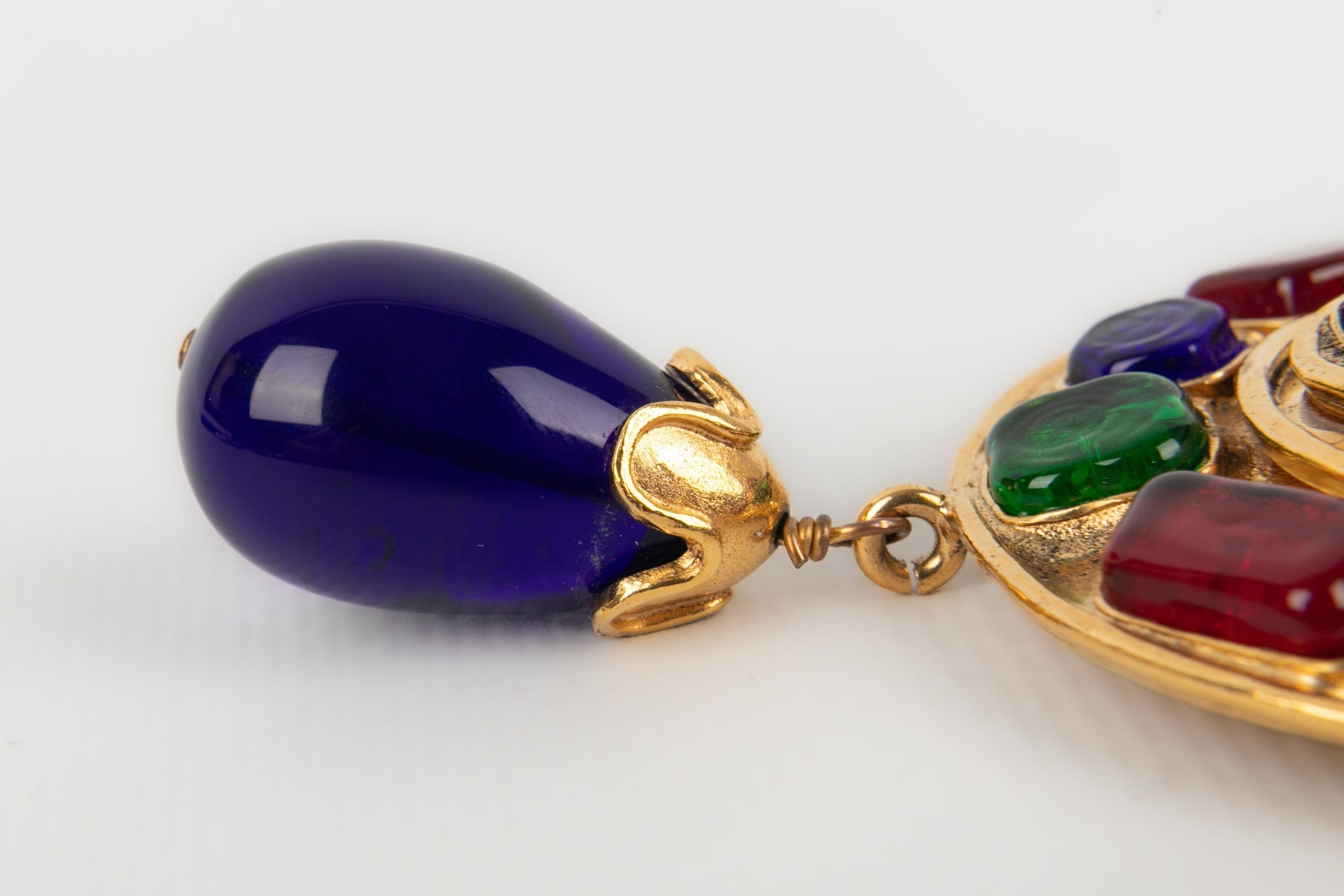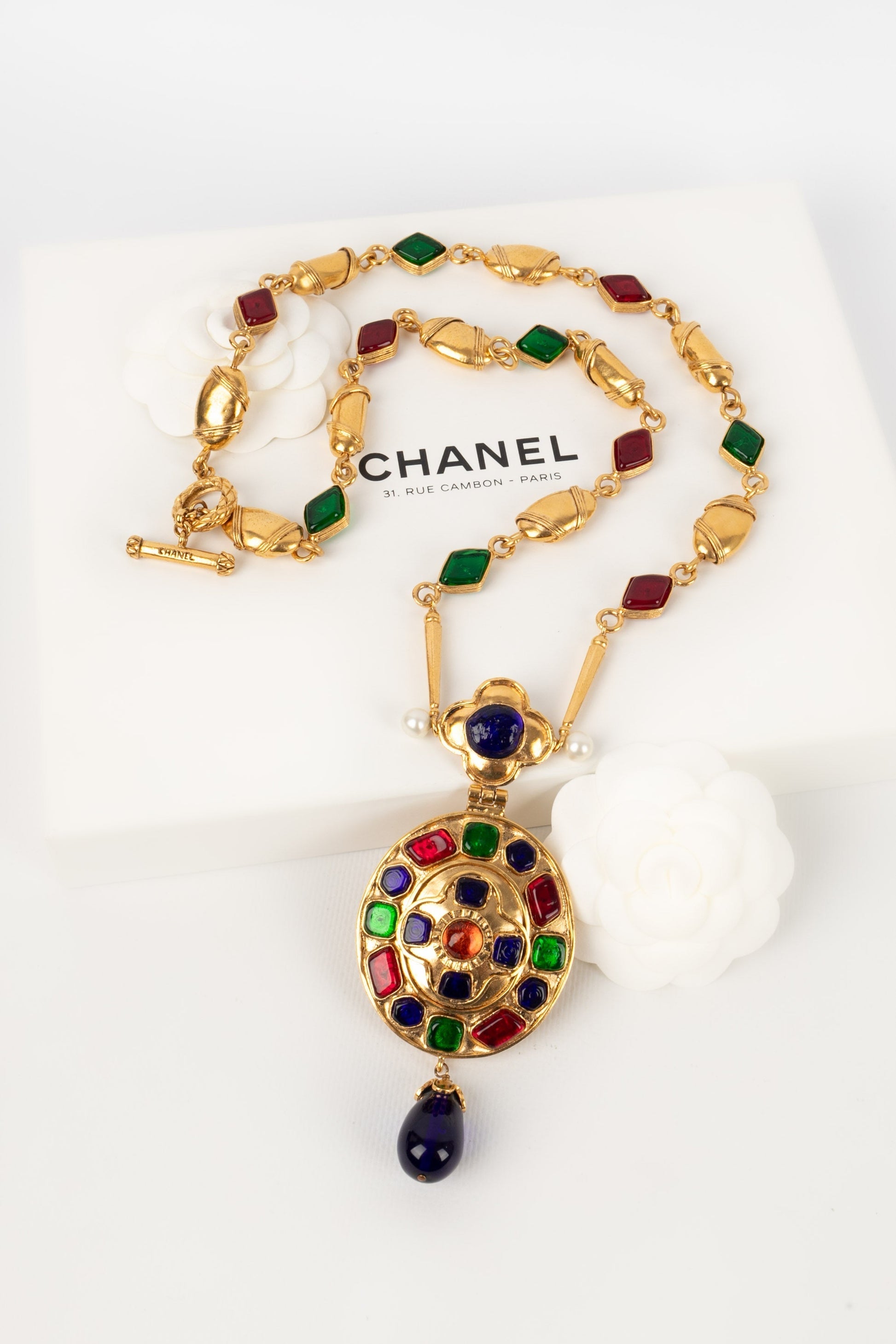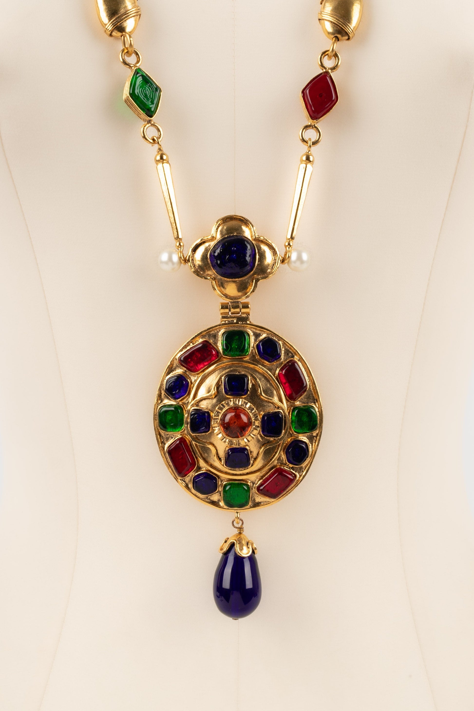 CHANEL - (Made in France) Collier en mtal dor et cabochons en pte de verre. Collection Automne-Hiver 1994.