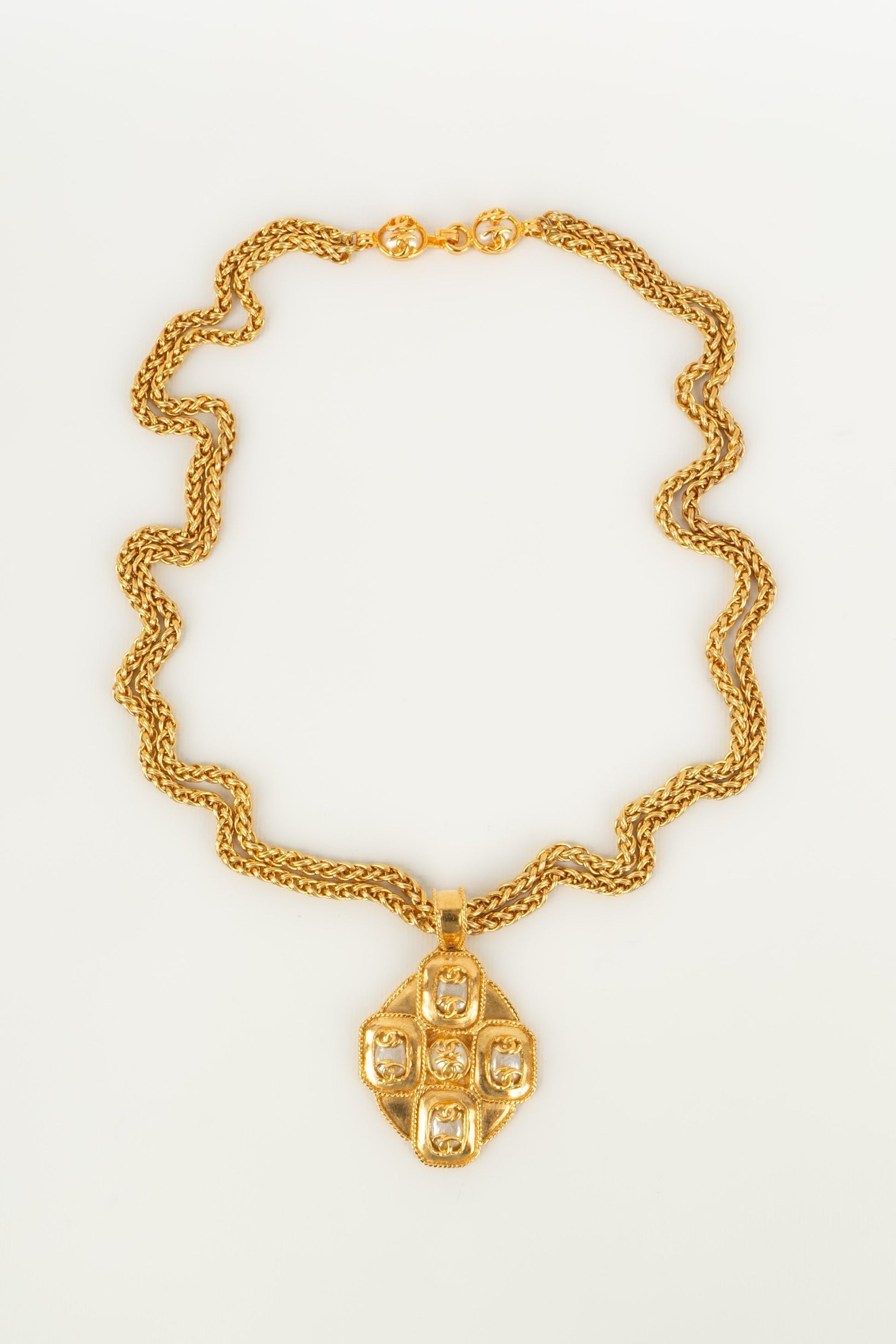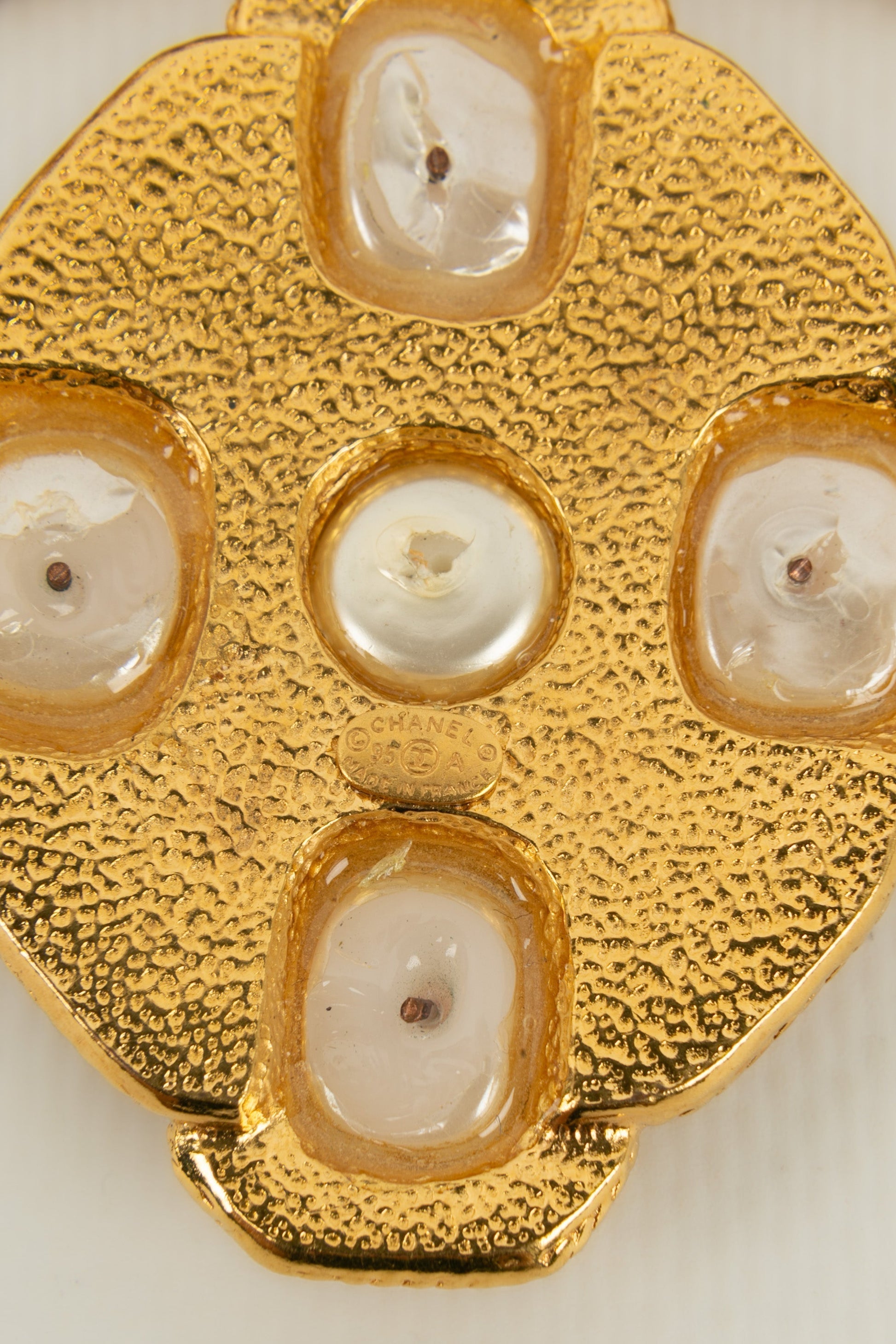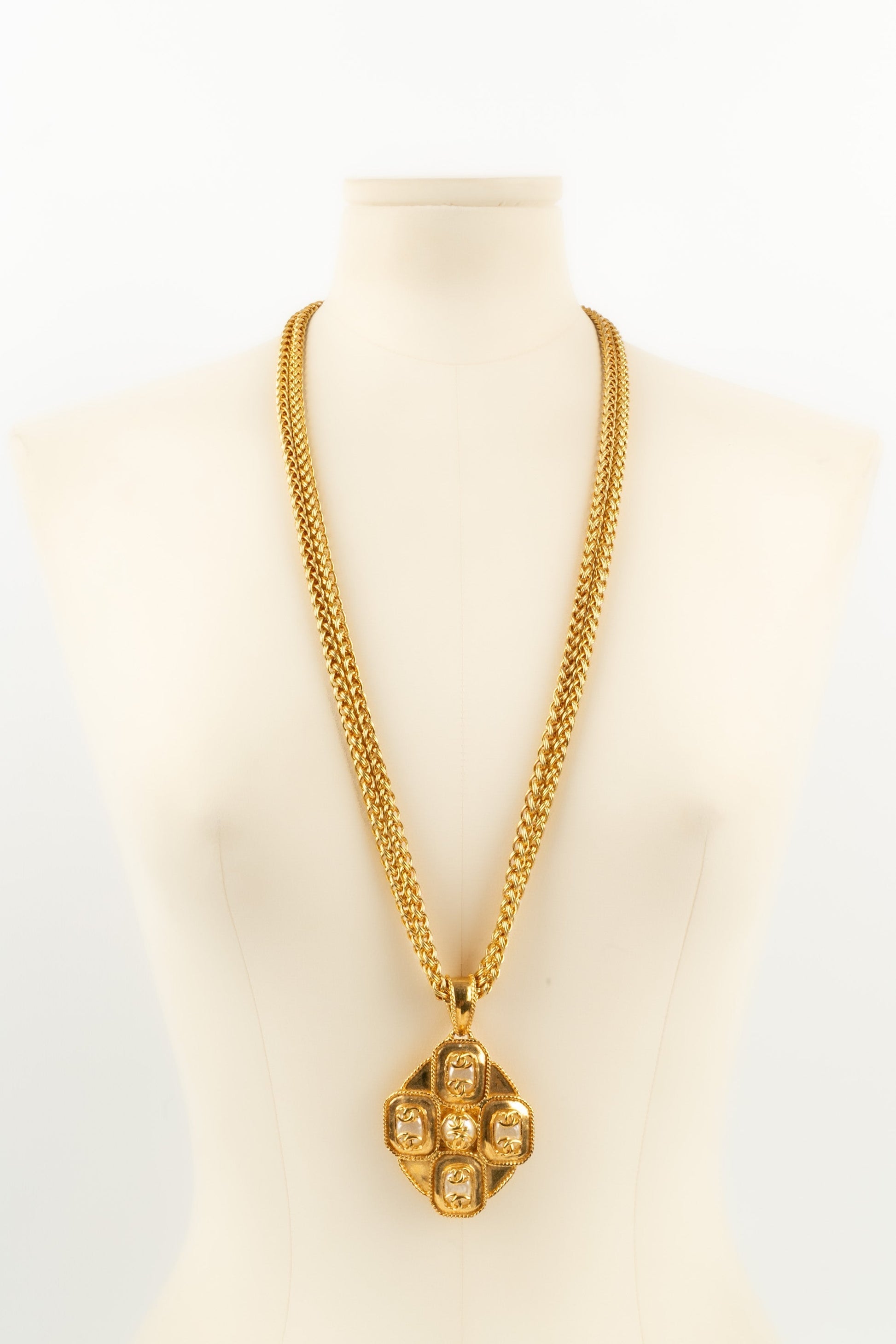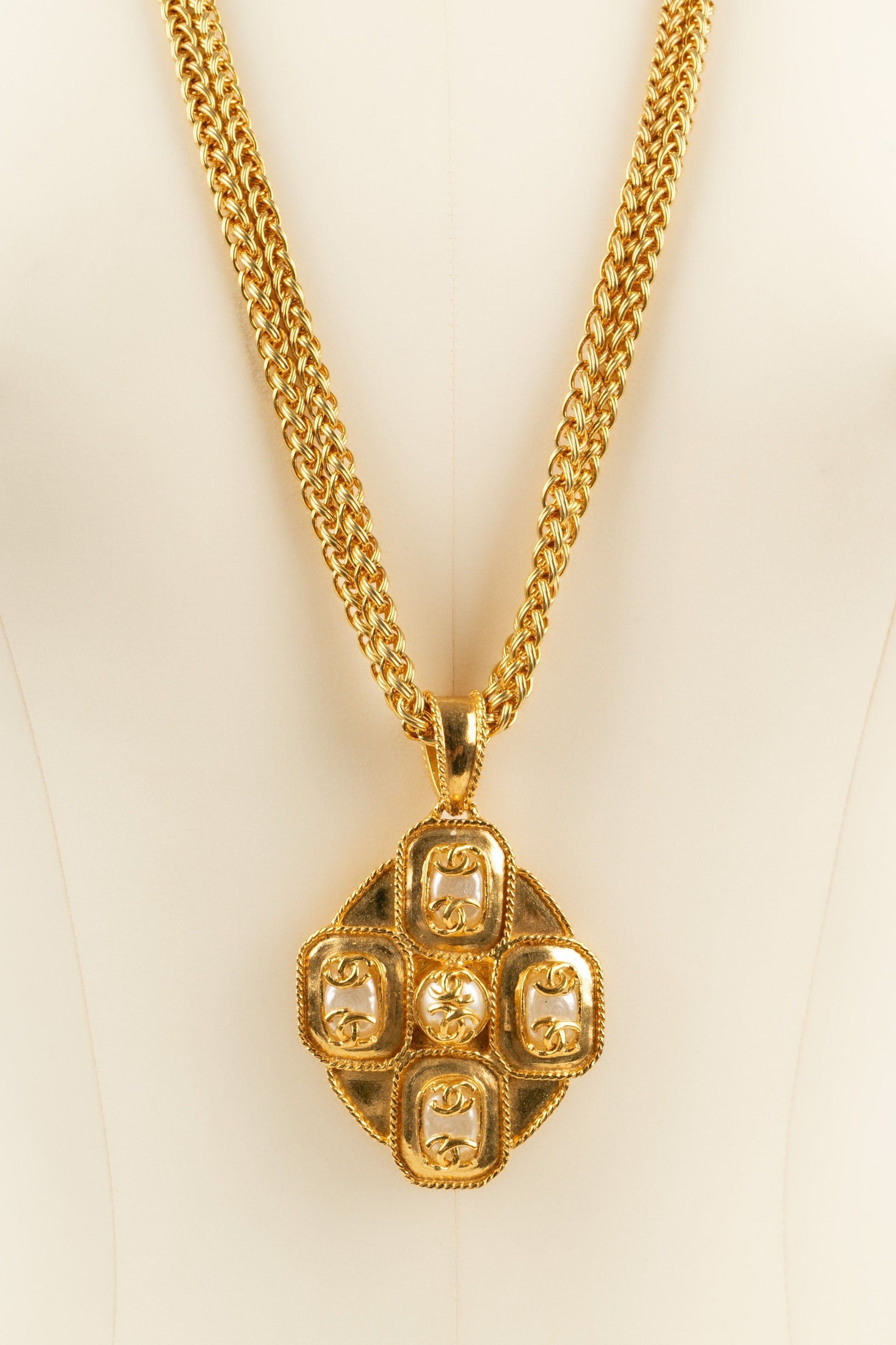 CHANEL - (Made in France) Collier en mtal dor et pendentif pav de cabochons nacrs. Collection Automne-Hiver 1995.