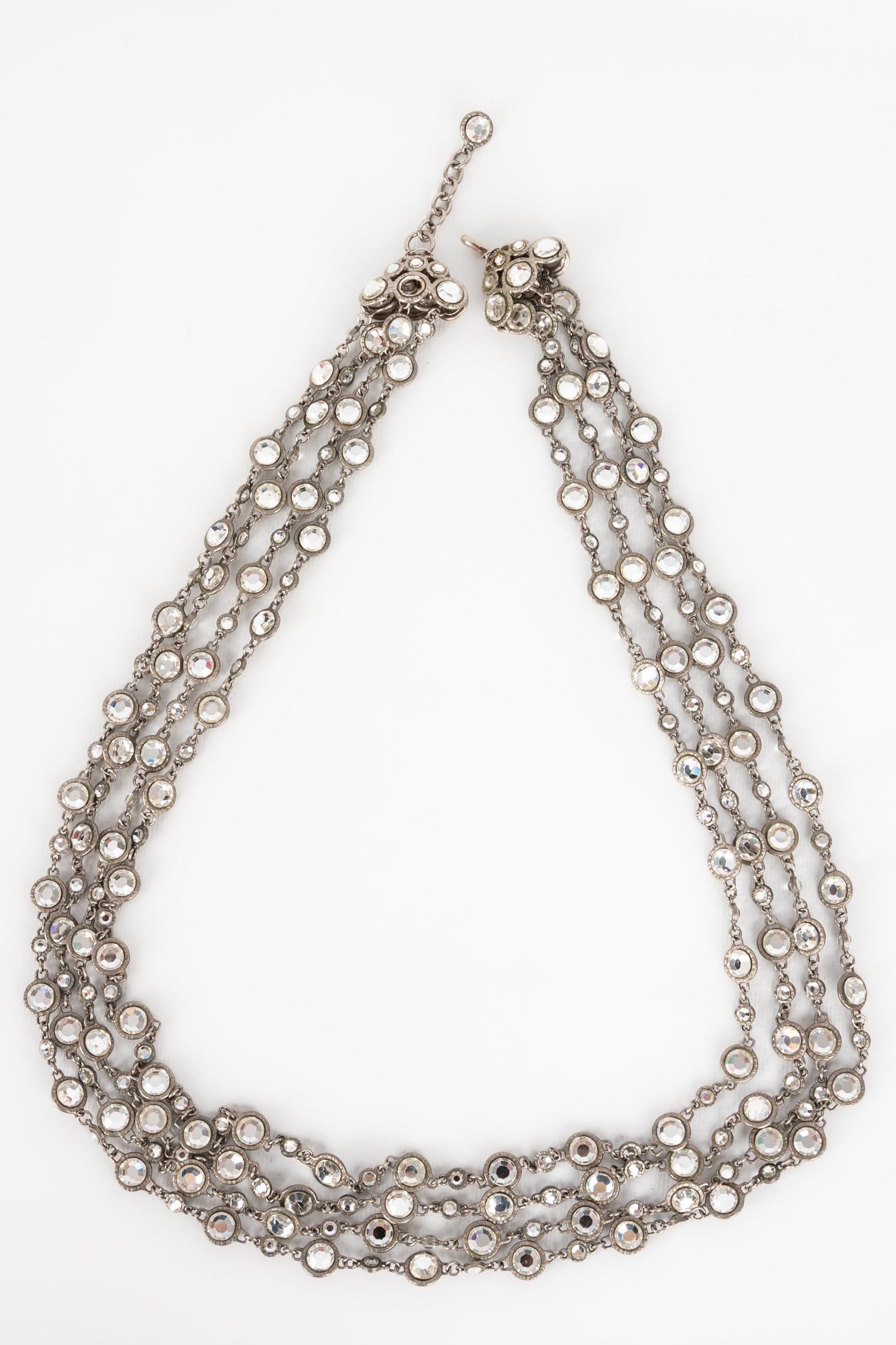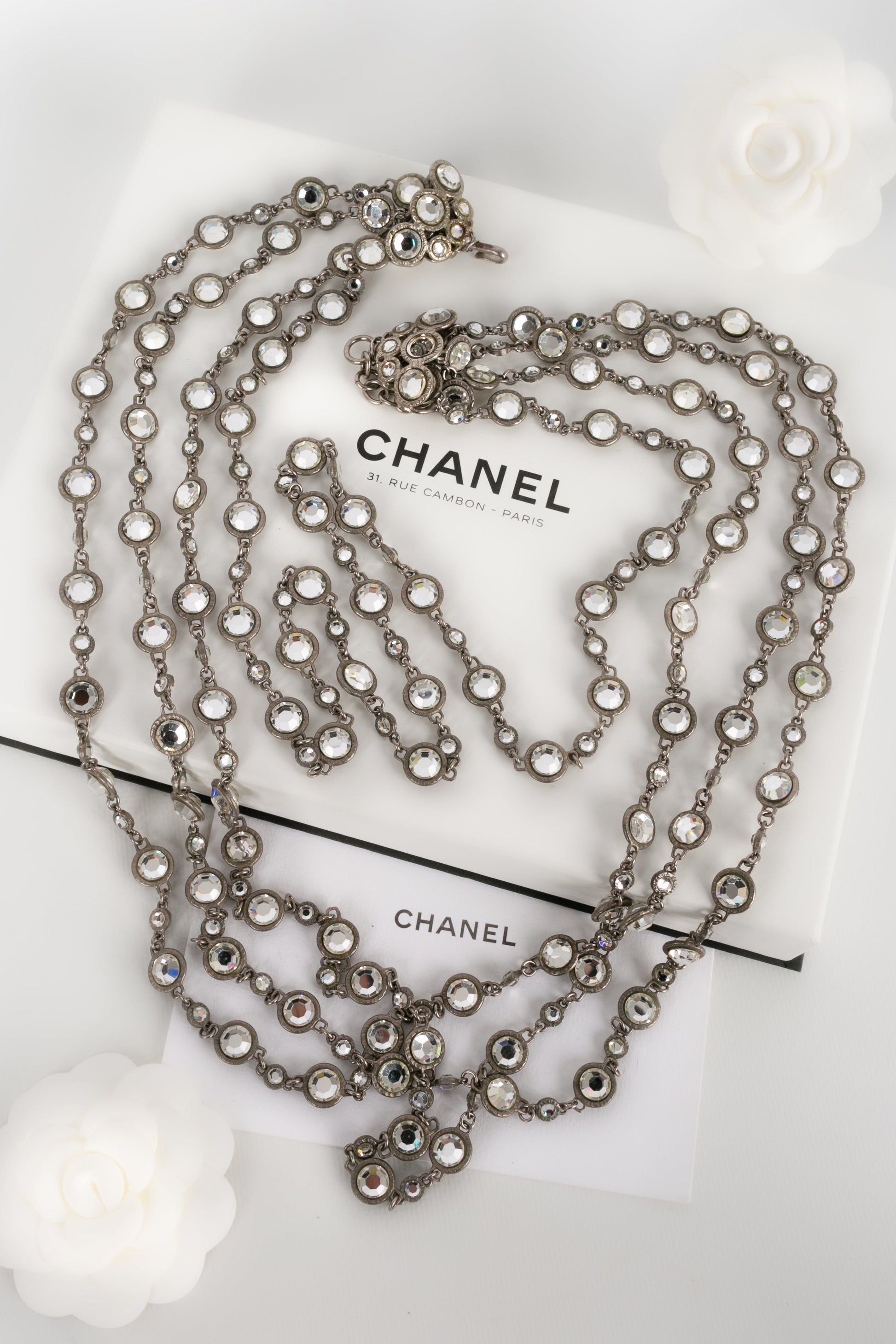 CHANEL - (Made in France) Long collier en mtal argent et strass de Swarovski. Collection Automne-Hiver 1998.
