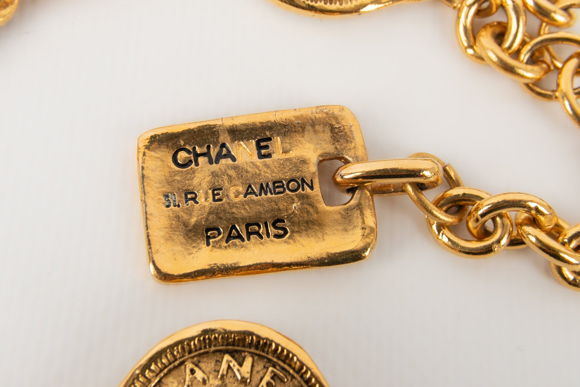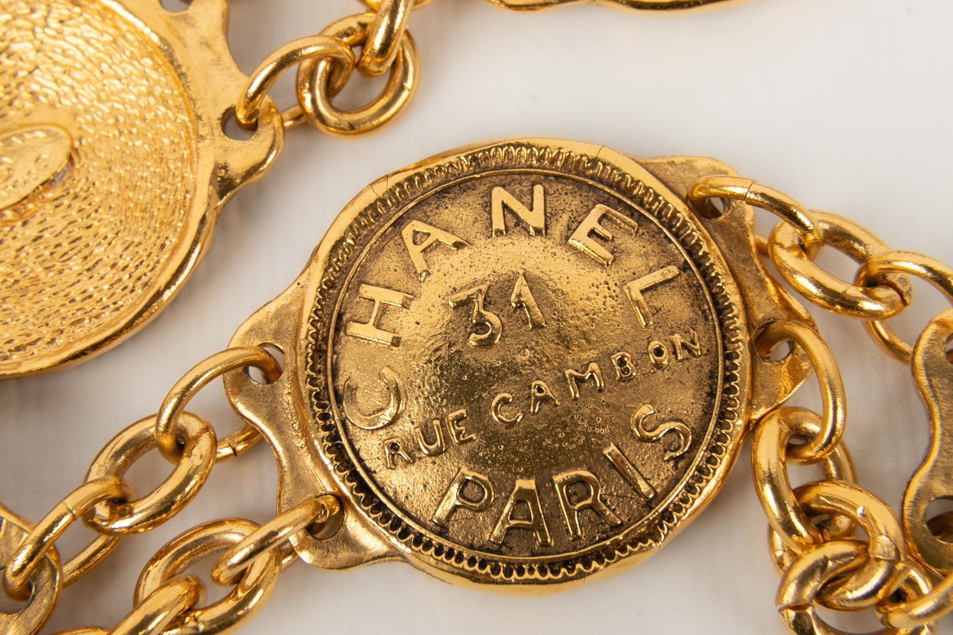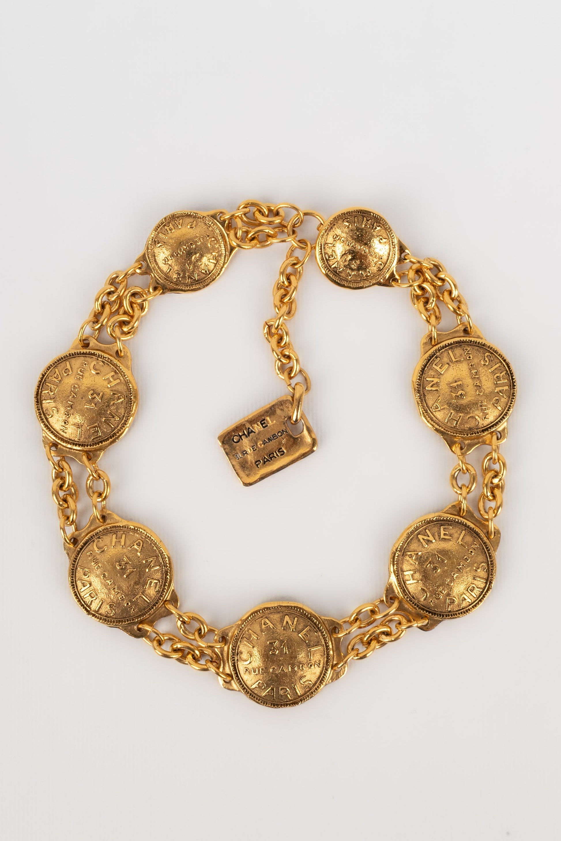 CHANEL - (Made in France) Collier court en mtal dor et mdailles rondes "rue Cambon" datant des annes 1980.