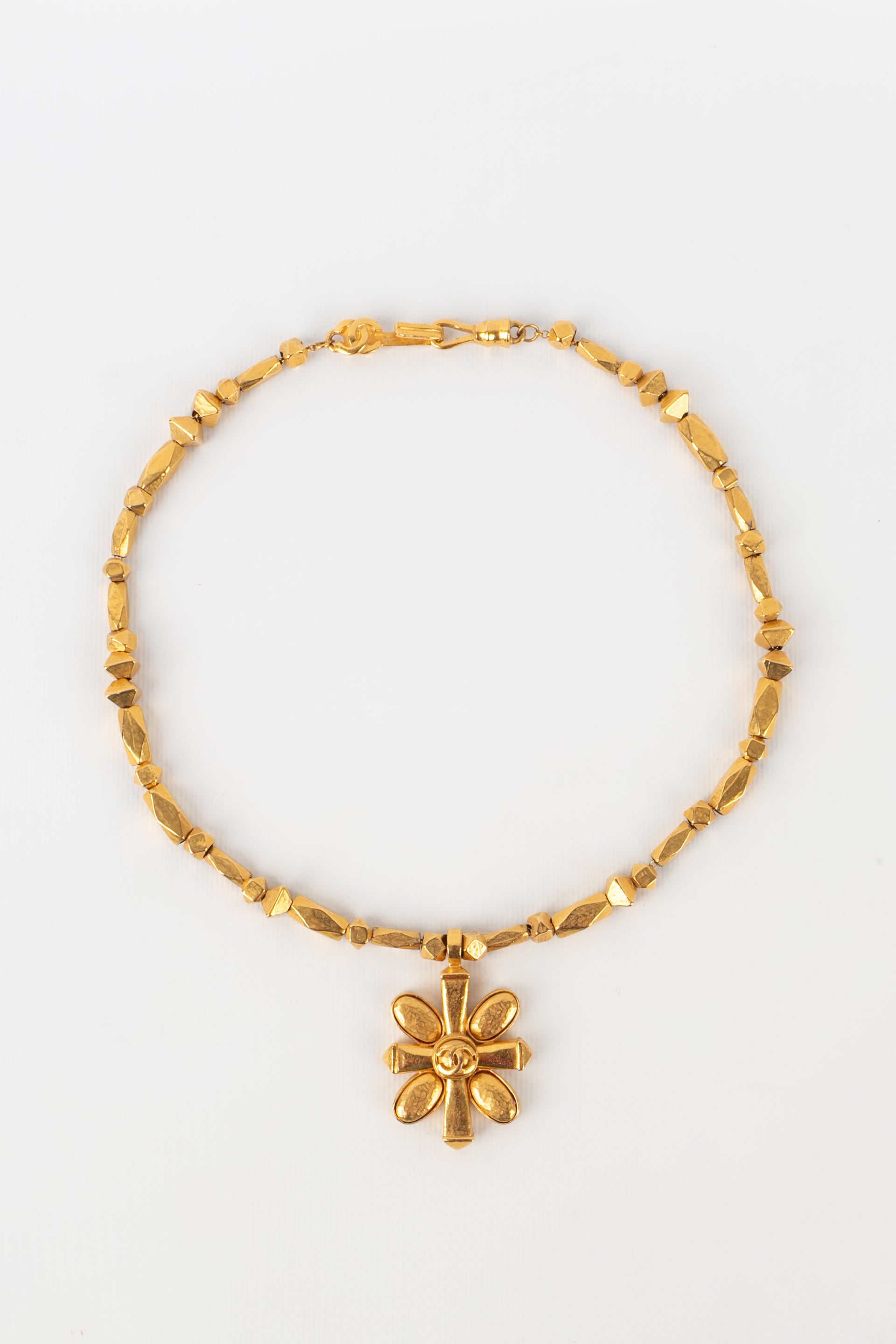 CHANEL - (Made in France) Collier long en mtal dor et son pendentif croix. Collection Automne-Hiver 1997.