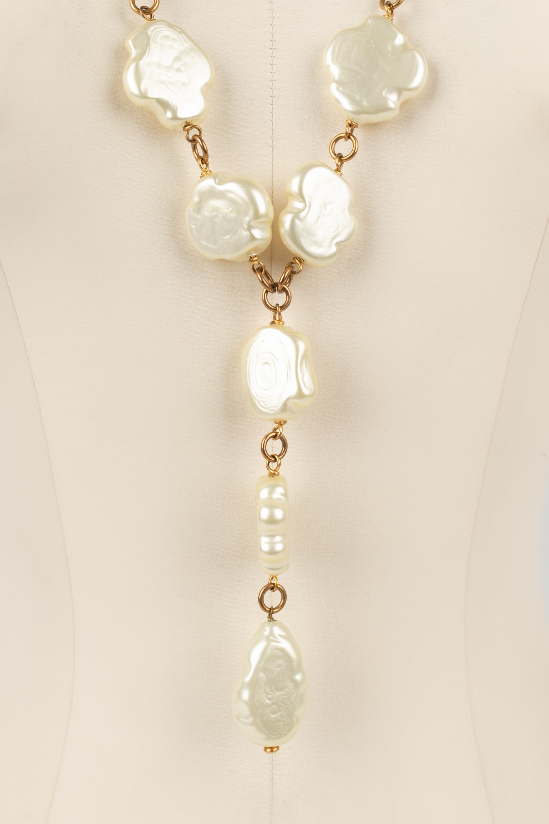 CHANEL - (Made in France) Collier de perles nacres fantaisies de forme baroque. Bijou datant du milieu des annes 1980.