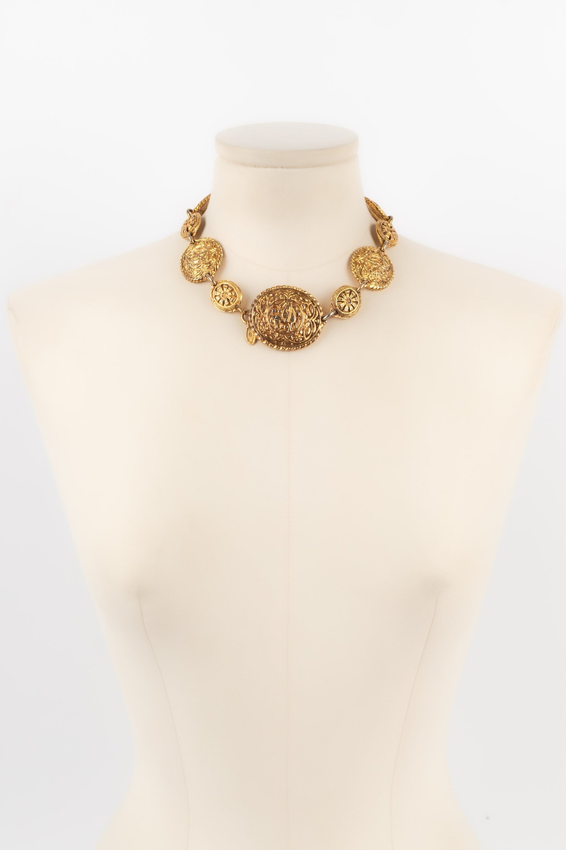 CHANEL - (Made in France) Collier court en mtal dor datant des annes 1980.