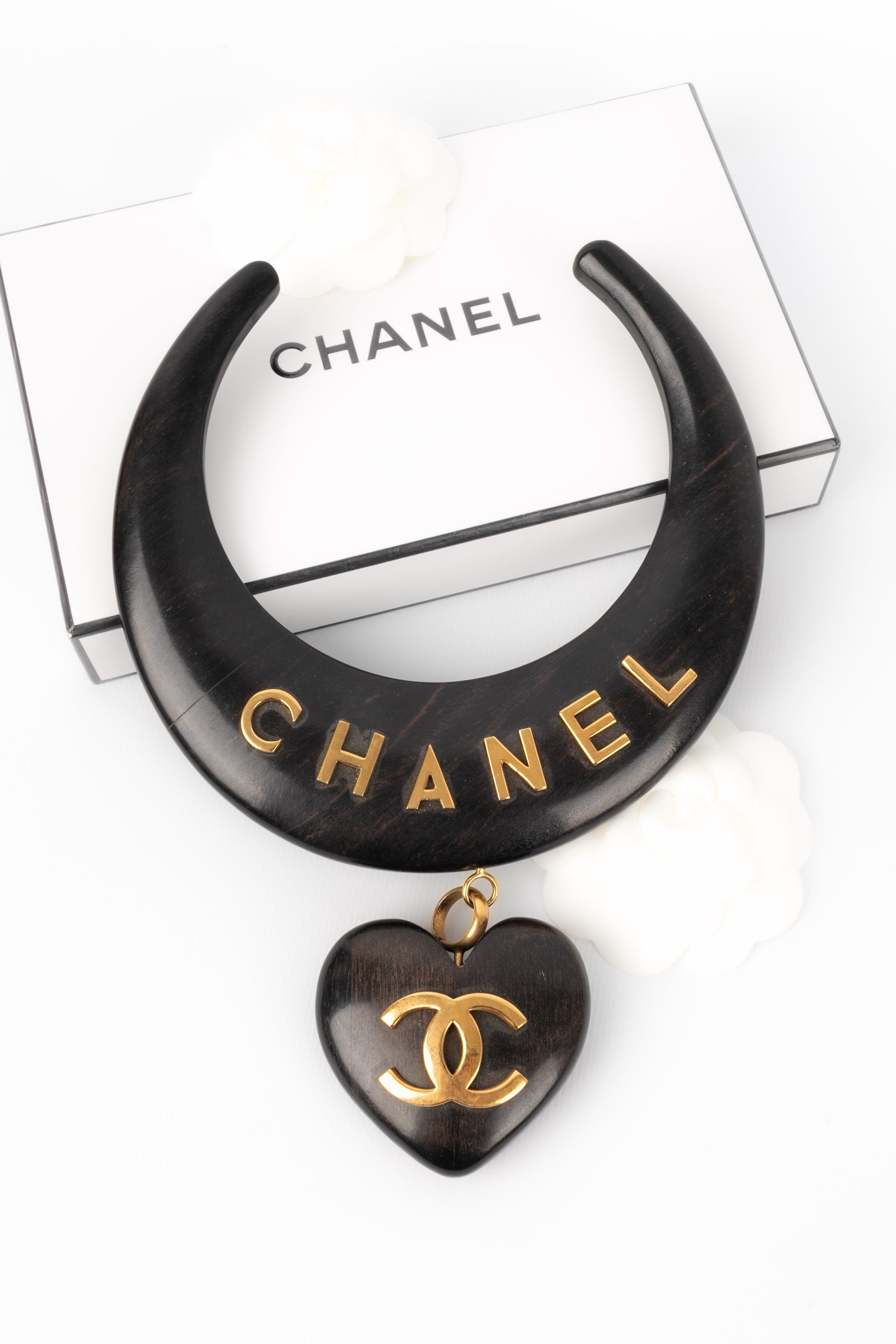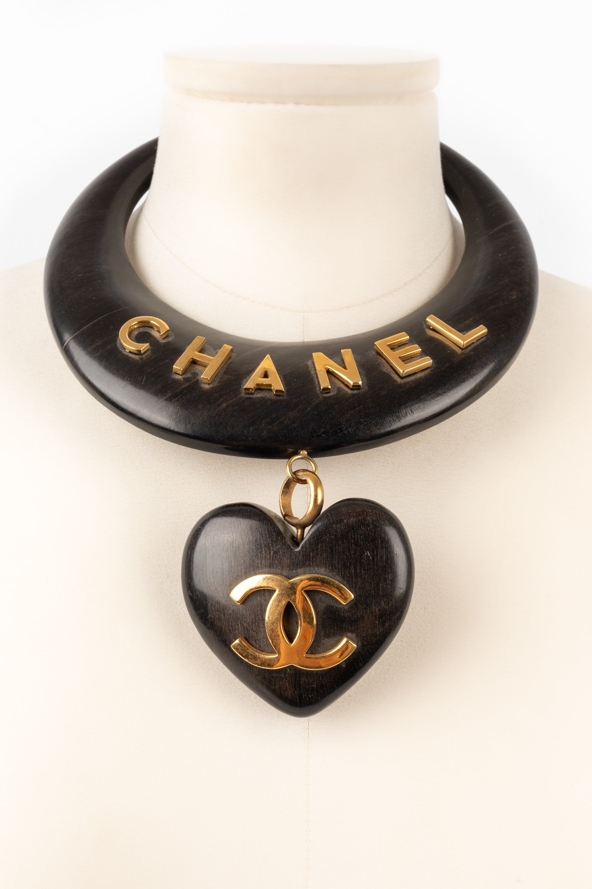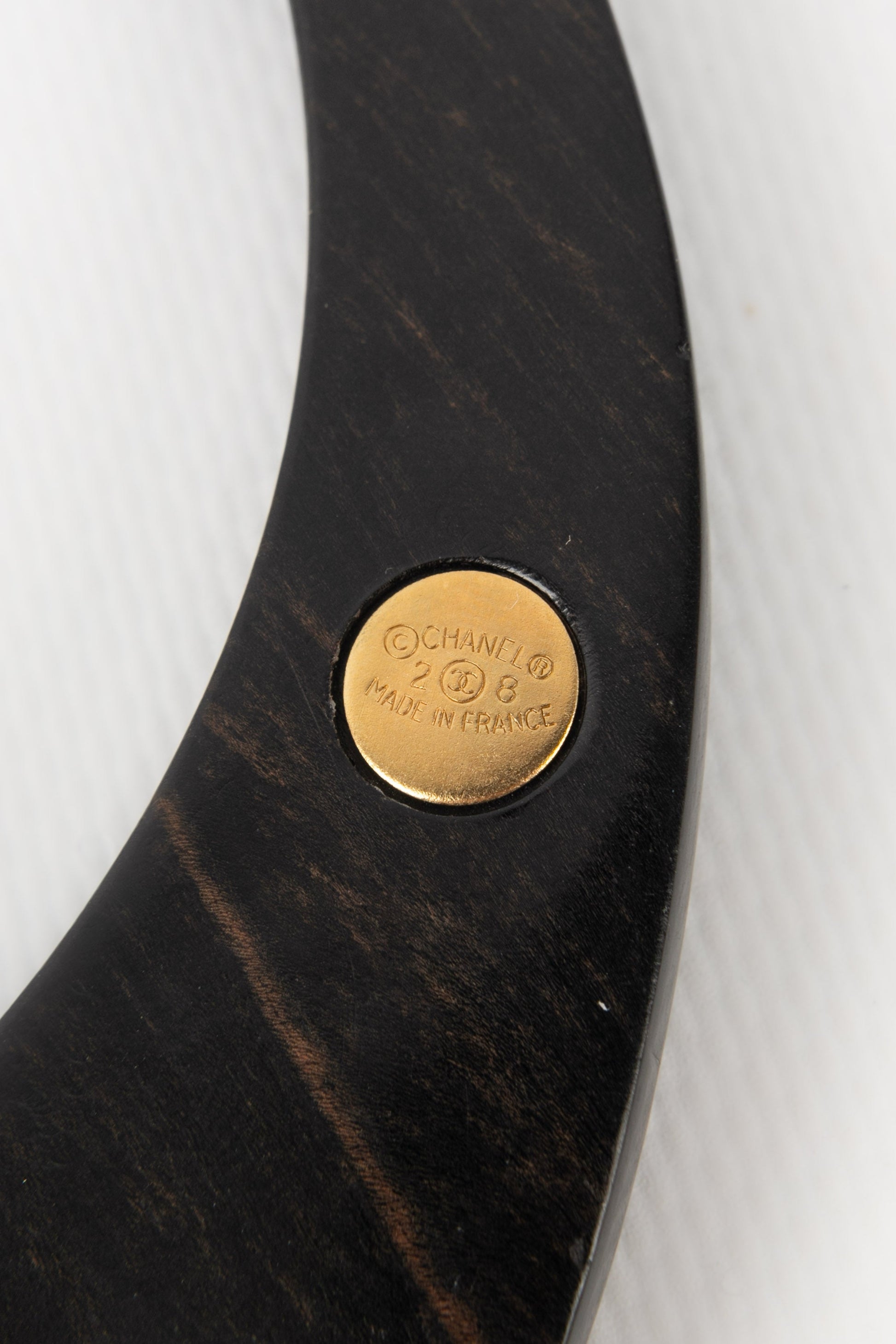 CHANEL - (Made in France) Collier court en bois et mtal dor. Collection 2cc8.