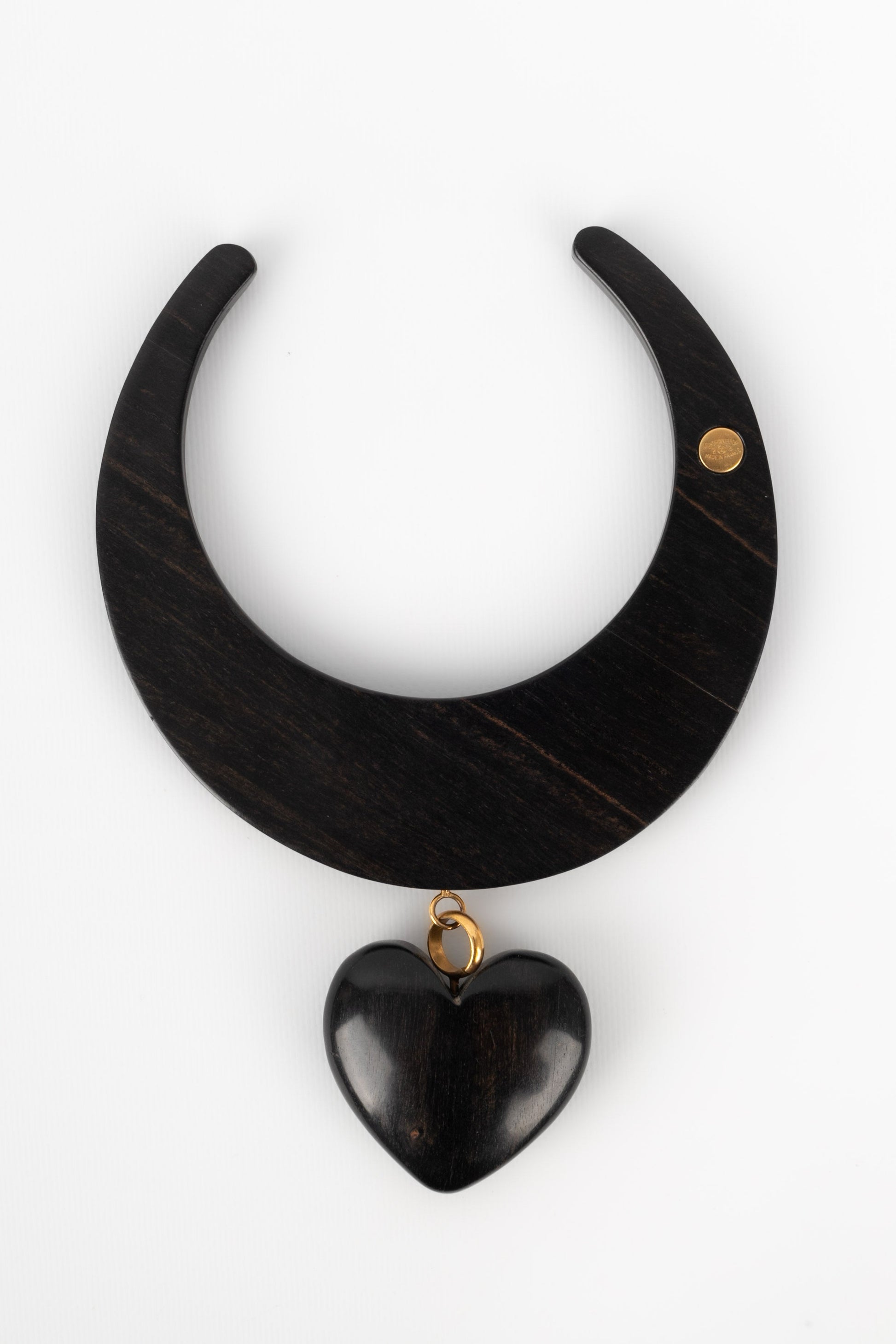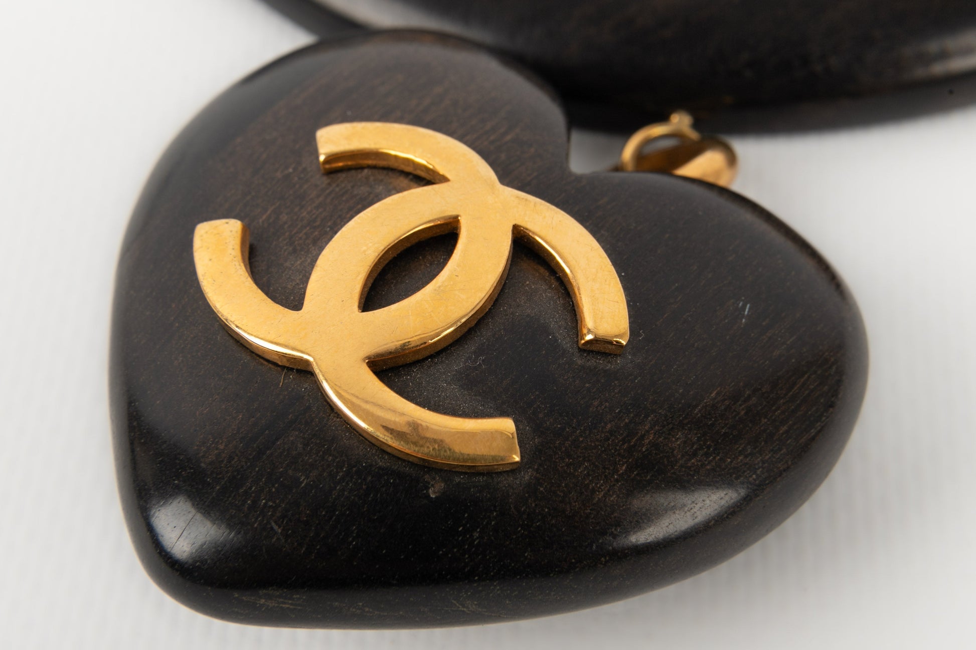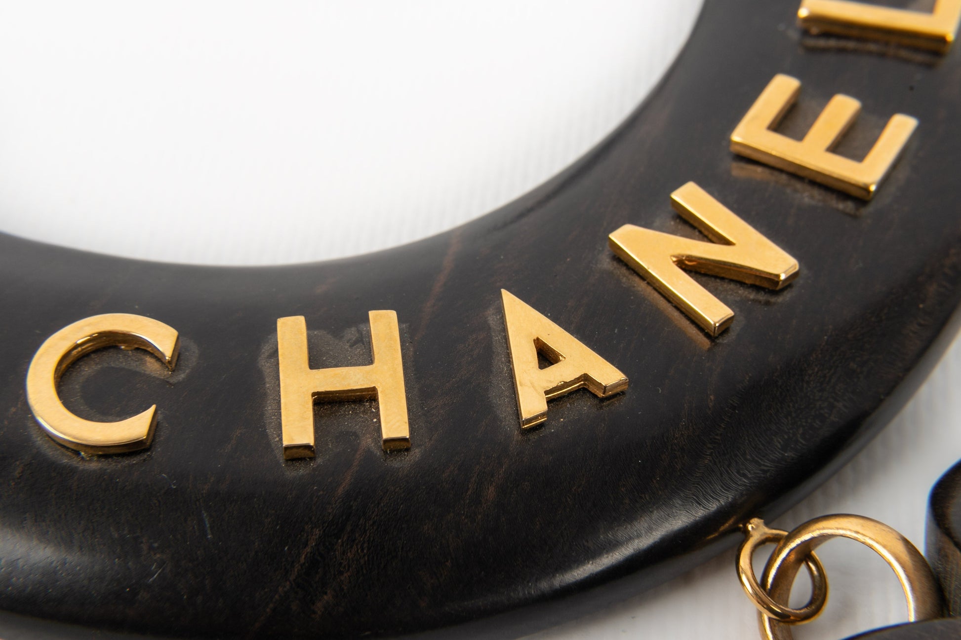 CHANEL - (Made in France) Collier court en bois et mtal dor. Collection 2cc8.