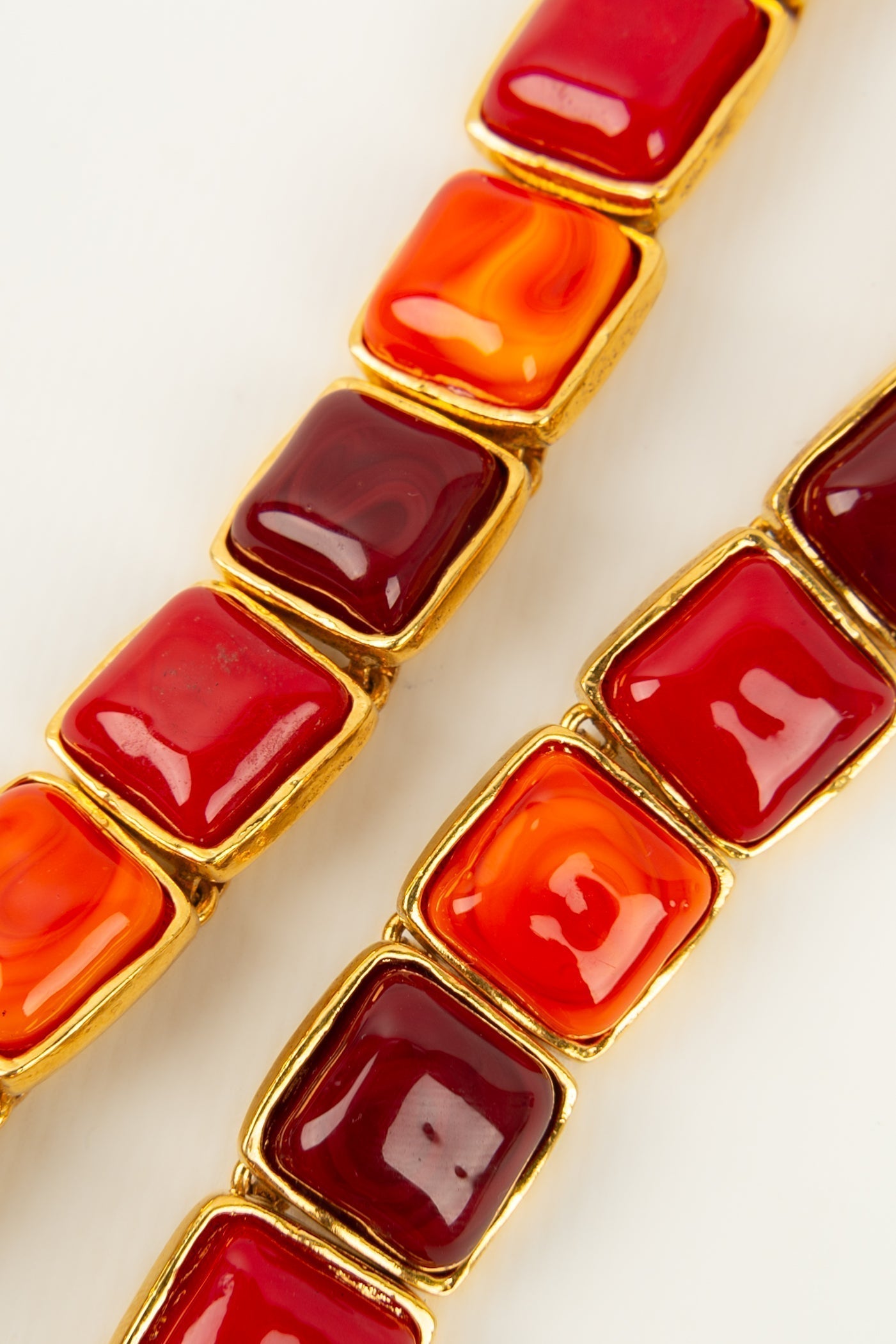 CHANEL - (Made in France) Collier articul en mtal dor et cabochons en pte de verre. Collection 2cc8. Travail de l'atelier Woloch pour la maison Chanel.