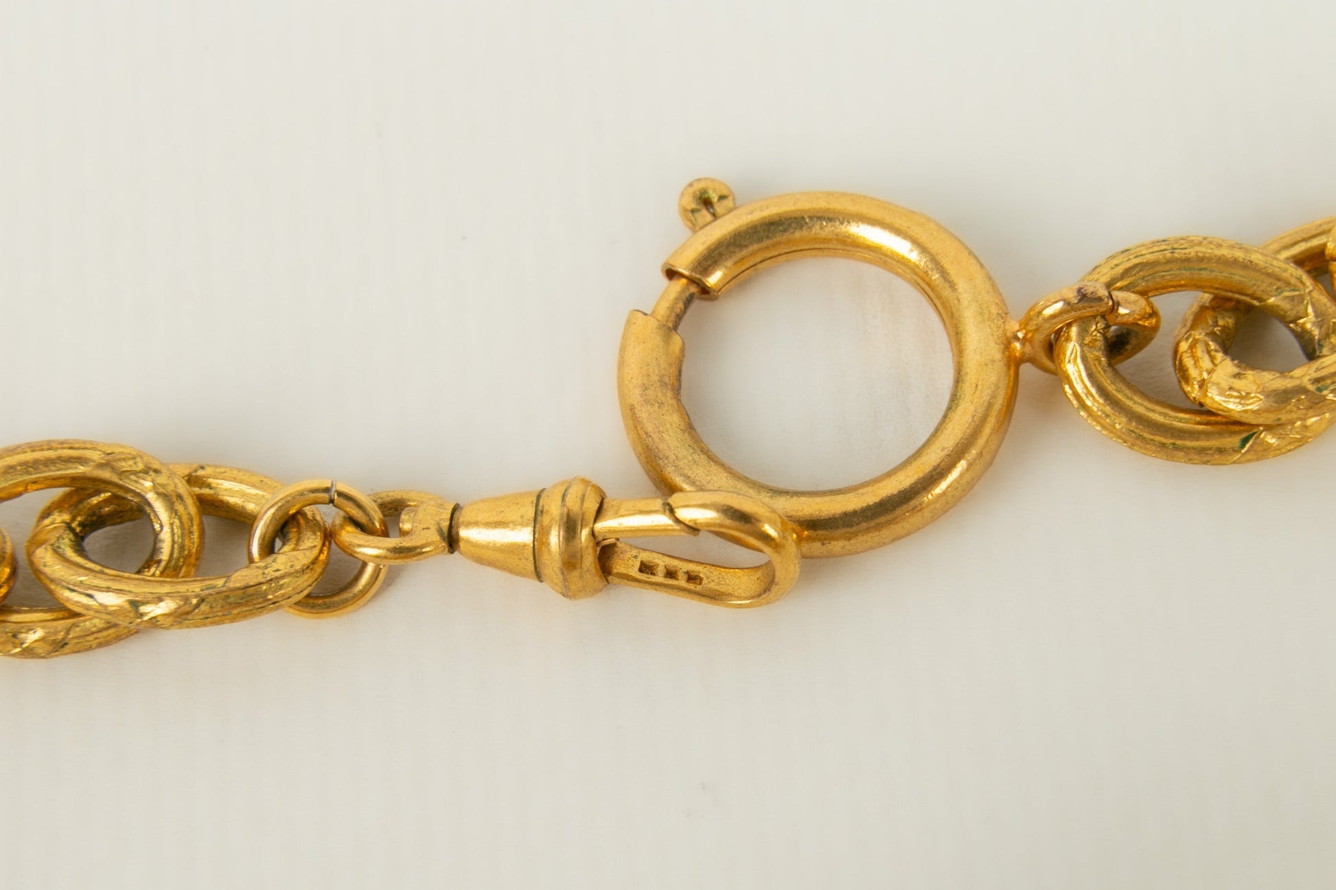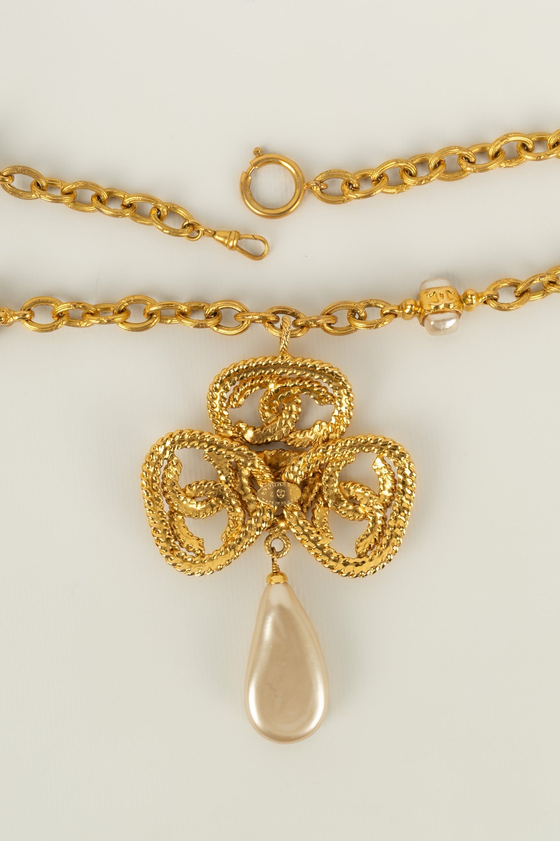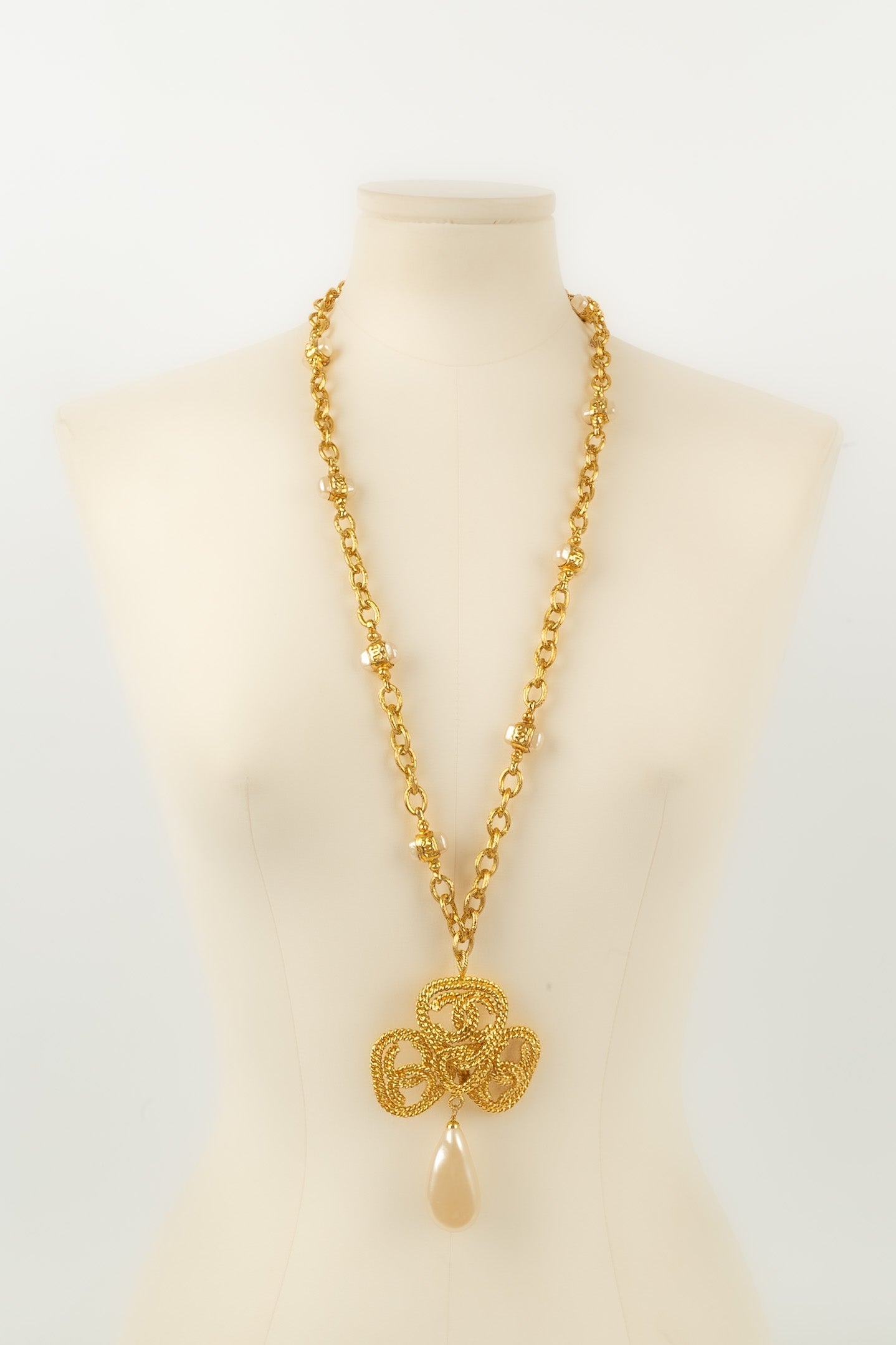 CHANEL - (Made in France) Collier pendentif en mtal dor et cabochons nacrs. Collection 2cc8.