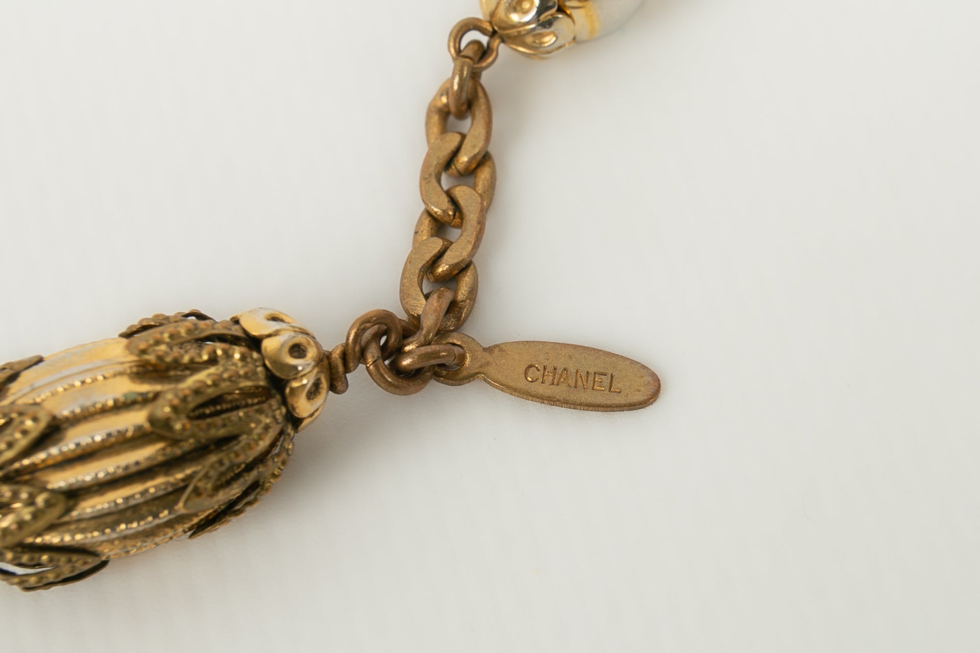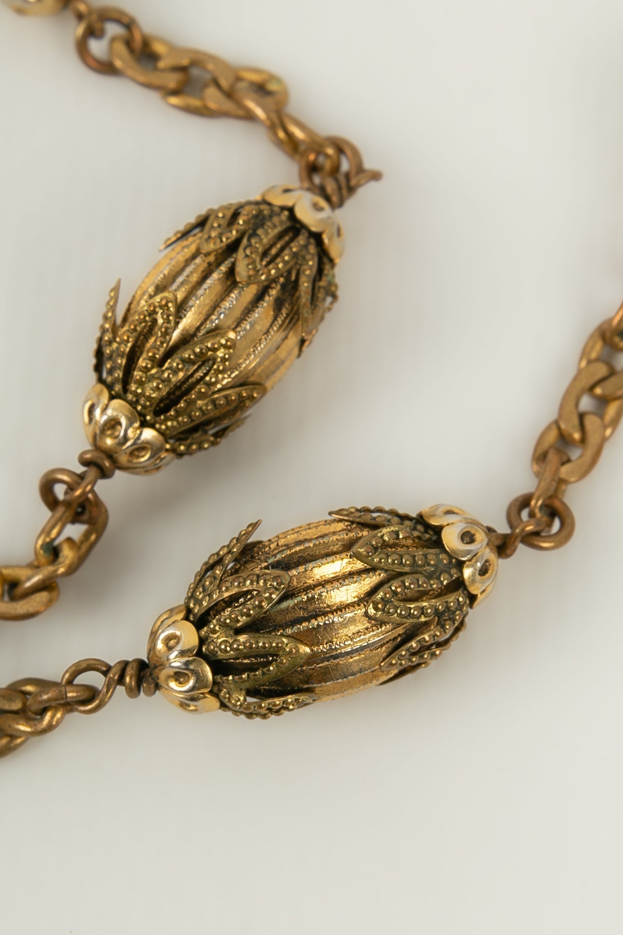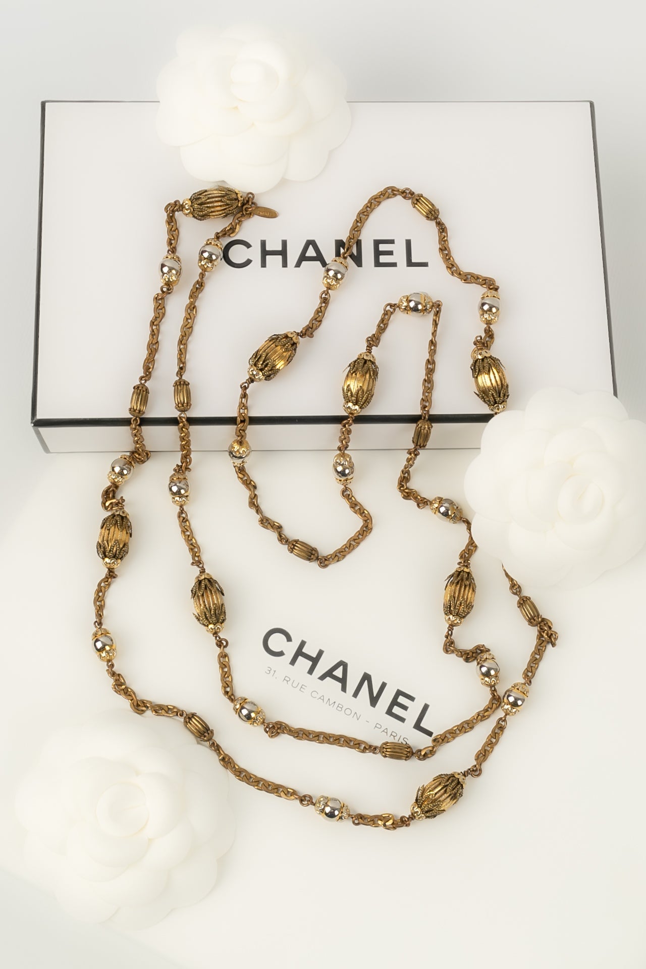 CHANEL - (Made in France) Collier / sautoir en mtal dor. Bijou datant des annes 1960.
