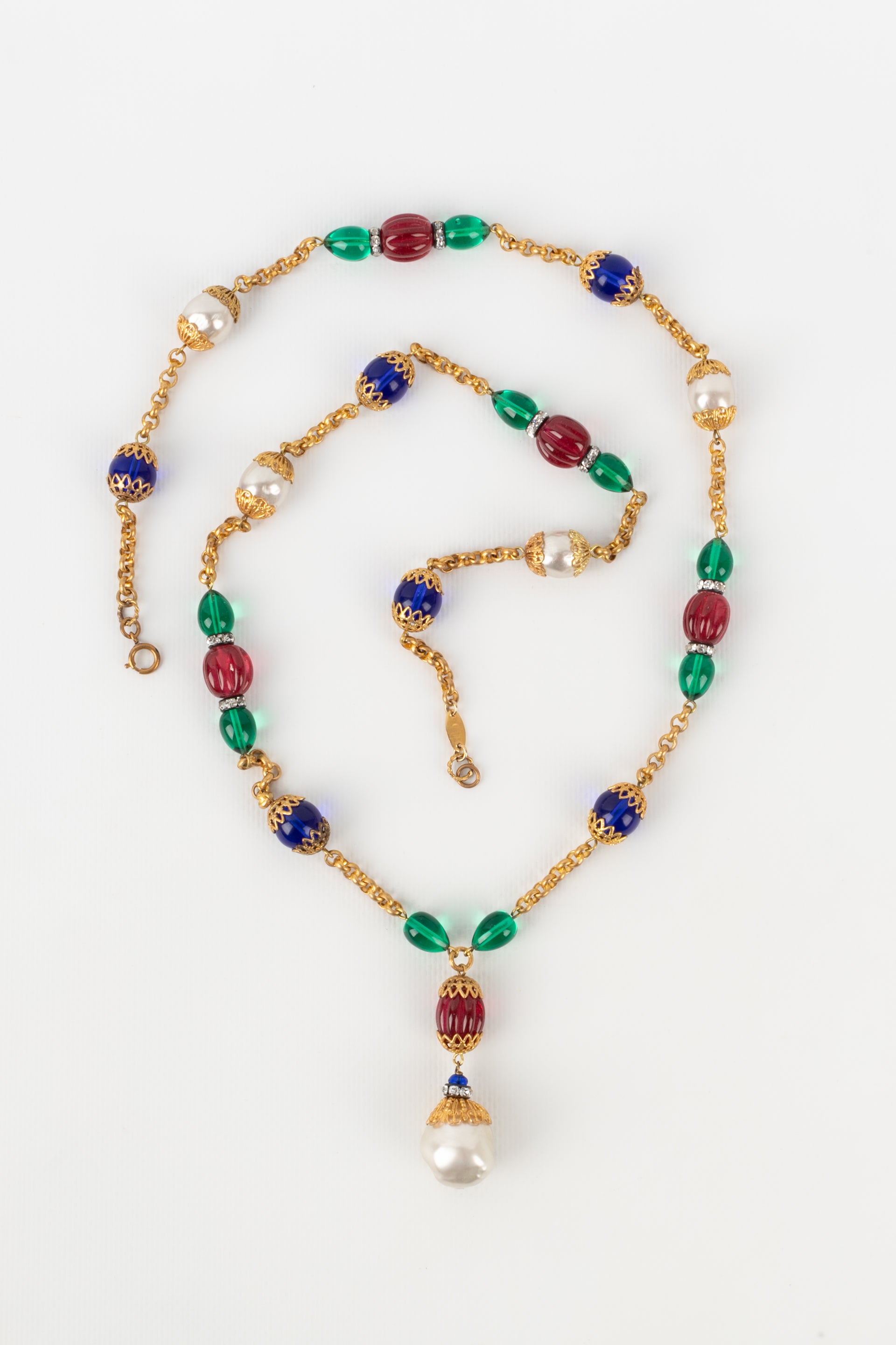 CHANEL - (Made in France) Collier en mtal dor, perles nacres fantaisies et perles de verre. Travail de l'atelier Rousselet pour la maison Chanel