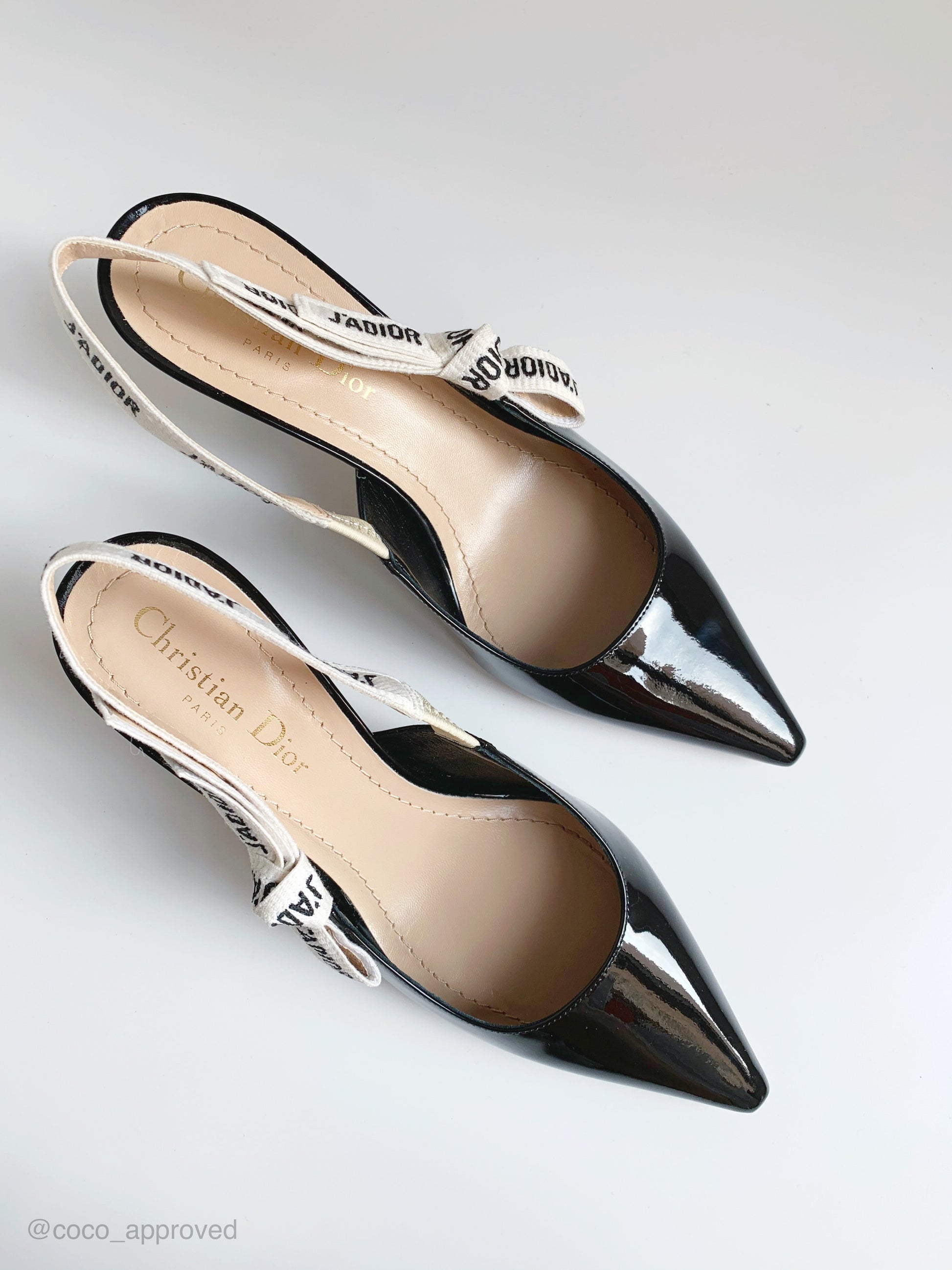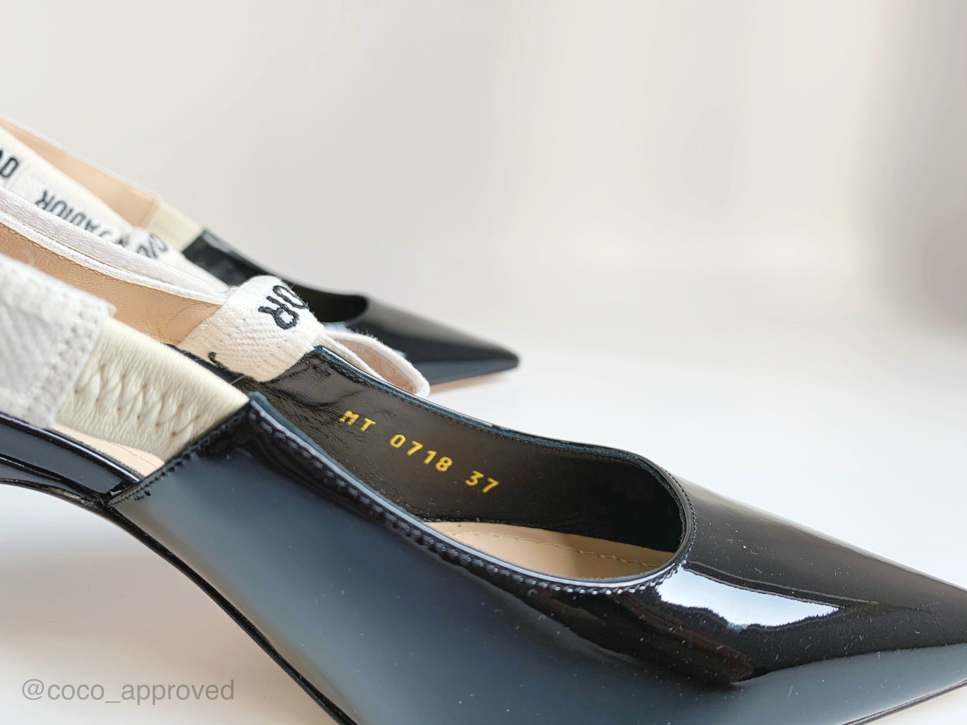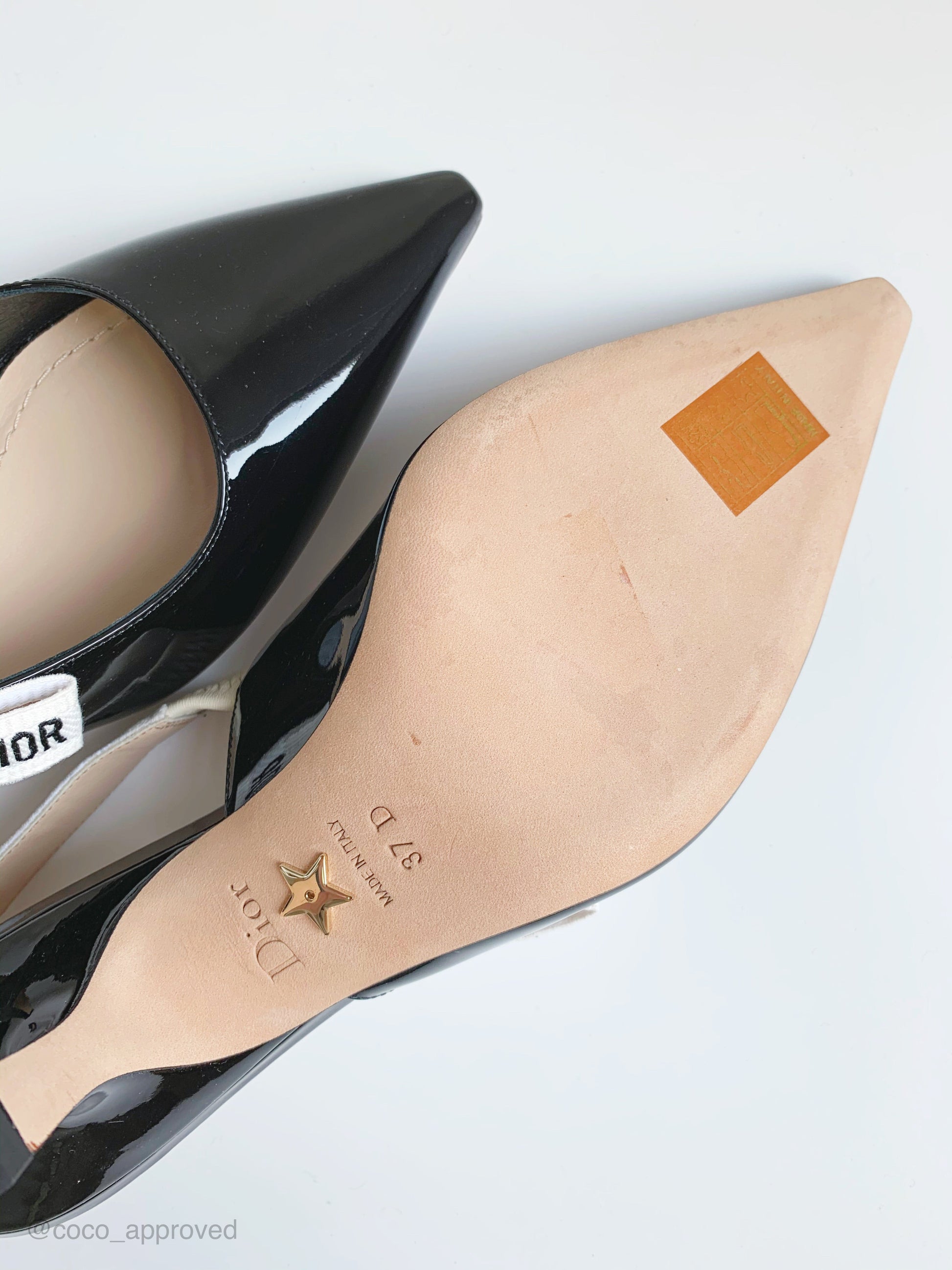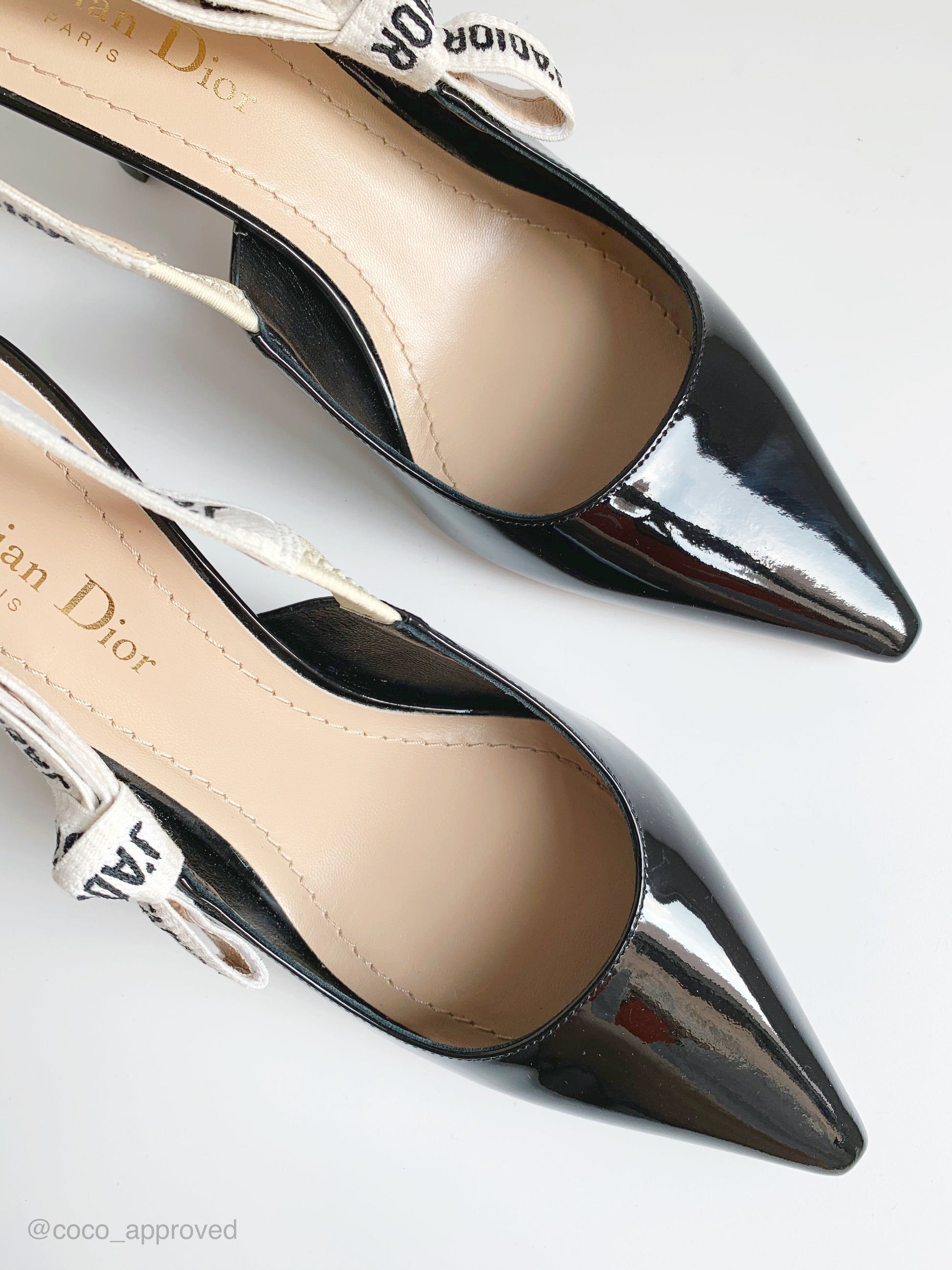 Christian Dior Patent J'adior Ribbon Slingback Pumps 37 Black