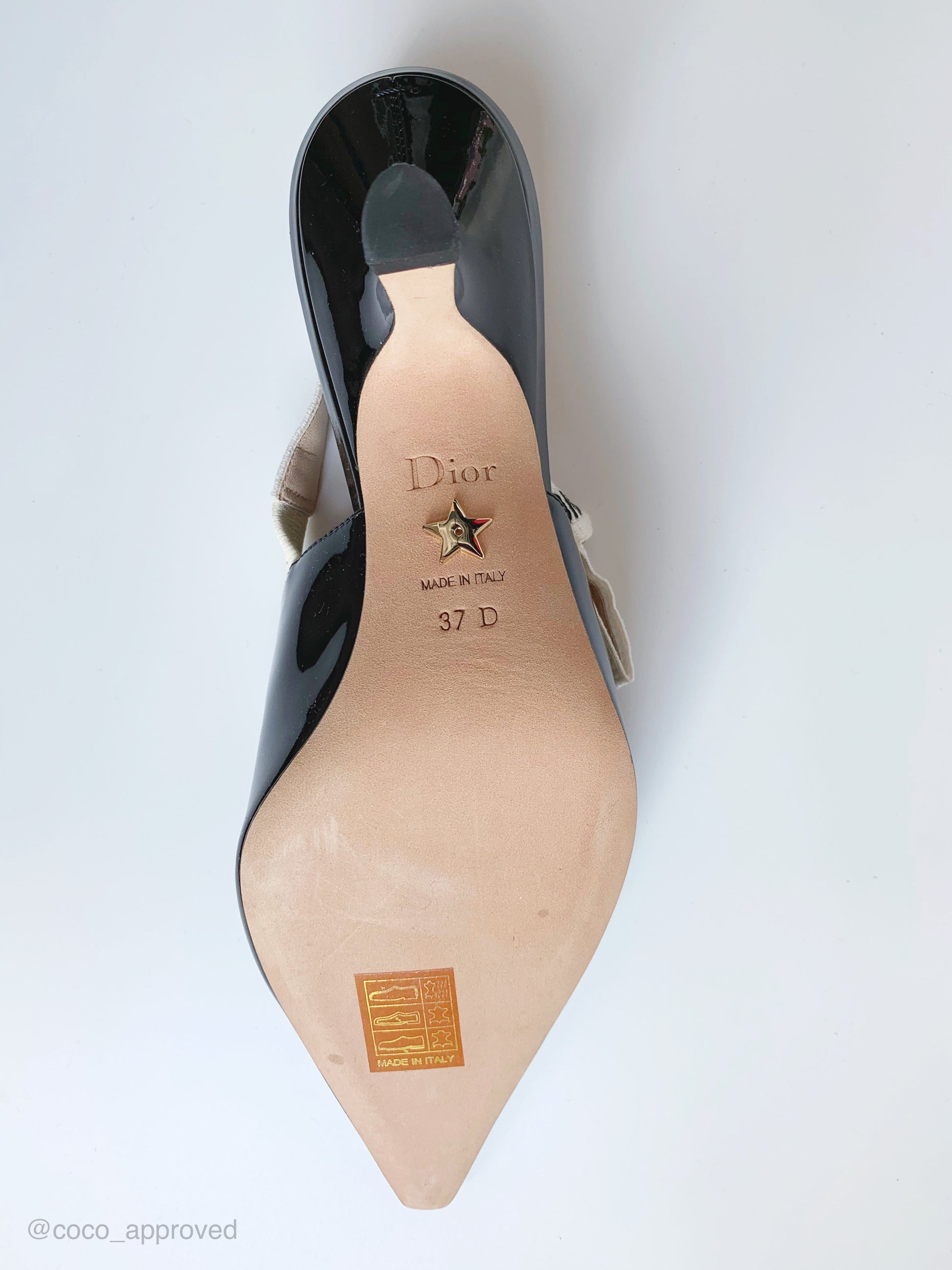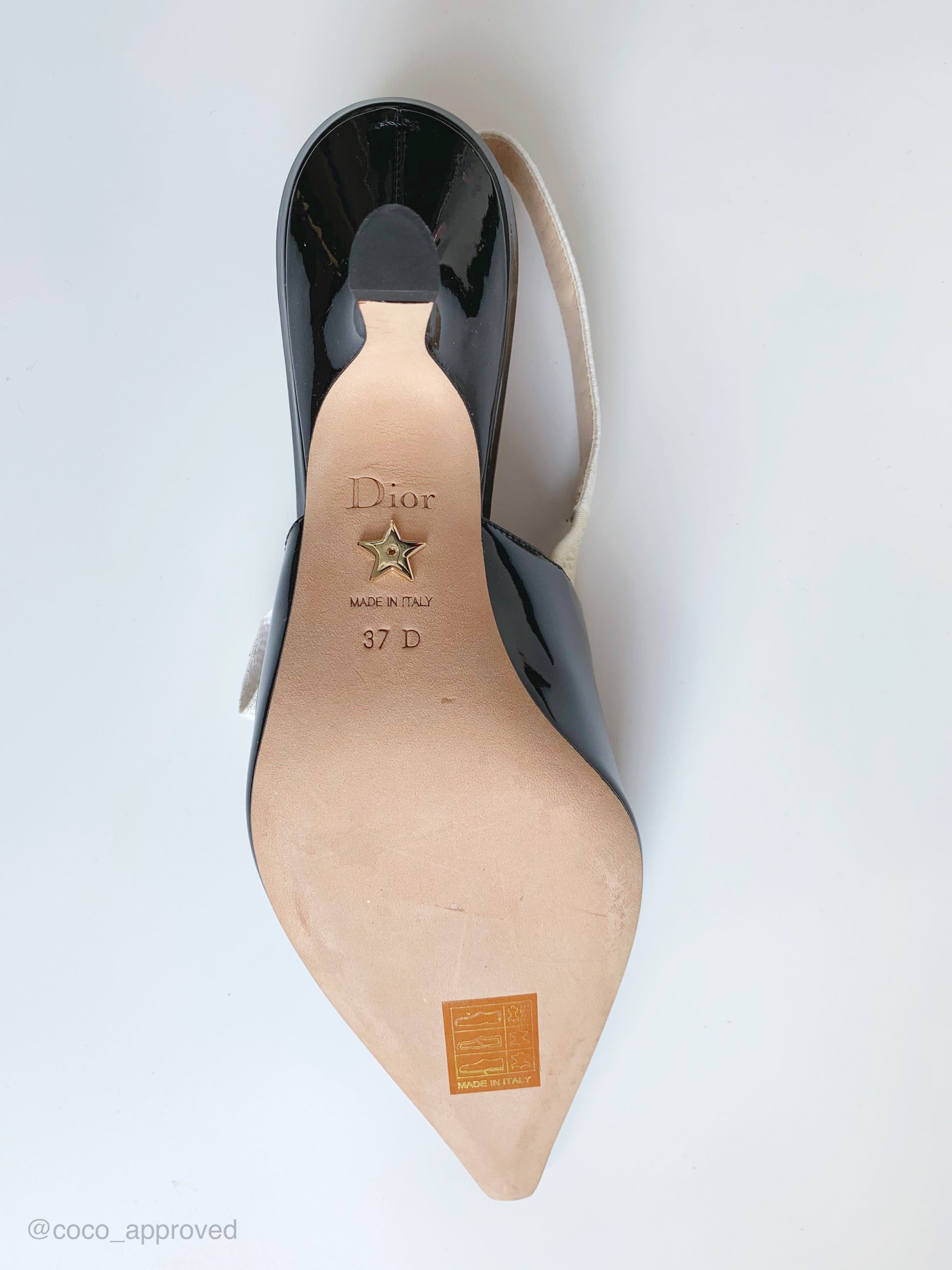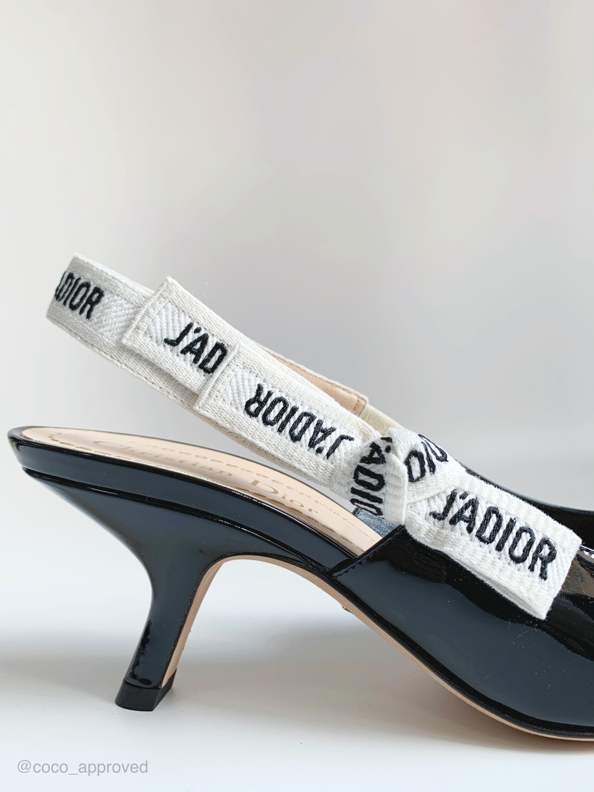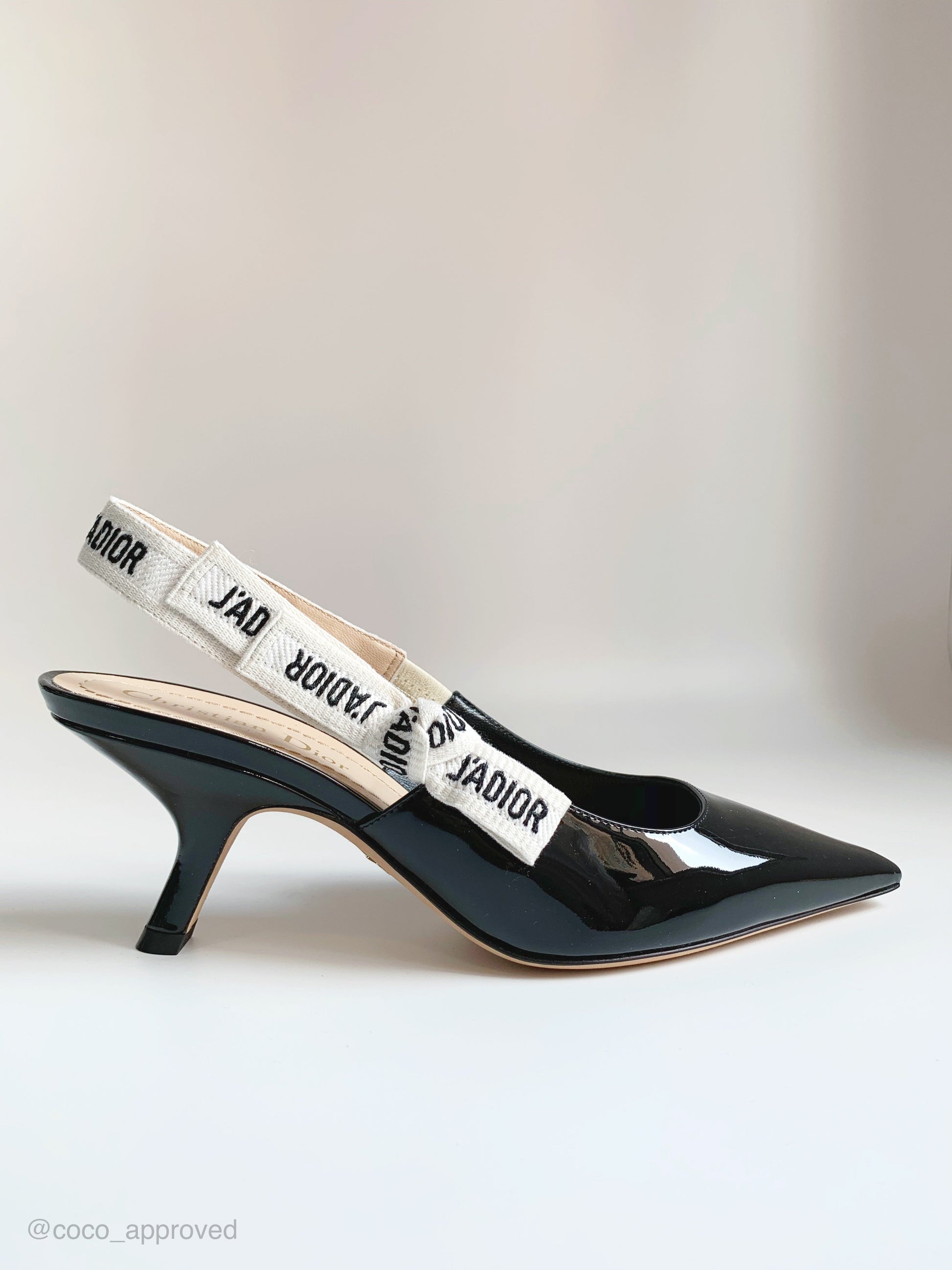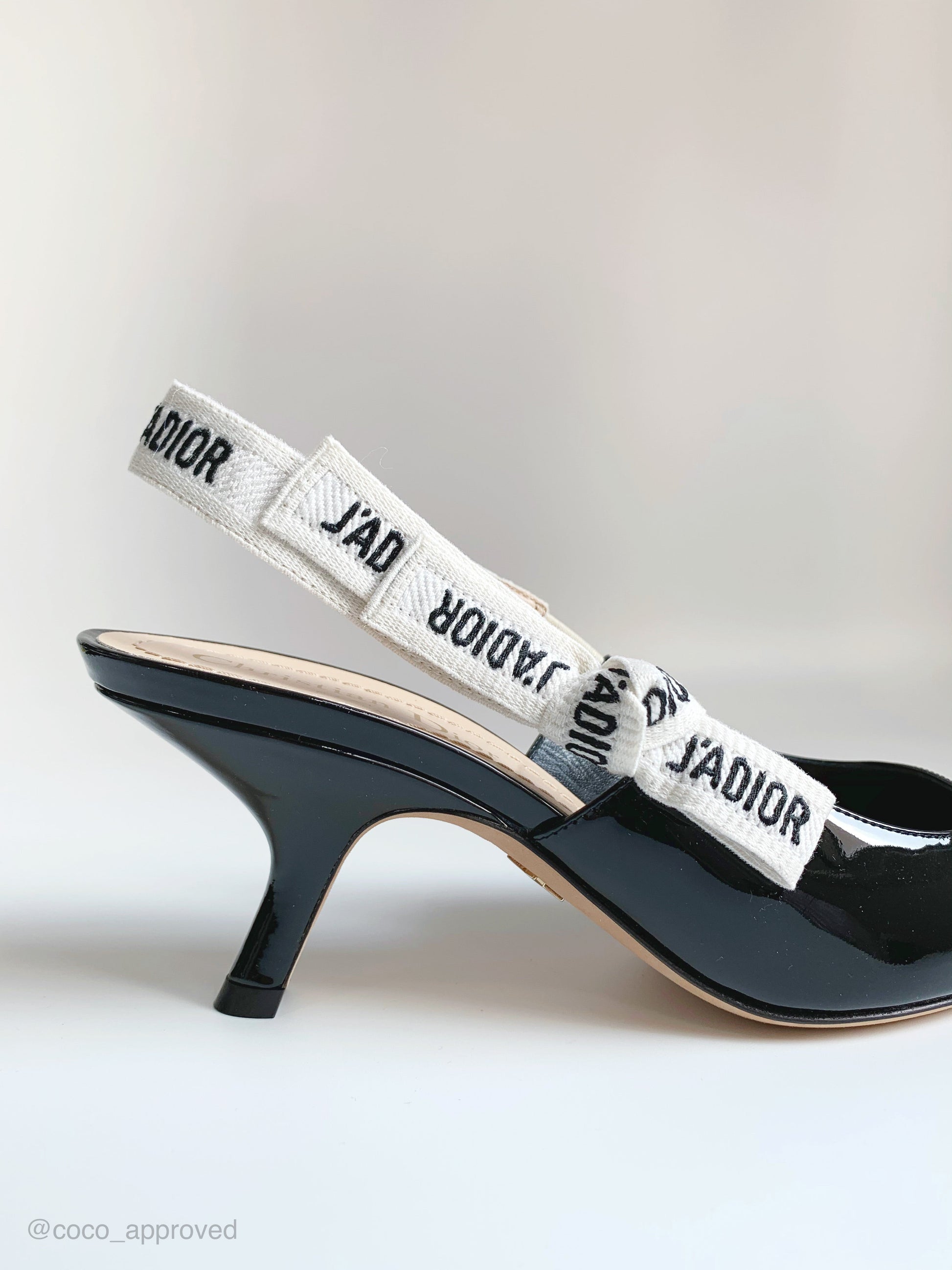 Christian Dior Patent J'adior Ribbon Slingback Pumps 37 Black
