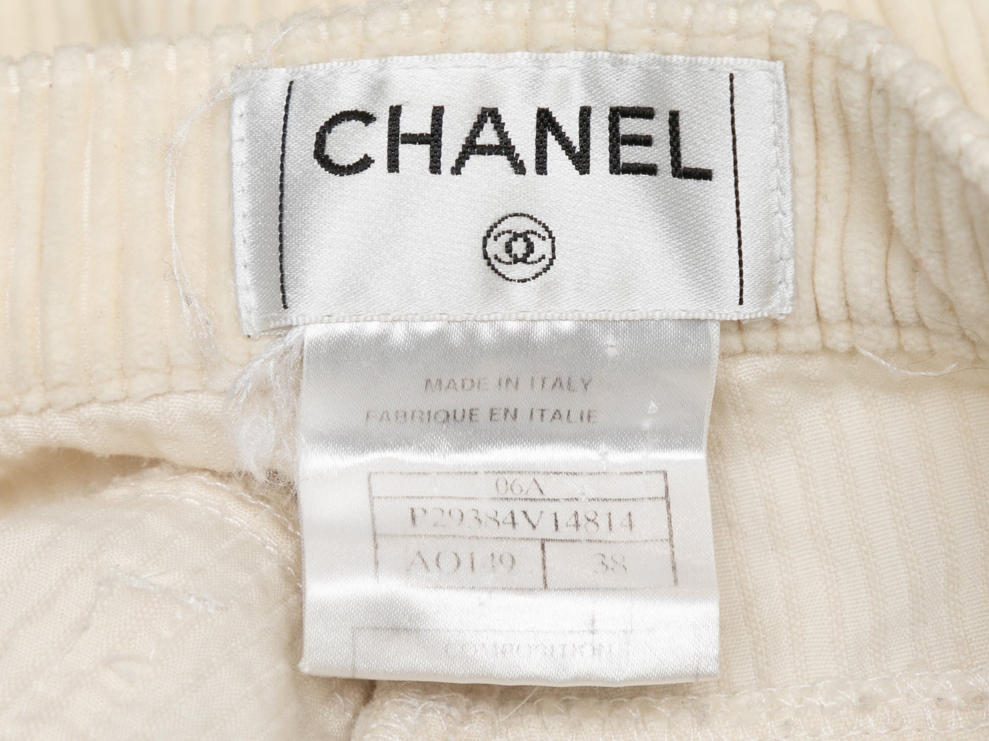 Cream Chanel Fall/Winter 2006 Corduroy Pants Size FR 38