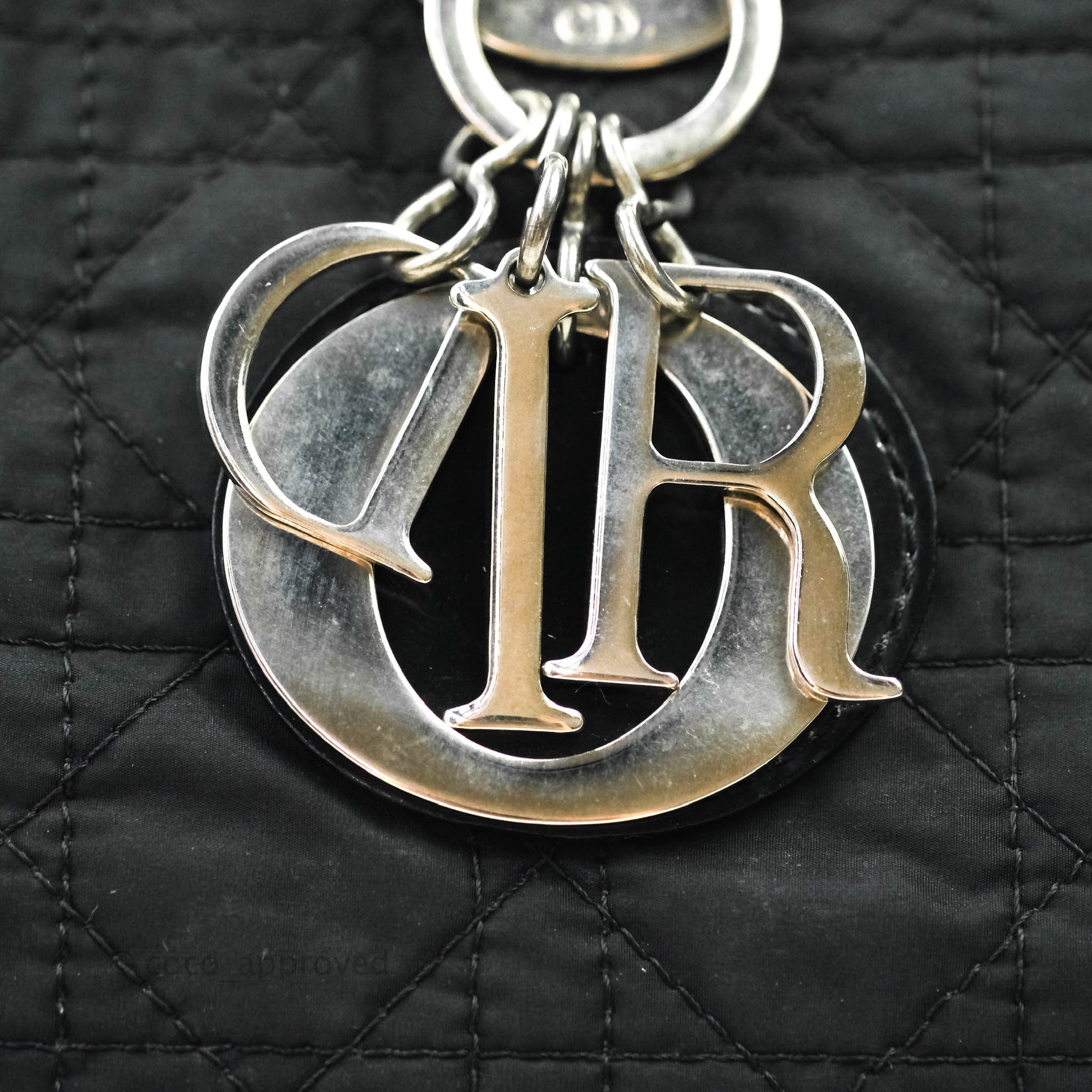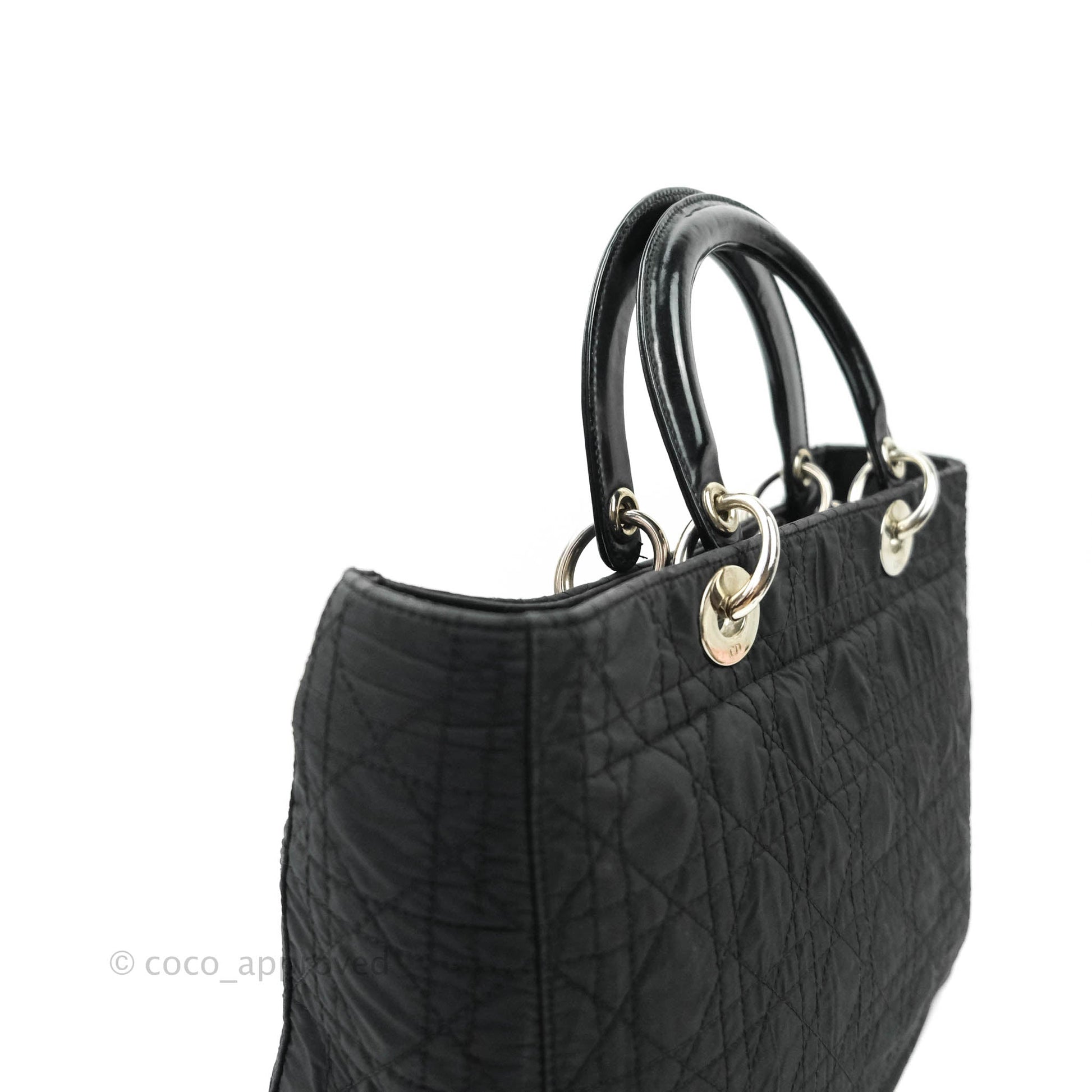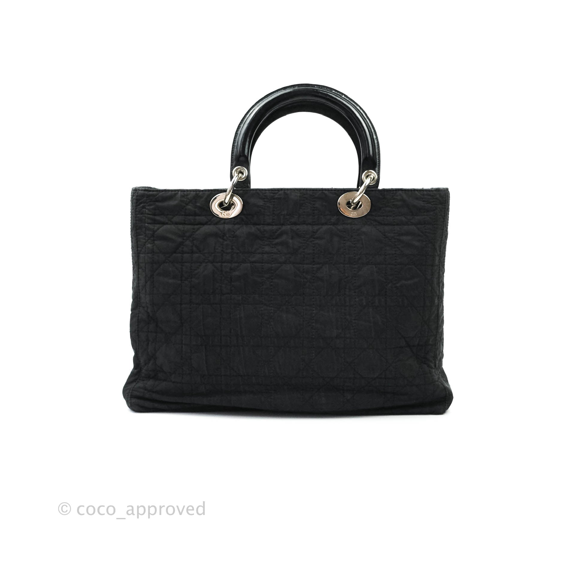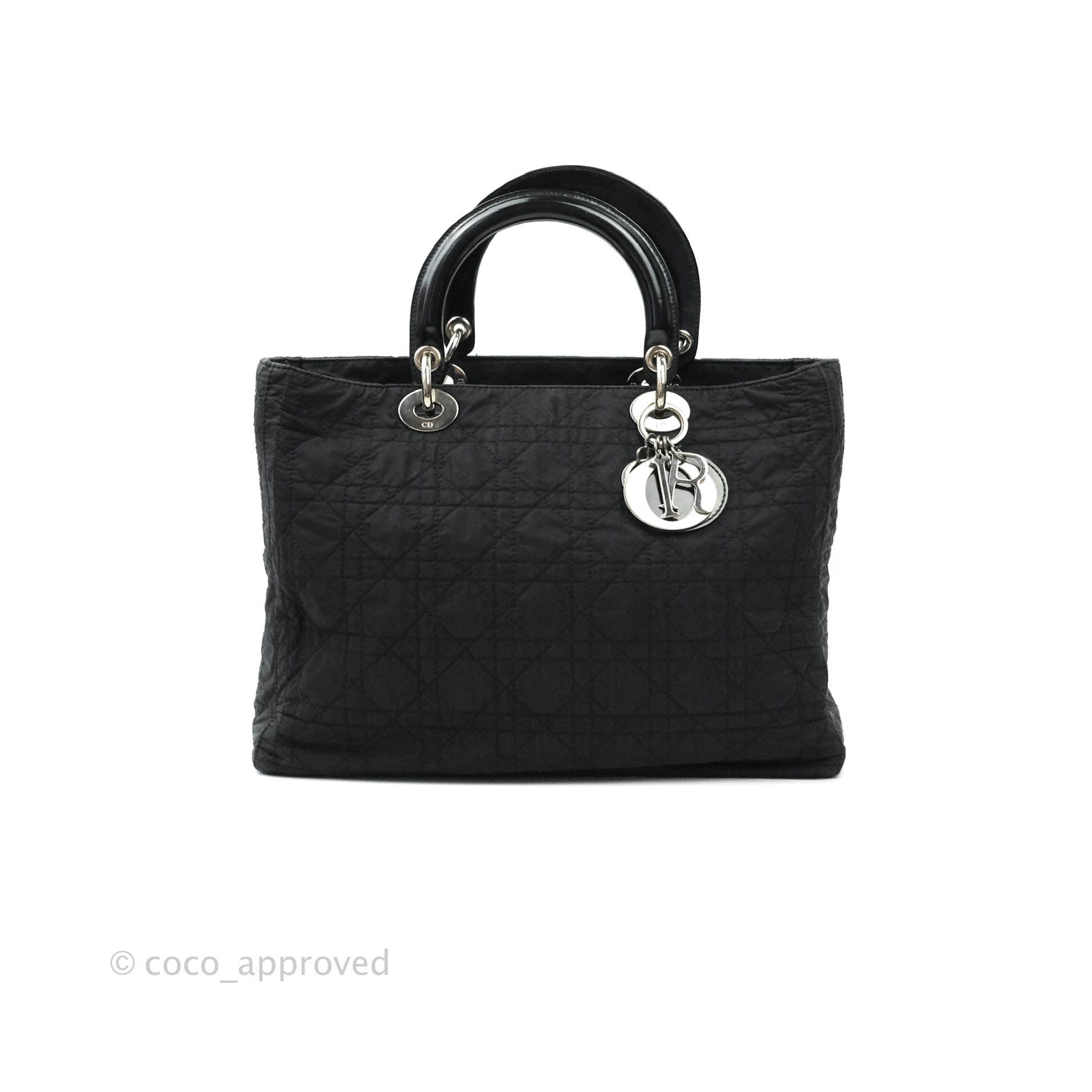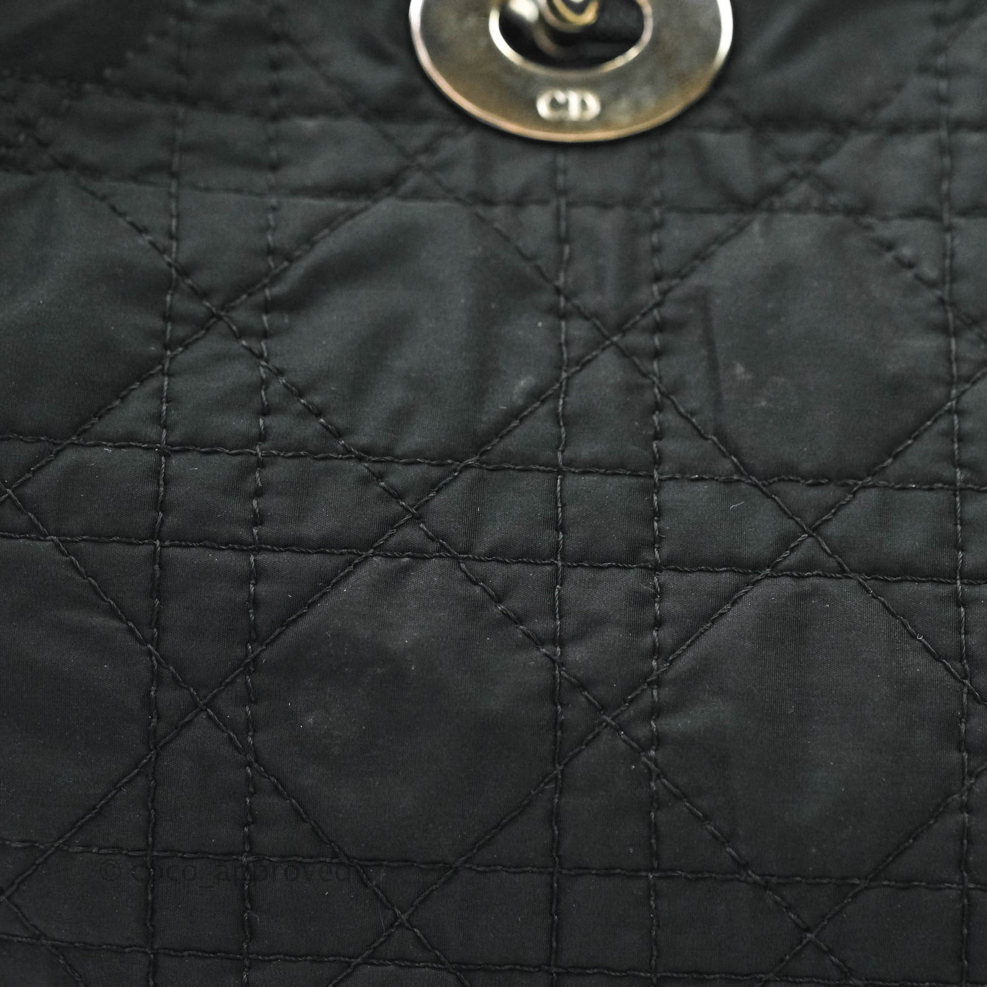Christian Dior Vintage Large Cannage Fabric Black Lady Dior Silver Hardware