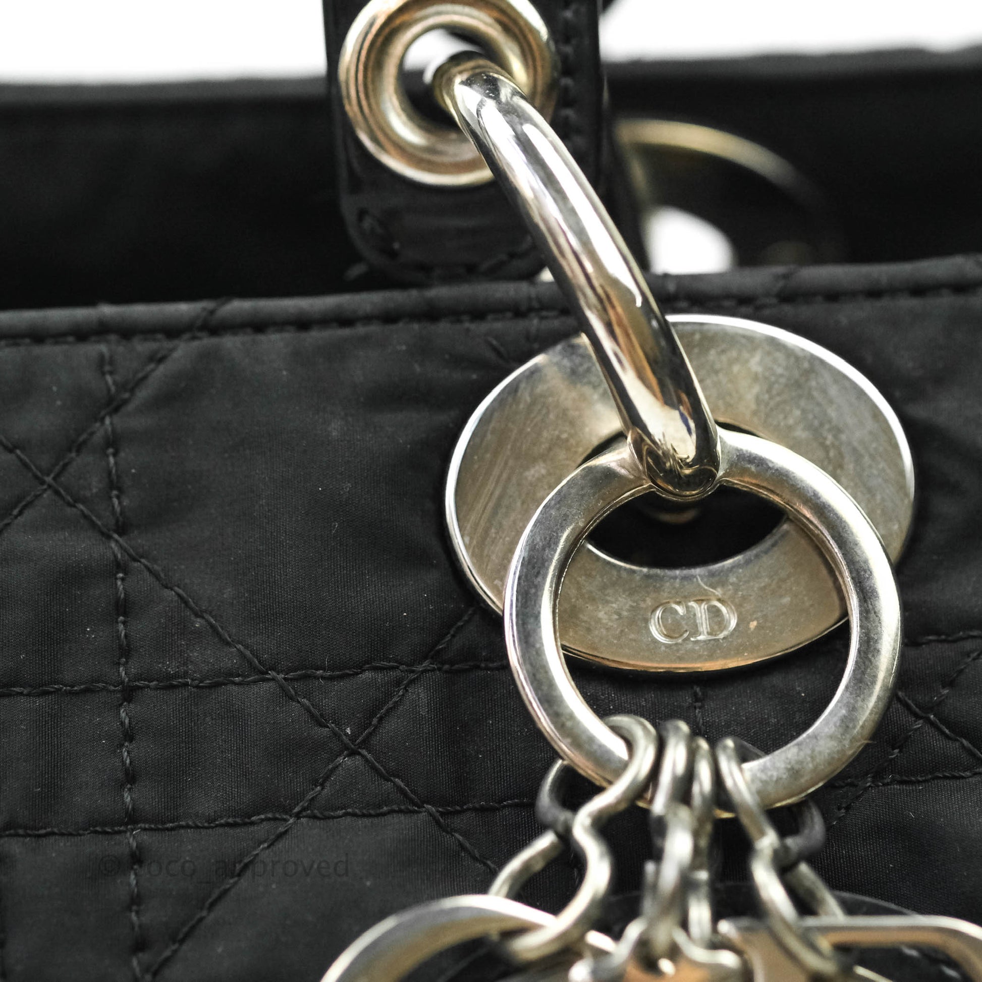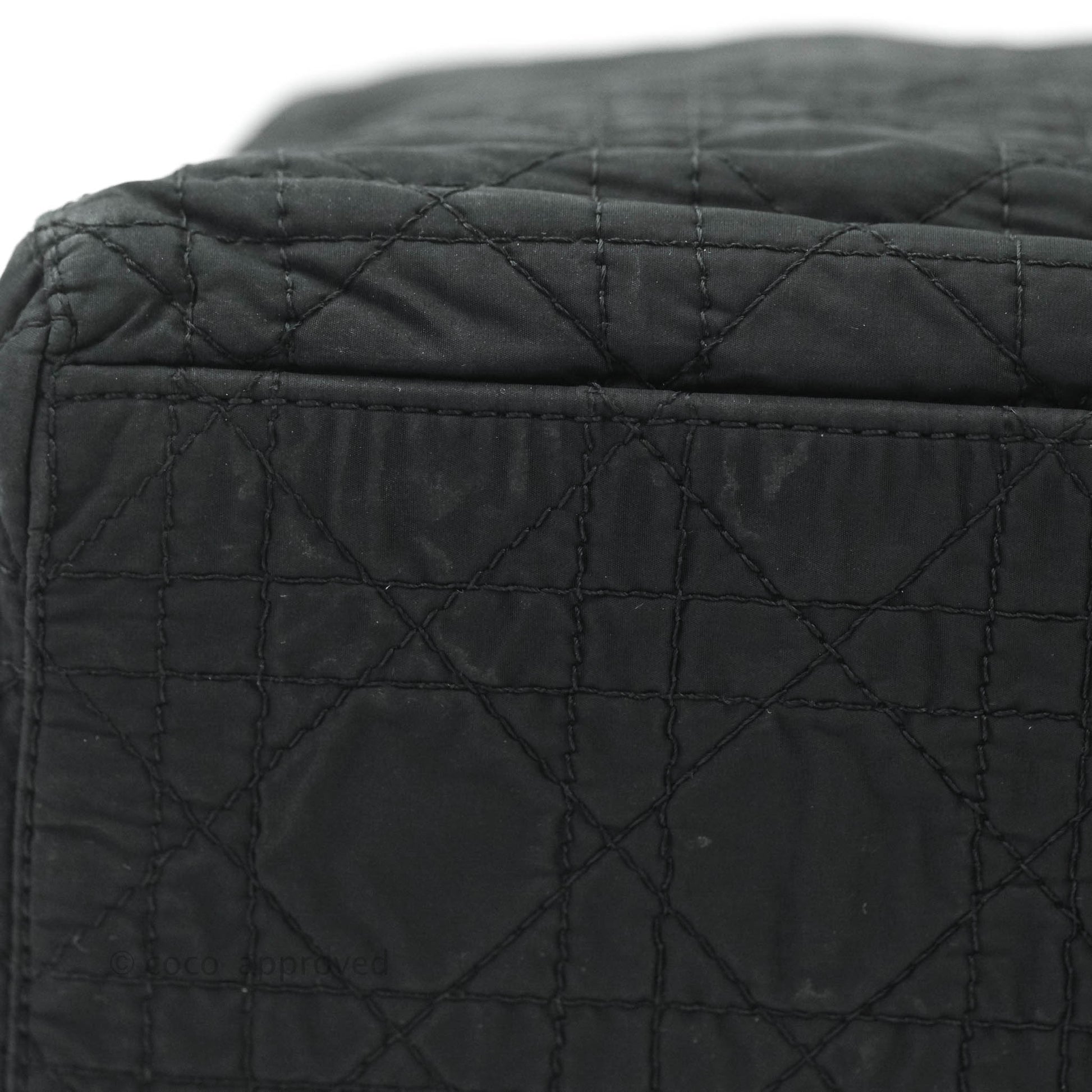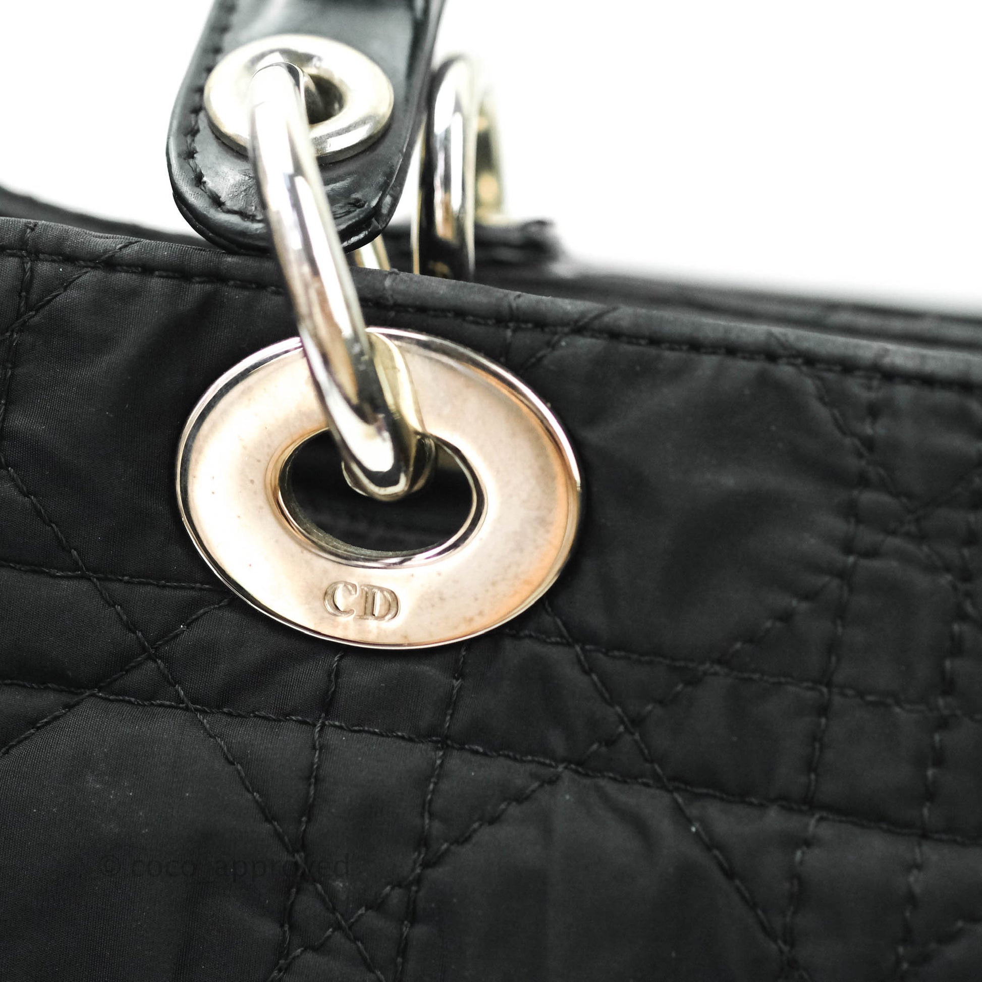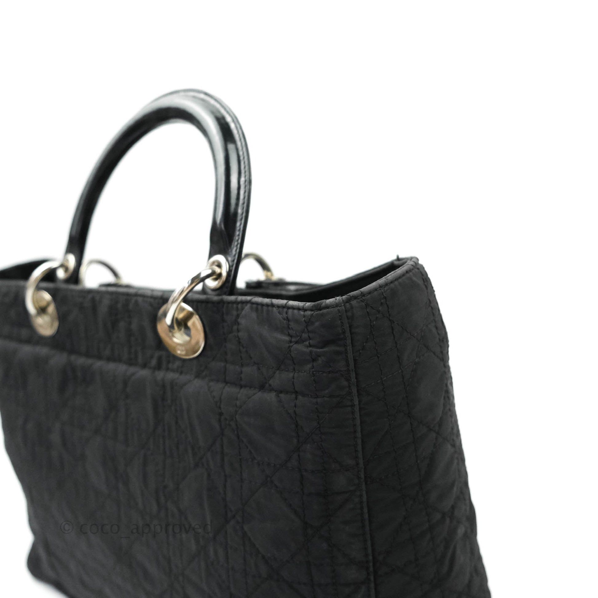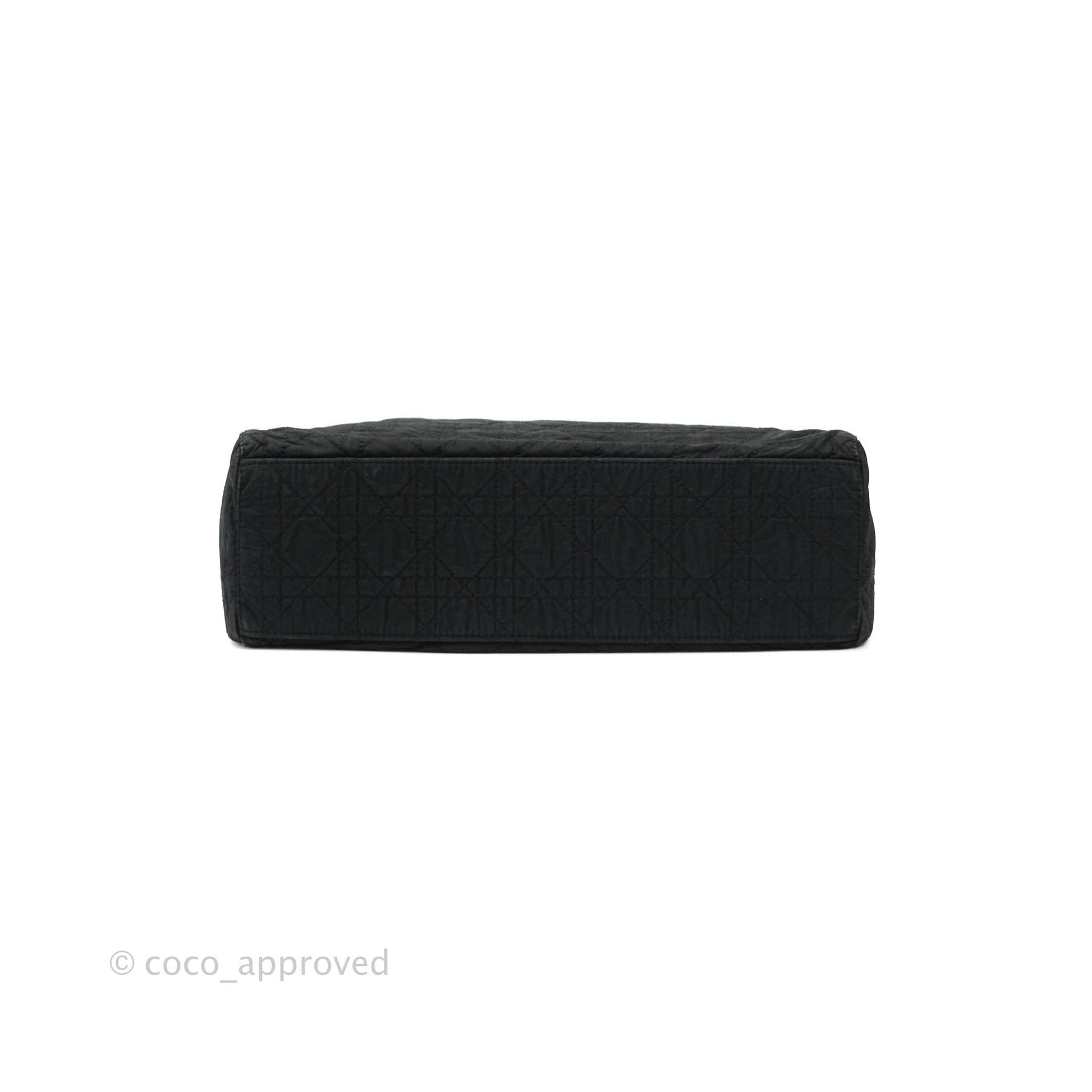 Christian Dior Vintage Large Cannage Fabric Black Lady Dior Silver Hardware