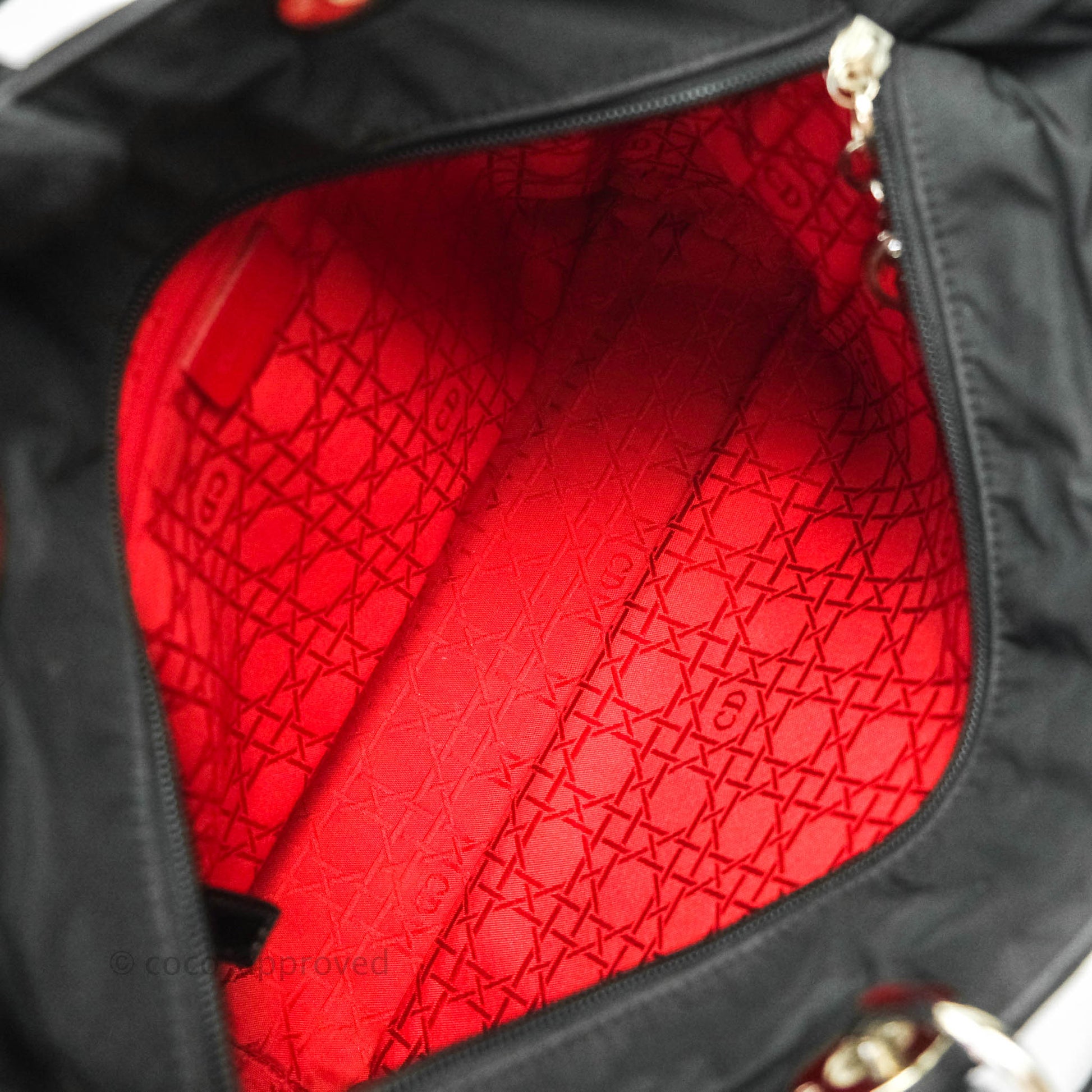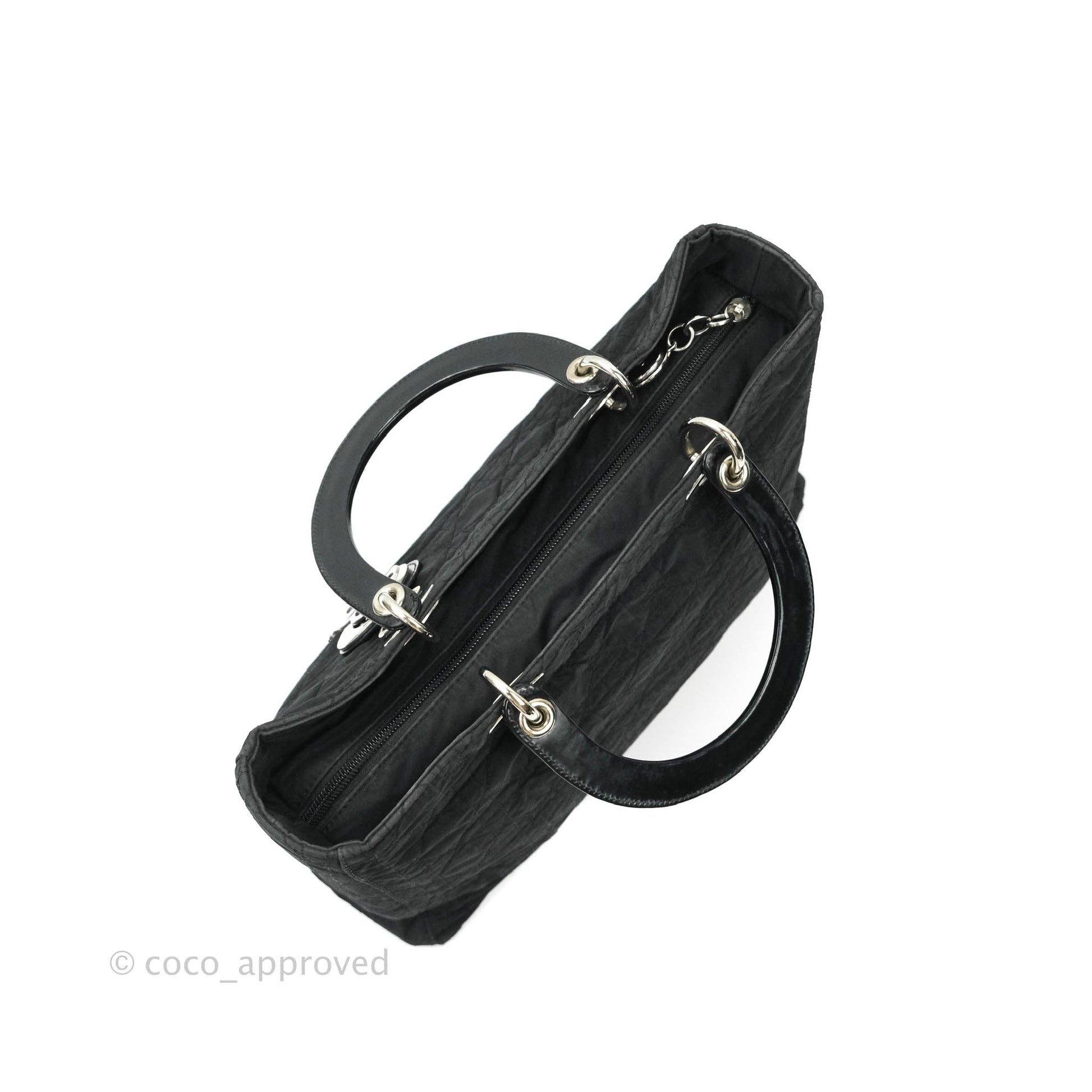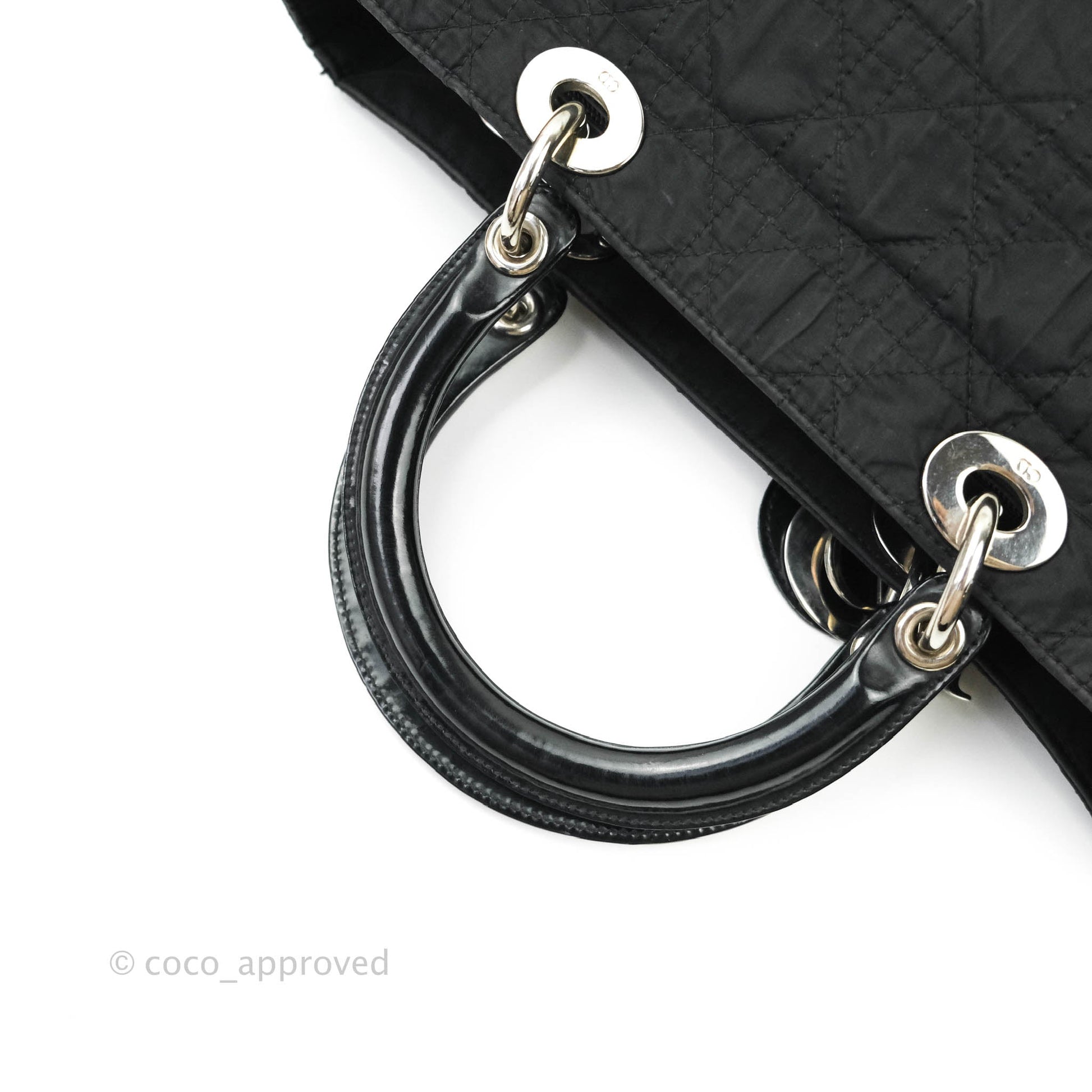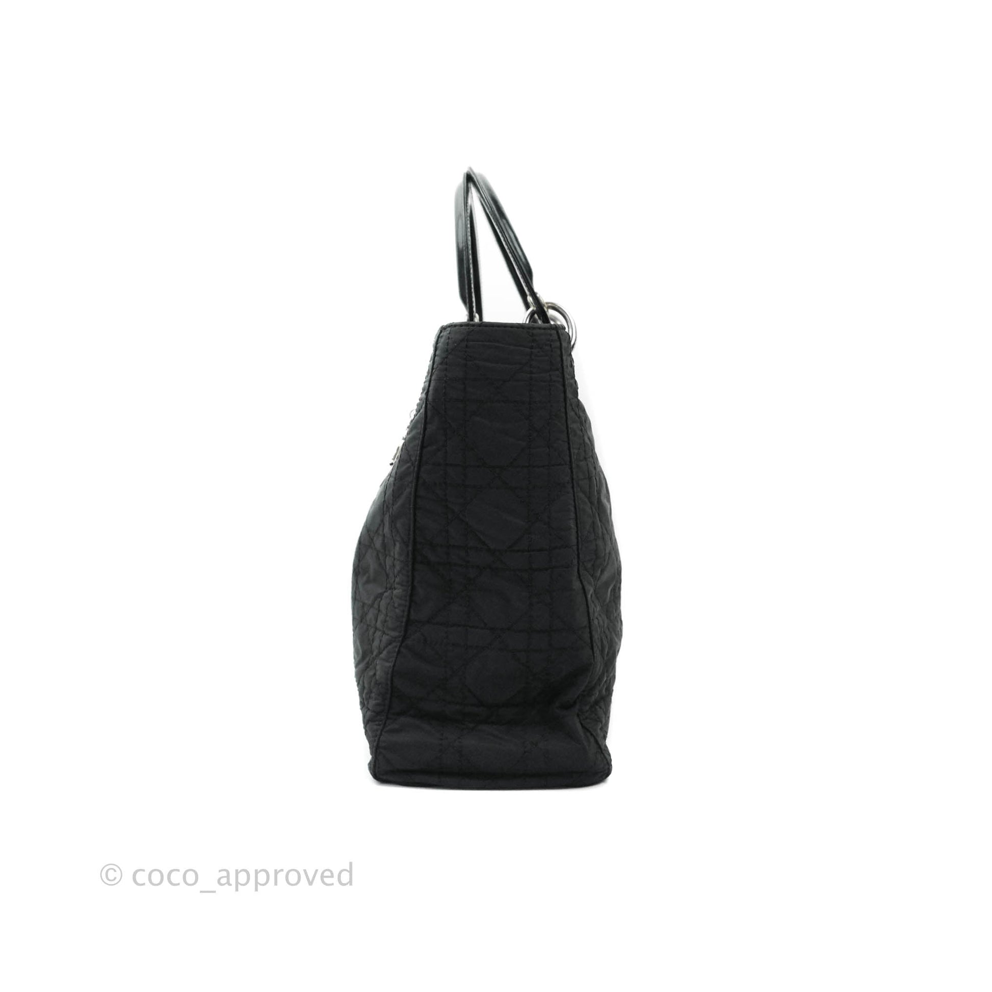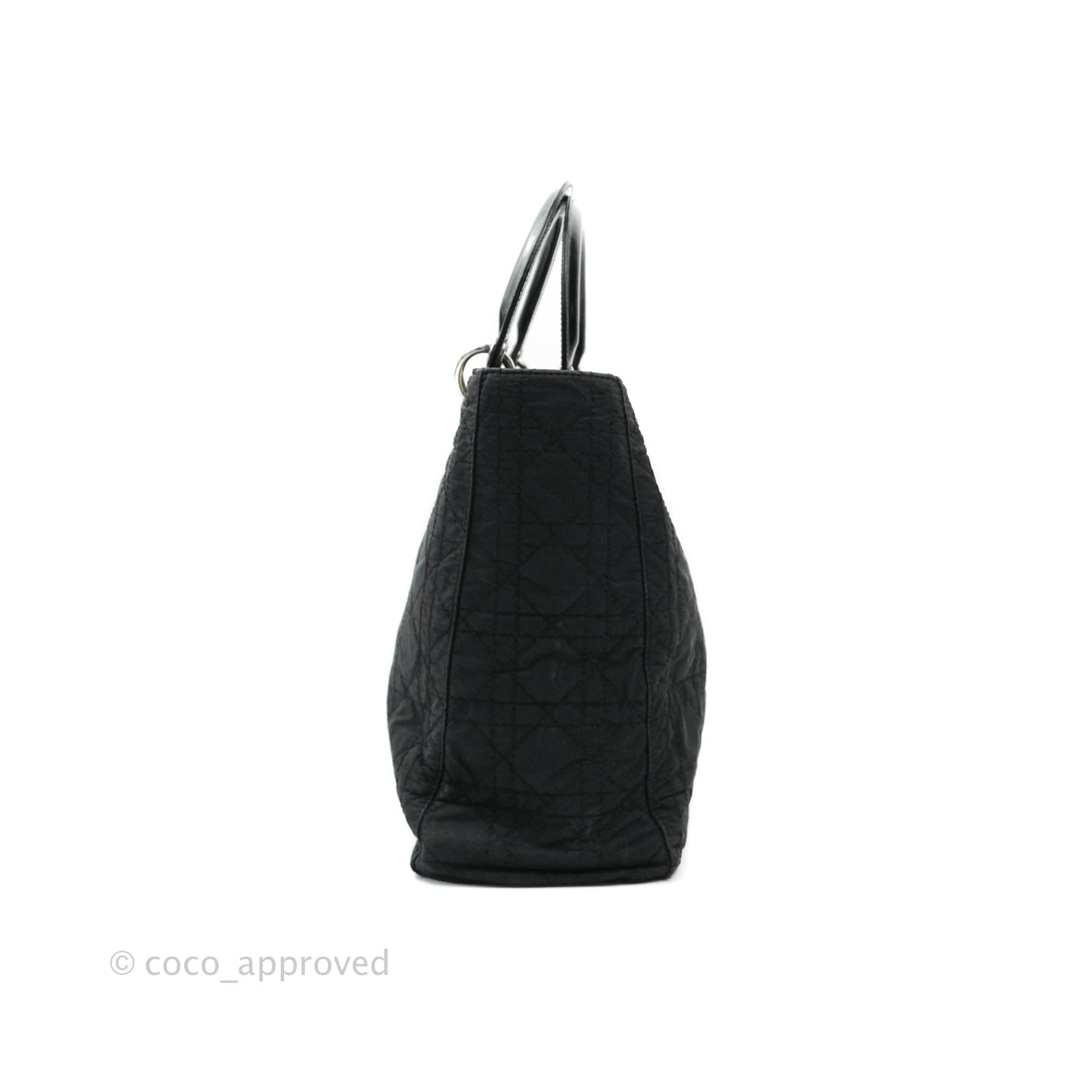 Christian Dior Vintage Large Cannage Fabric Black Lady Dior Silver Hardware