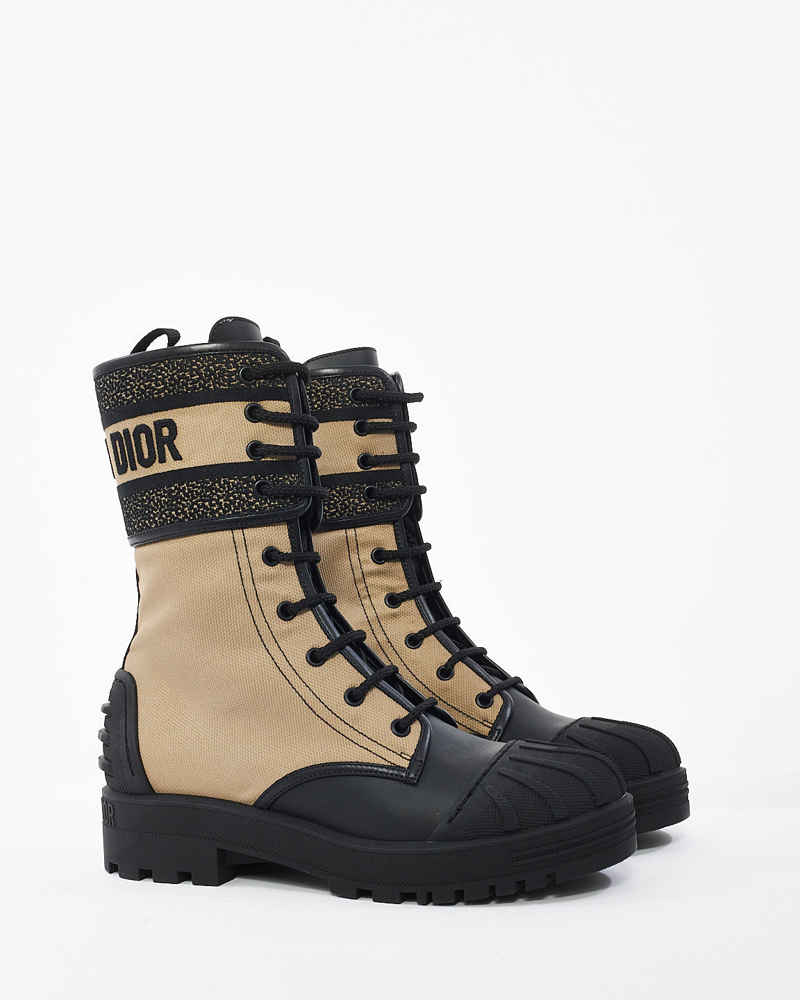 Dior Beige/Black Canvas D-Major Combat Boot - 38