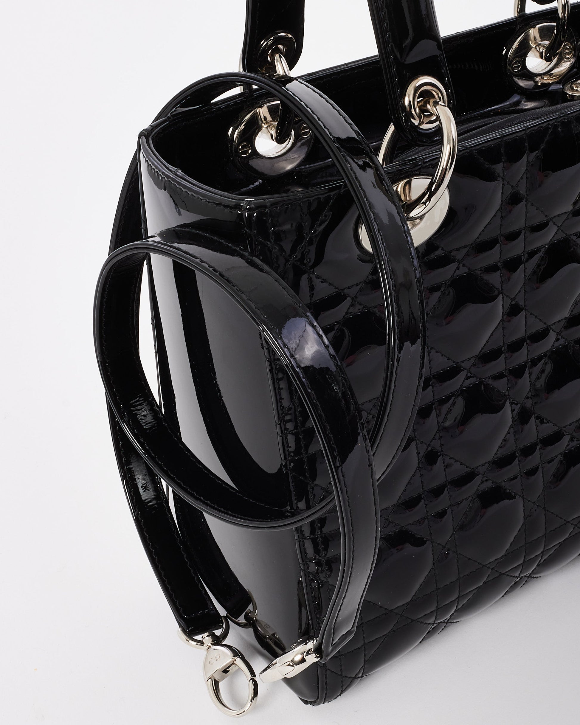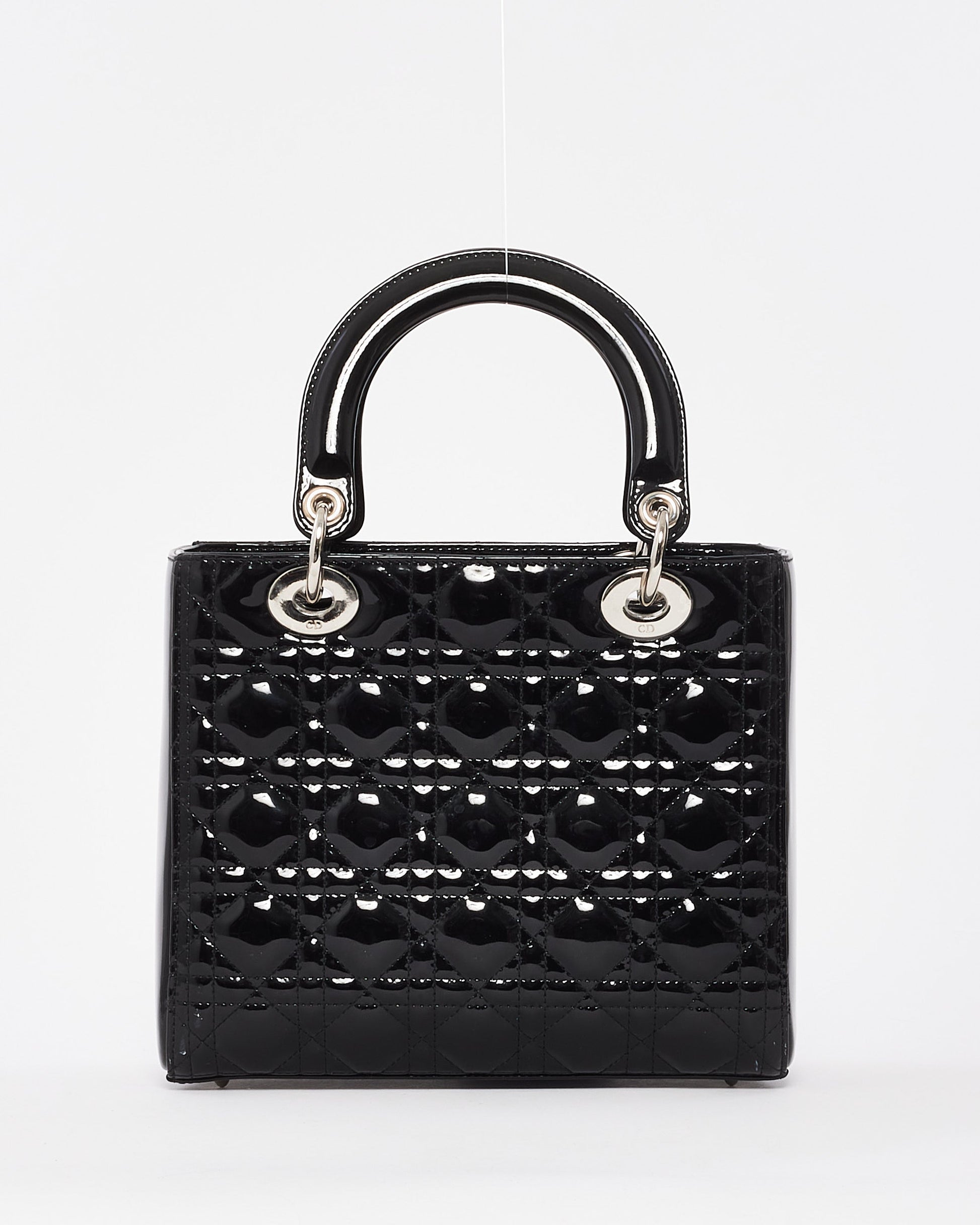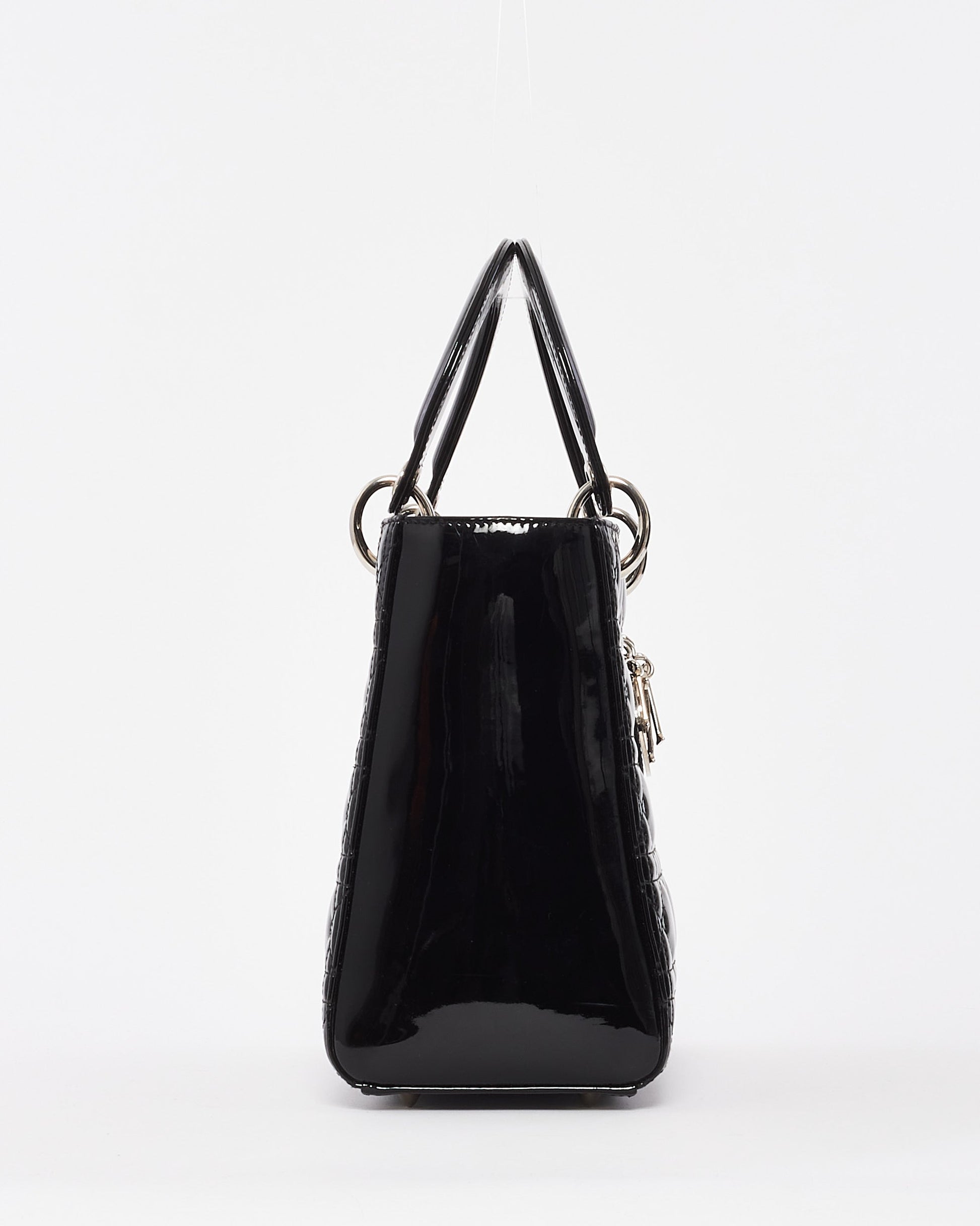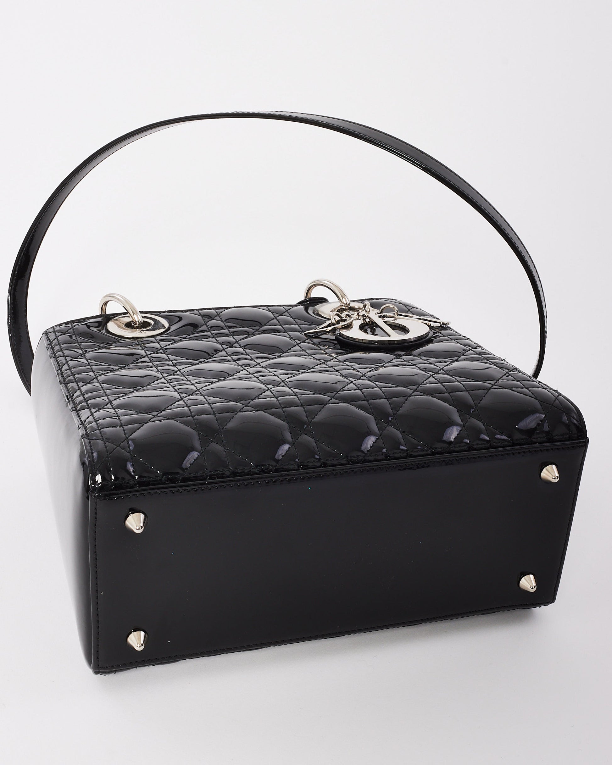 Dior Black Cannage Patent Leather Medium Lady Dior Bag