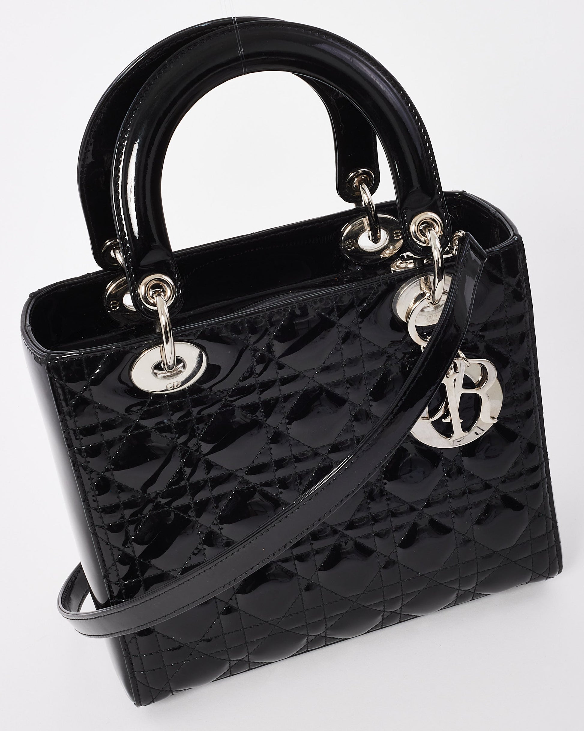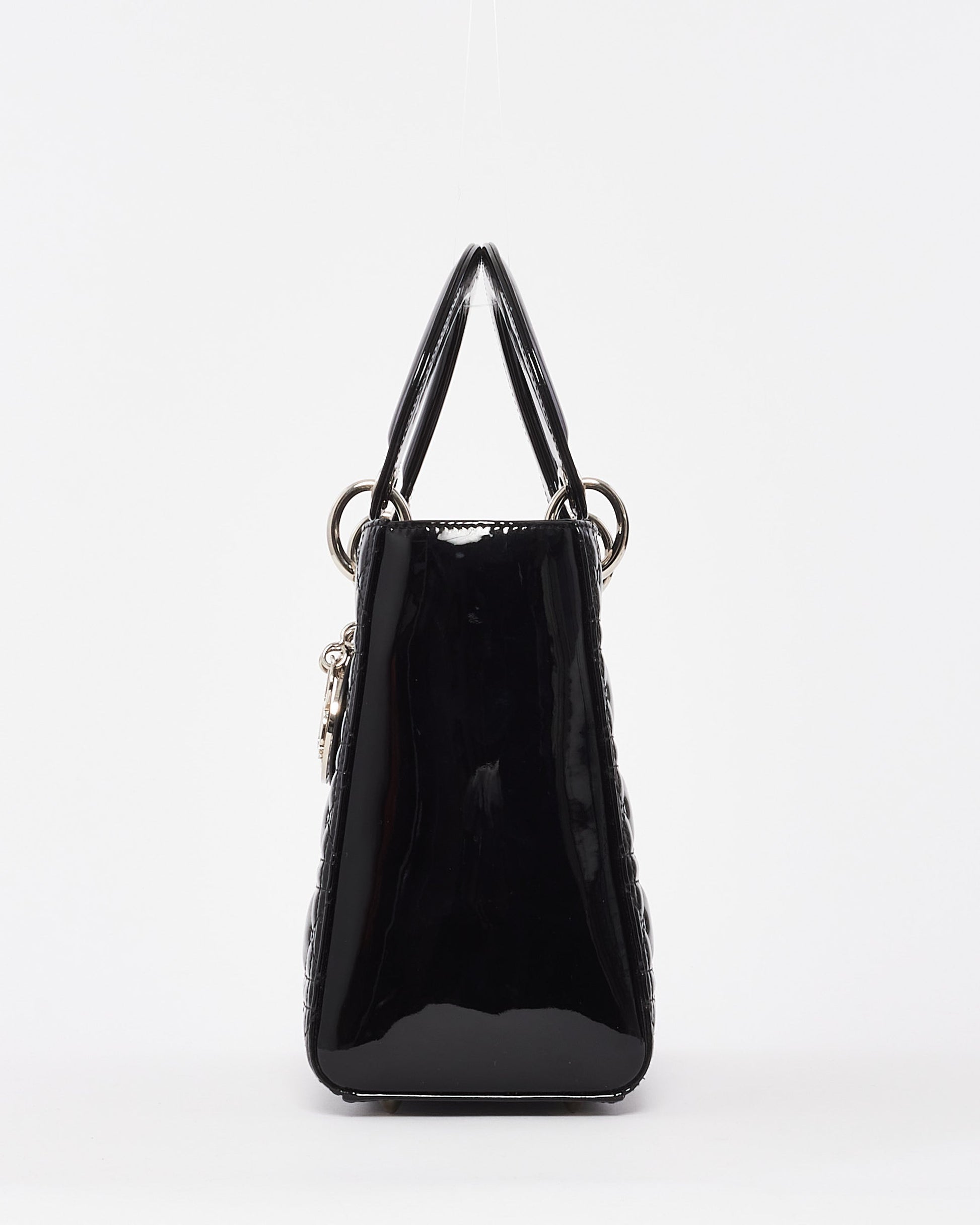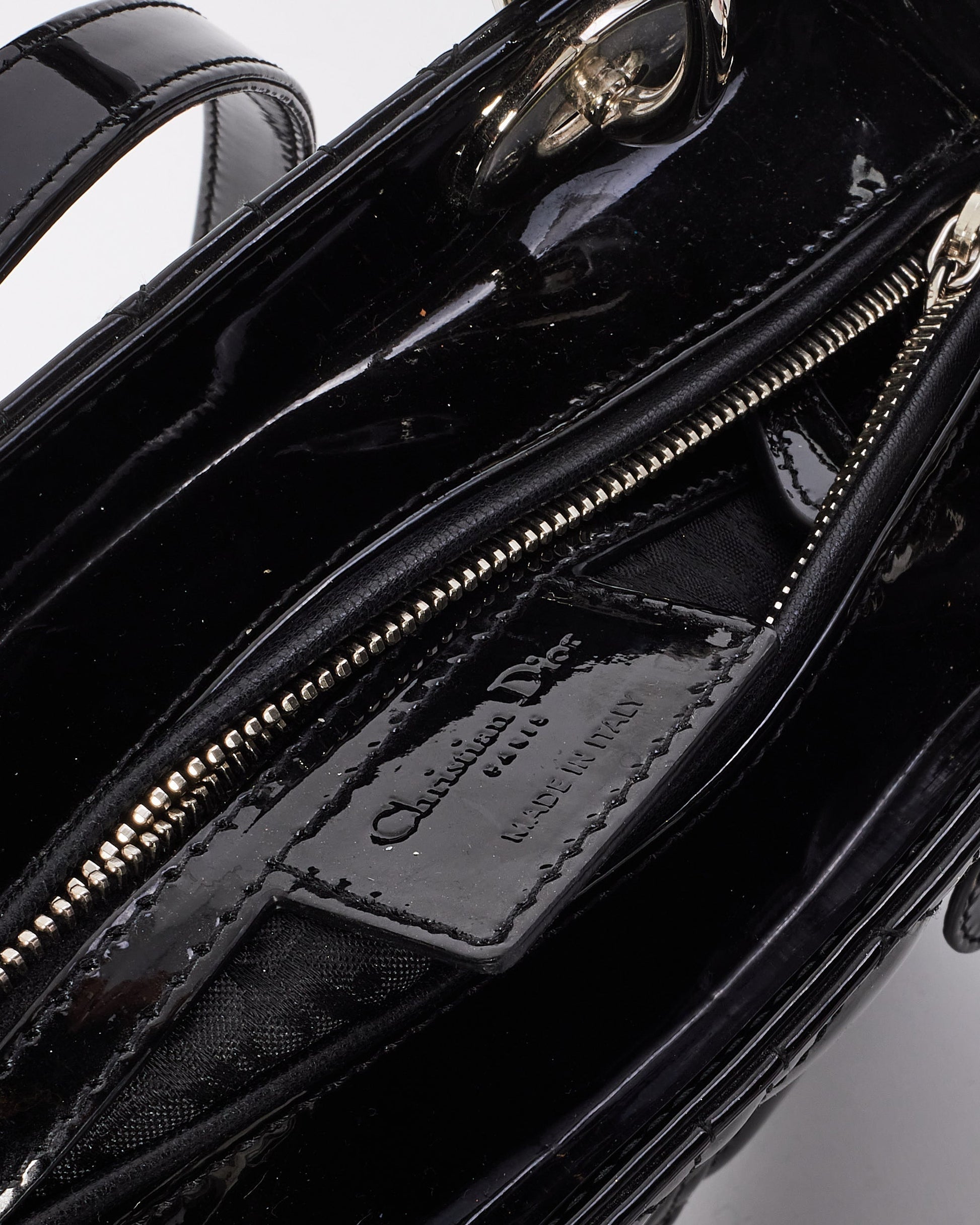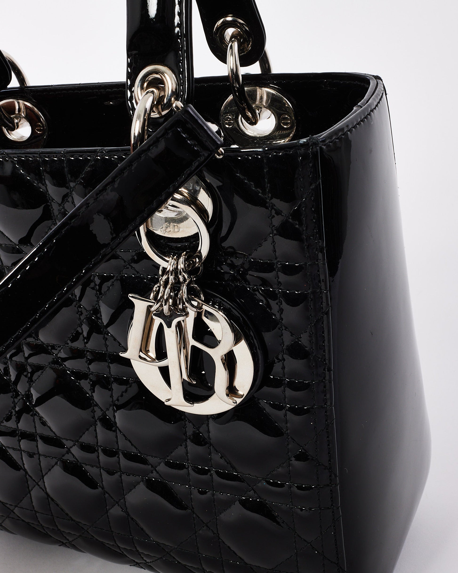 Dior Black Cannage Patent Leather Medium Lady Dior Bag