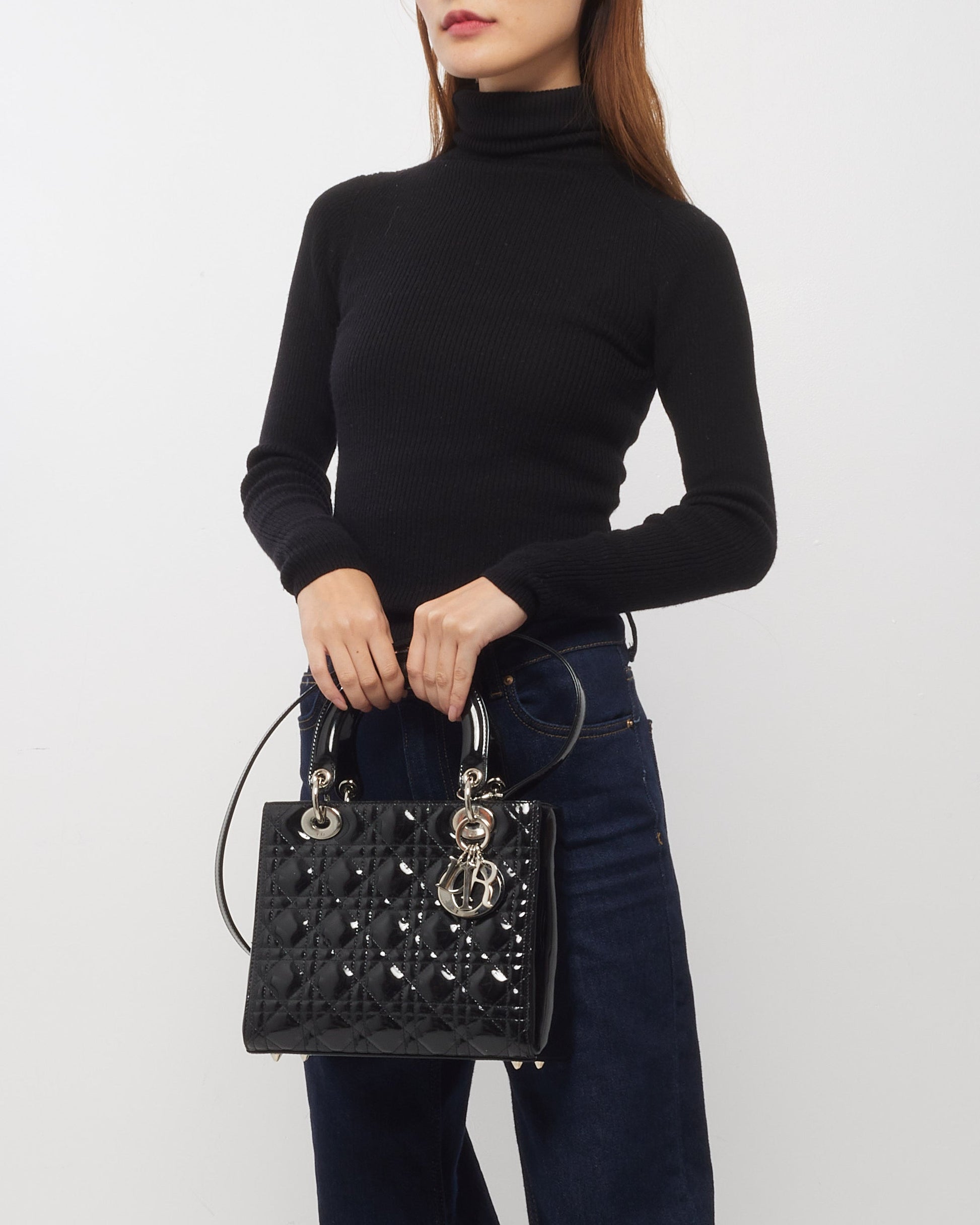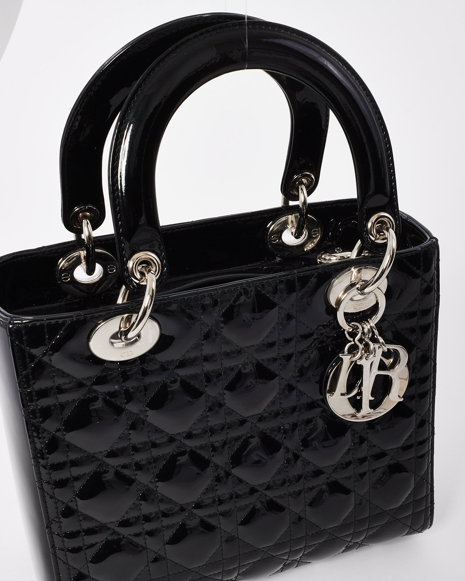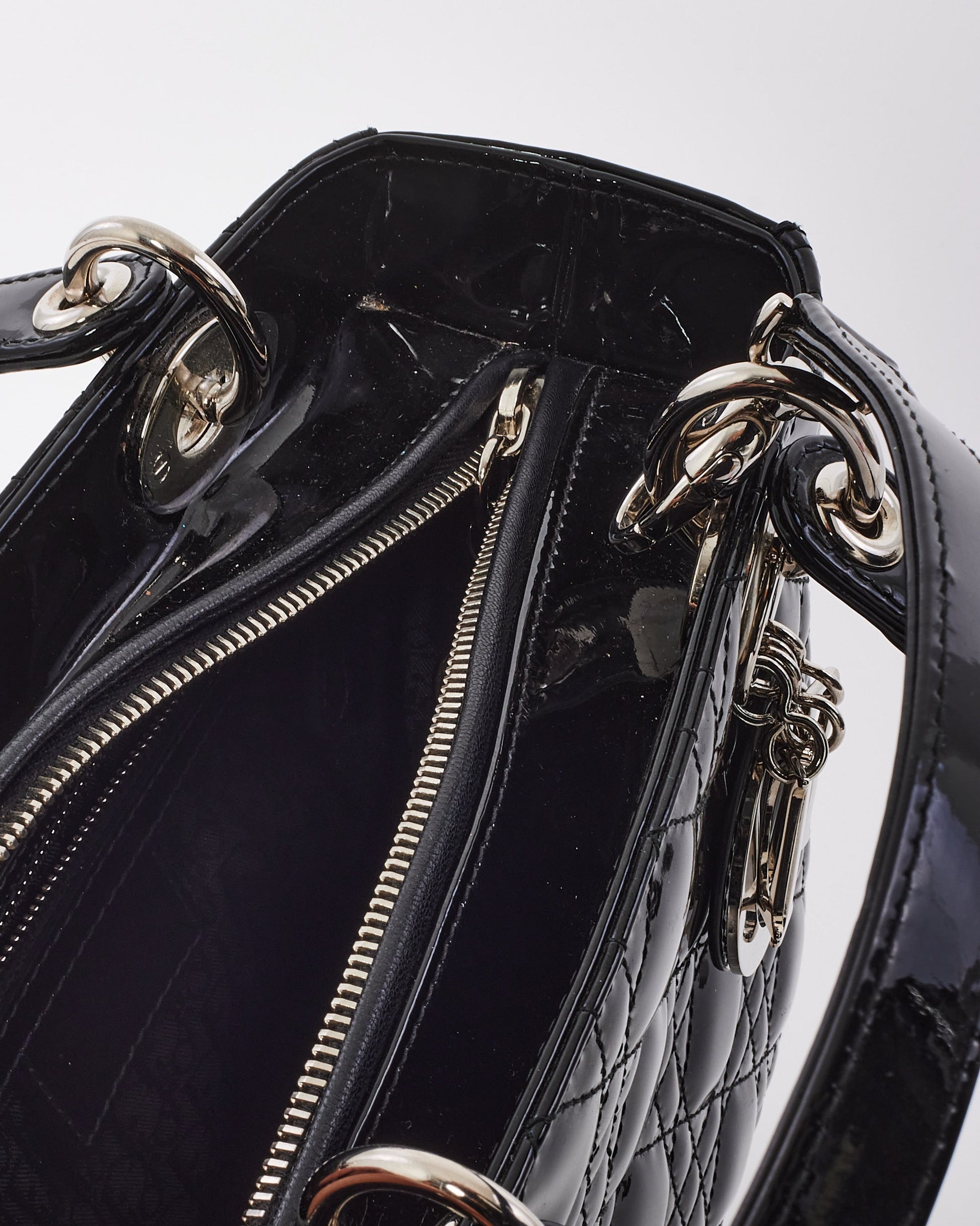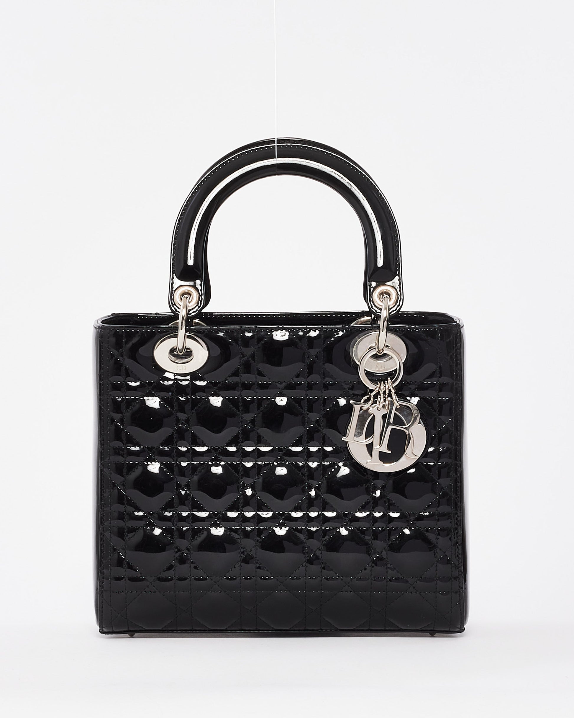 Dior Black Cannage Patent Leather Medium Lady Dior Bag