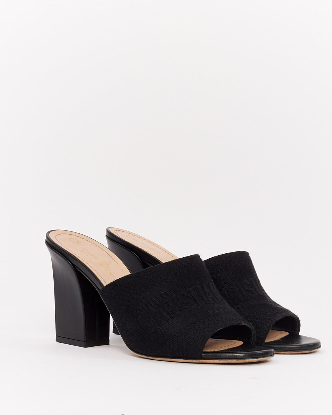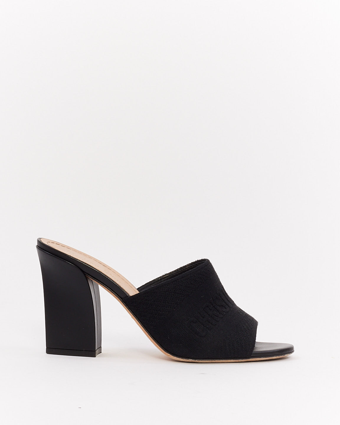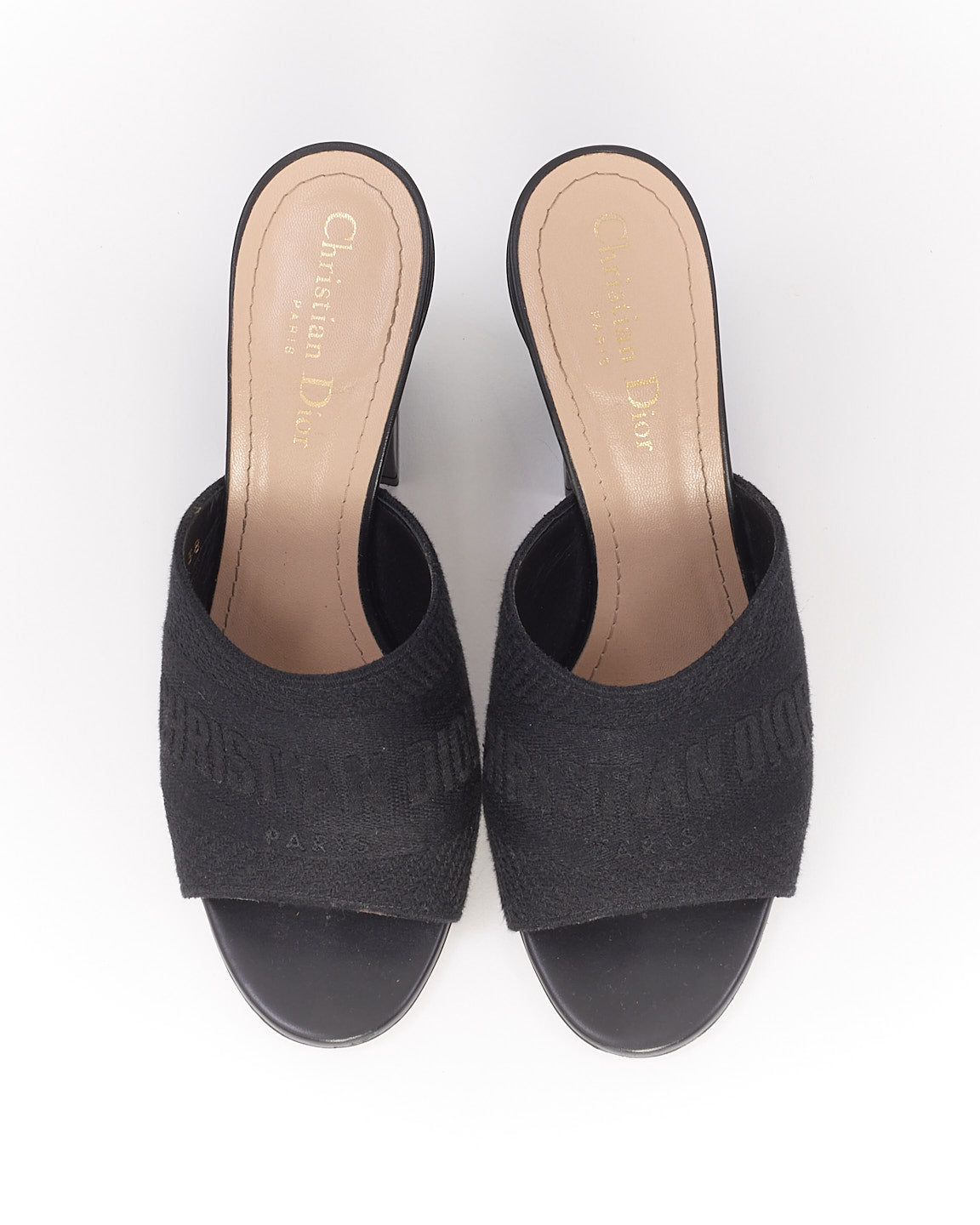 Dior Black Canvas Embroidered Dway Mule Heeled Sandals - 38