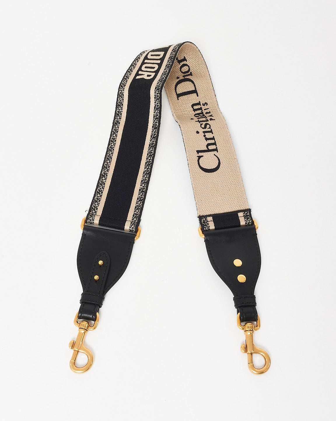 Dior Black & Cream Logo Embroidered Guitar Strap