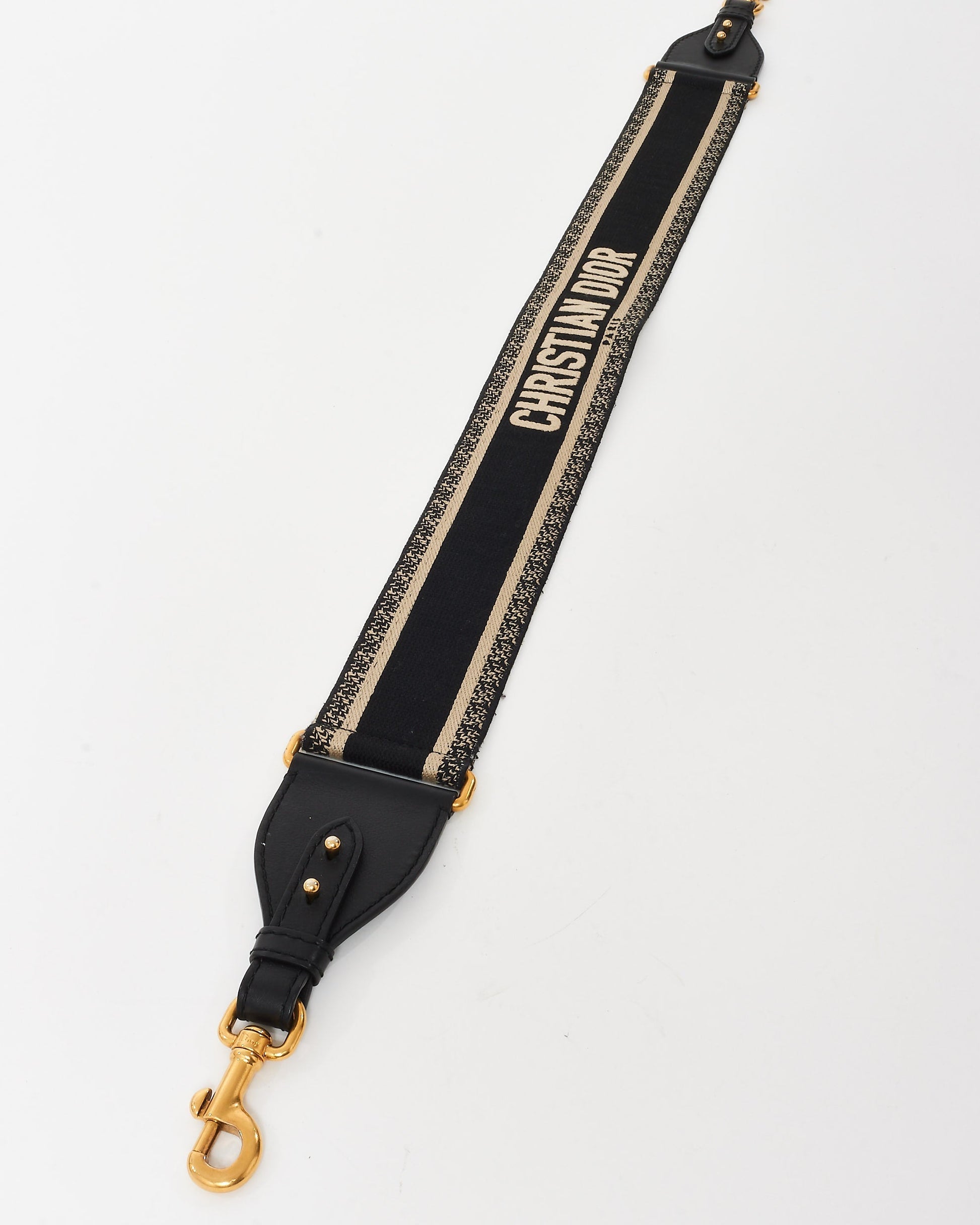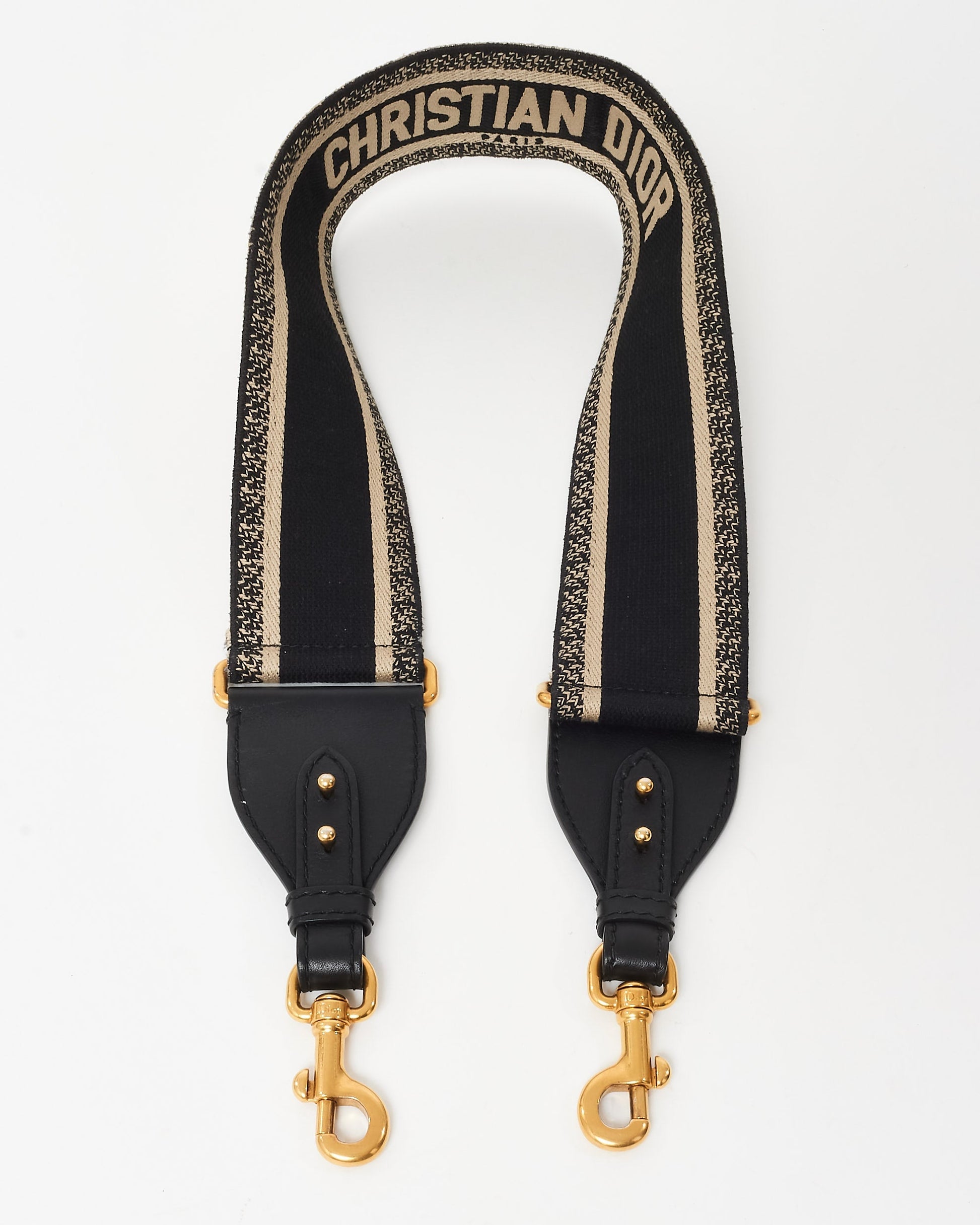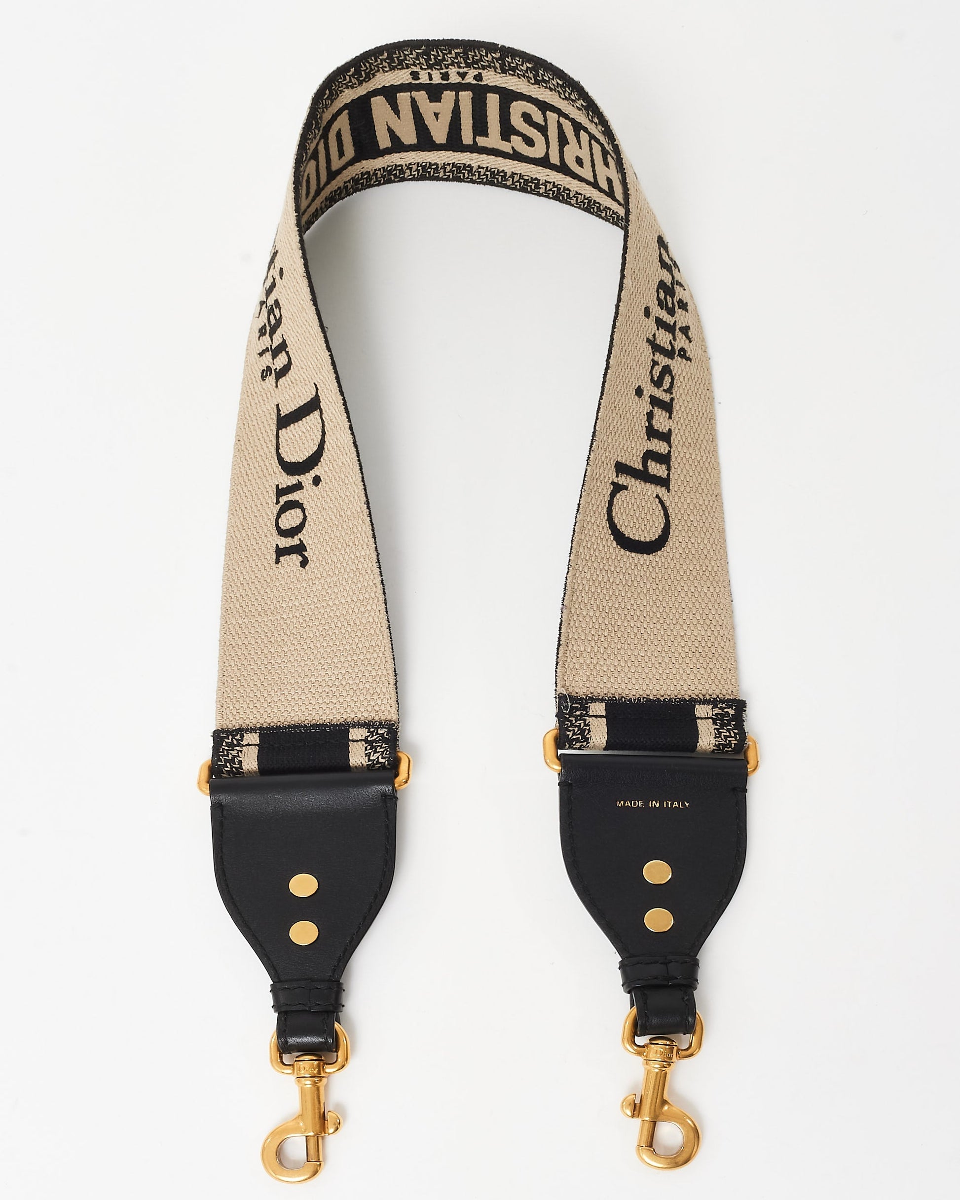 Dior Black & Ecru Logo Embroidered Guitar Strap
