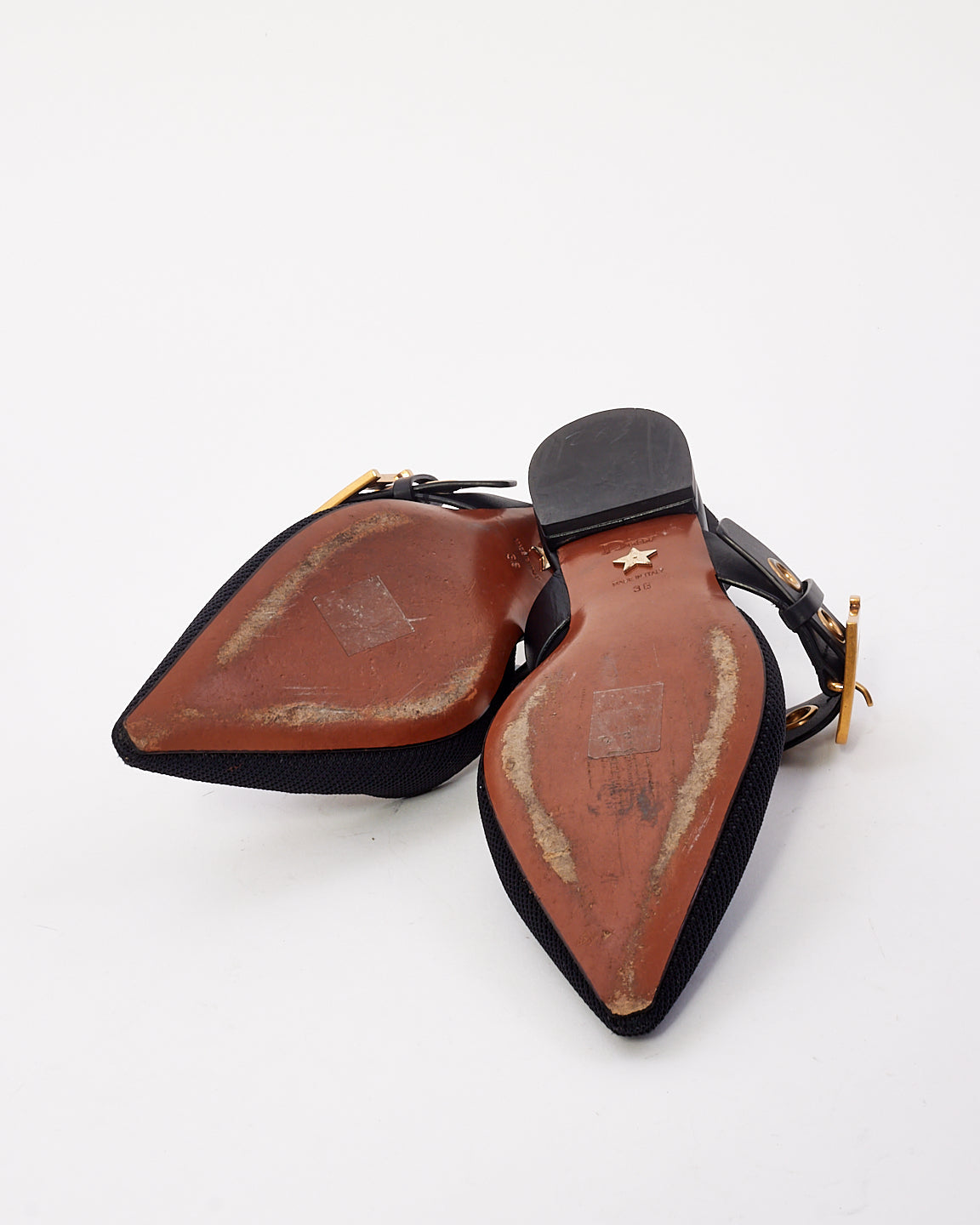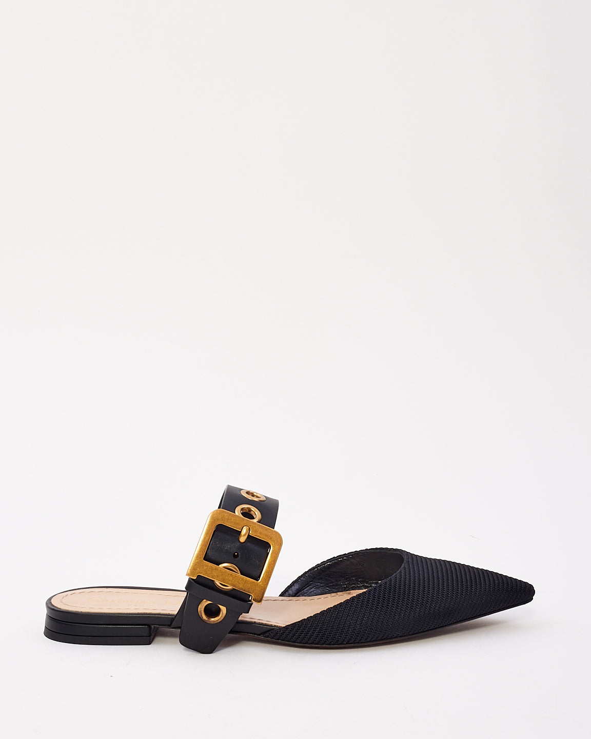 Dior Black Fabric D Buckle Point Toe Flats - 38