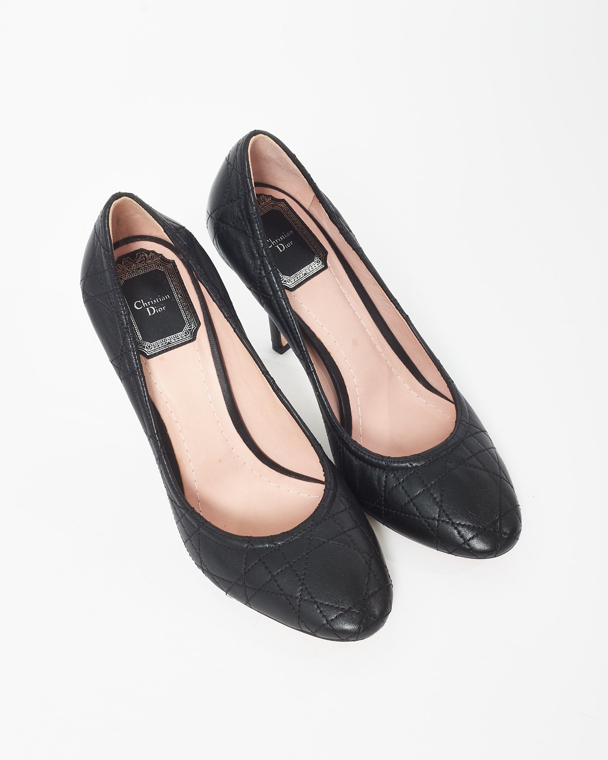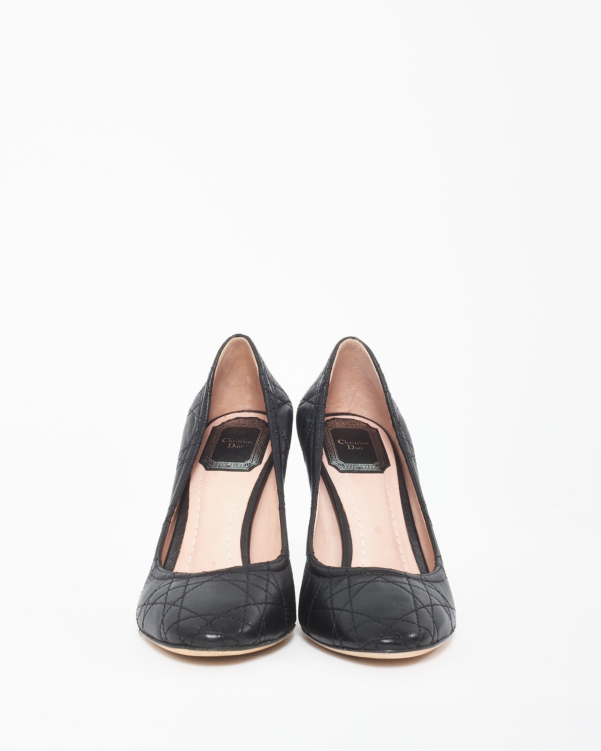 Dior Black Lamsbkin Leather Cannage Pumps - 36.5