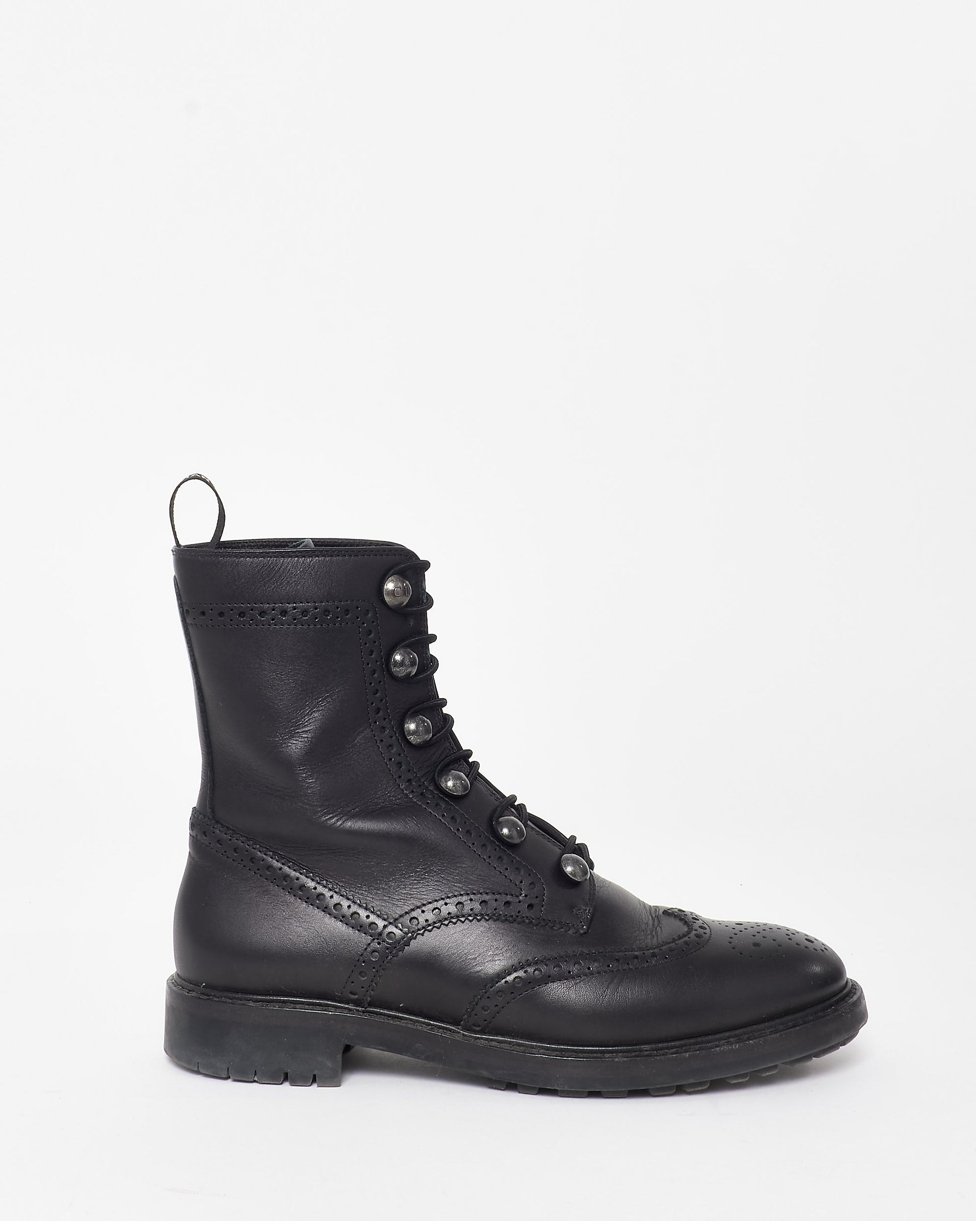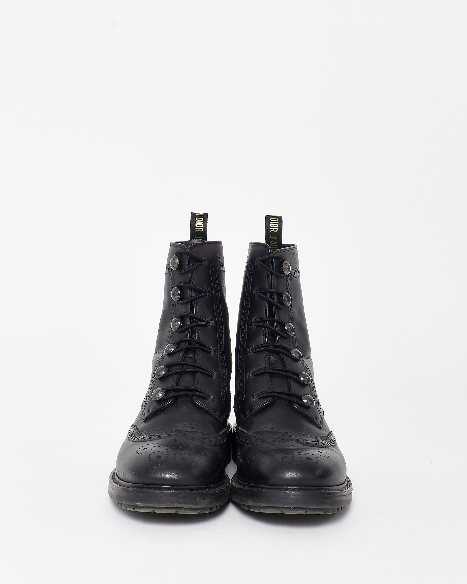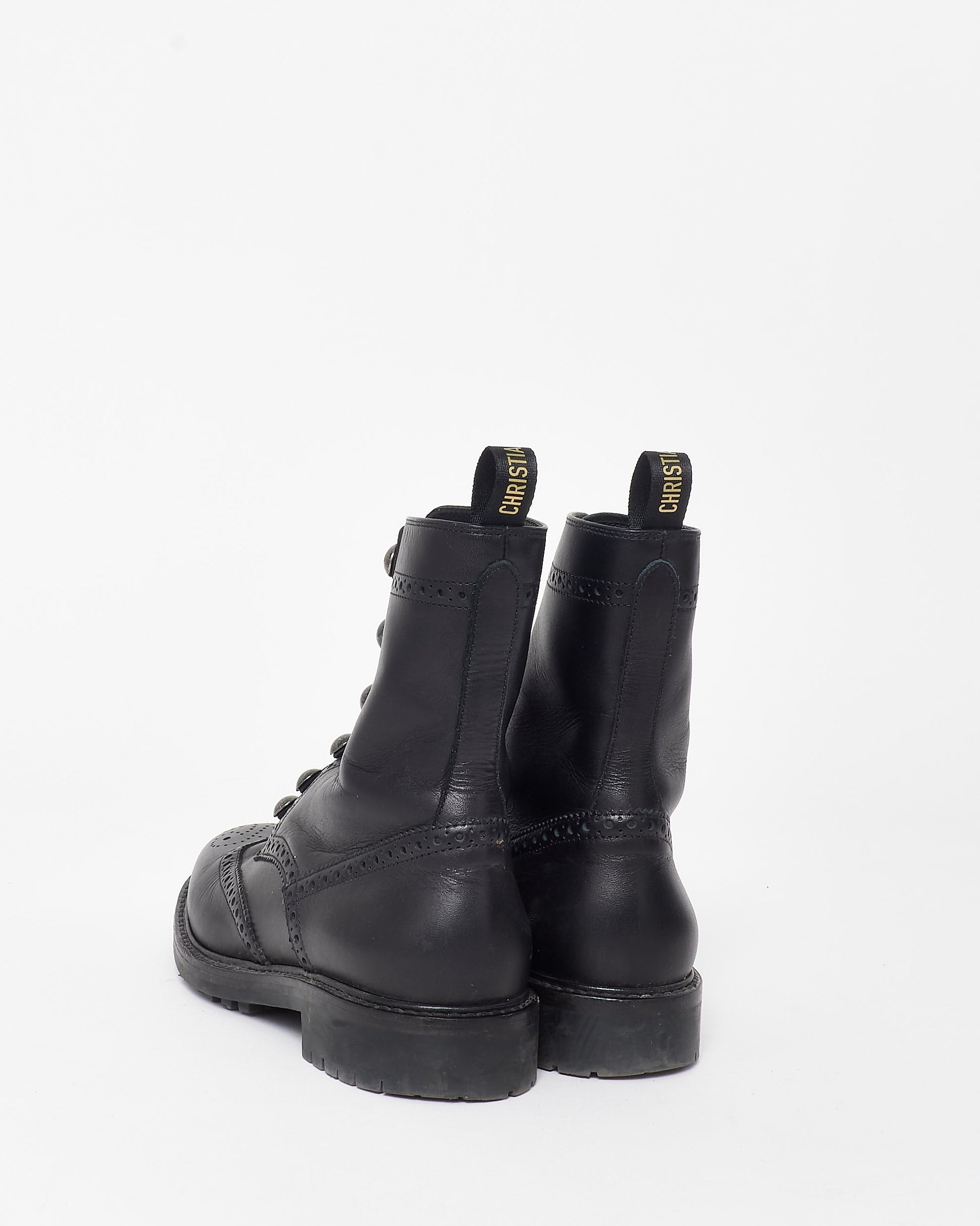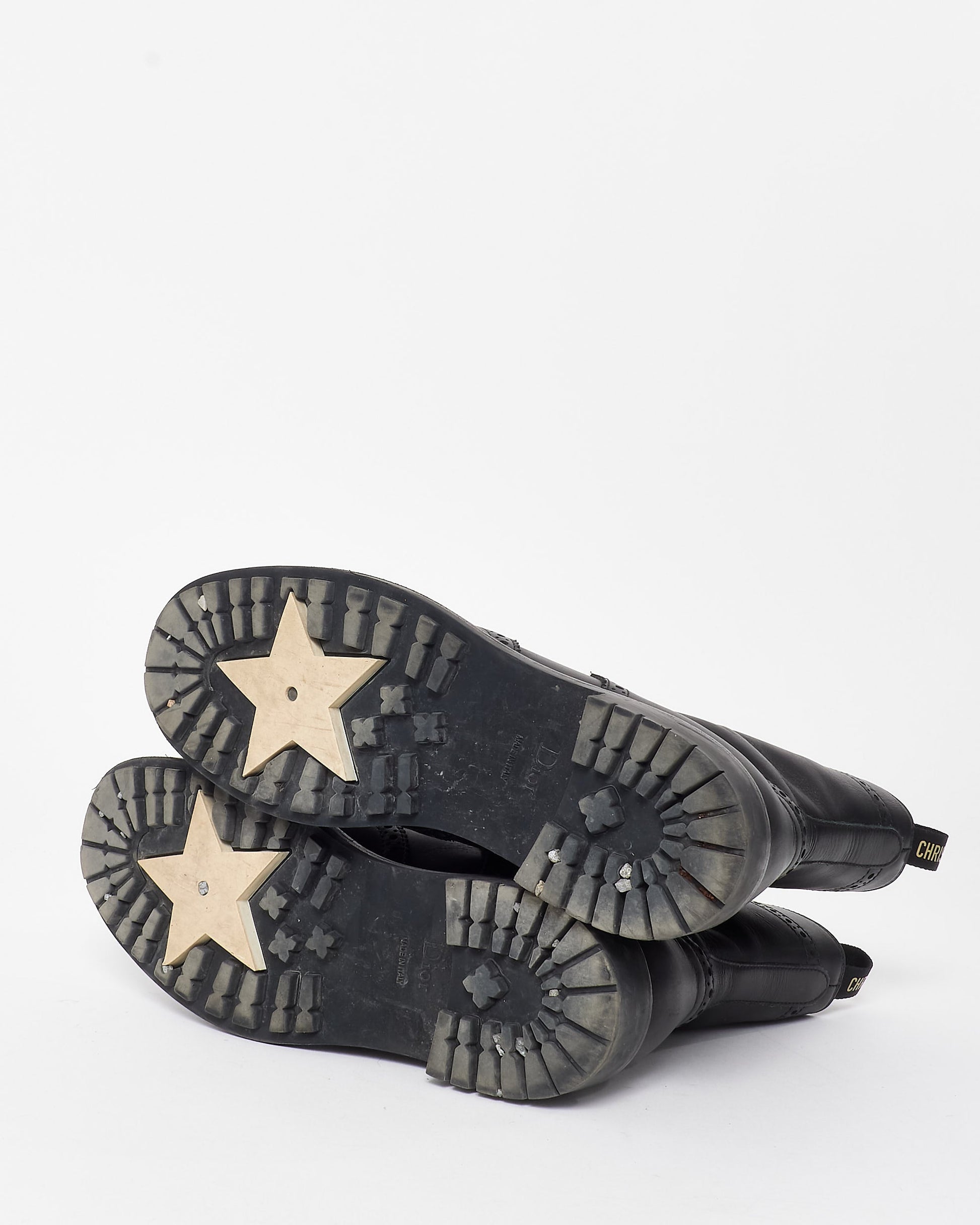 Dior Black Leather Diorunit Combat Boots - 38.5
