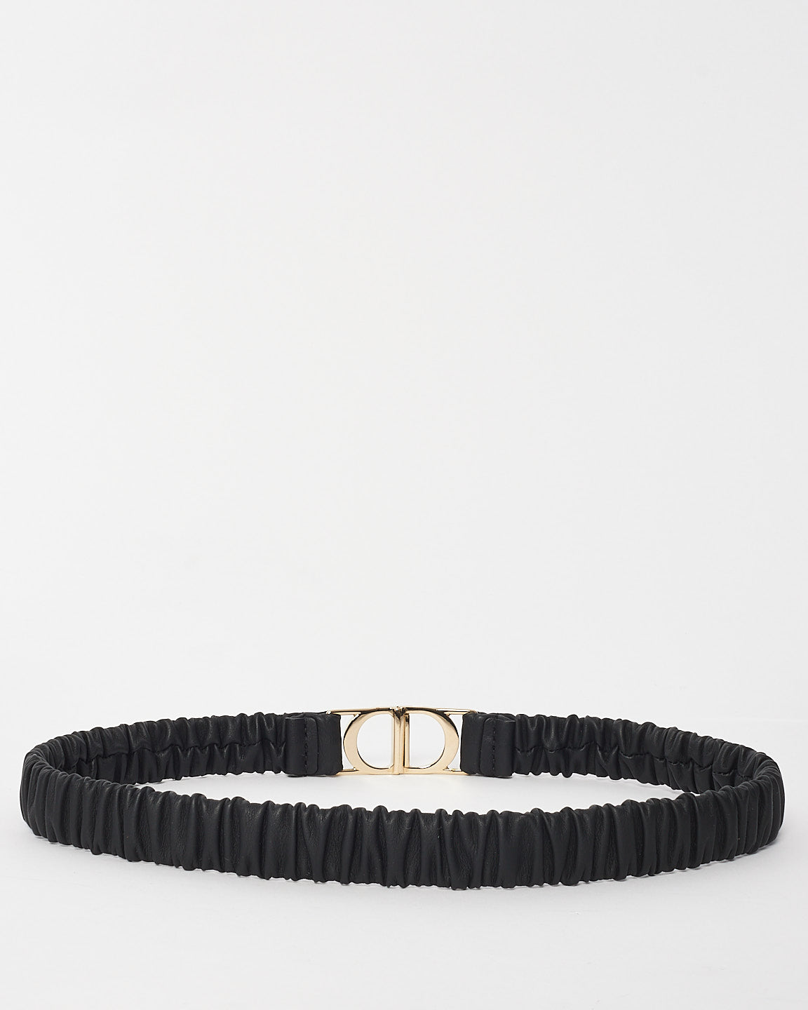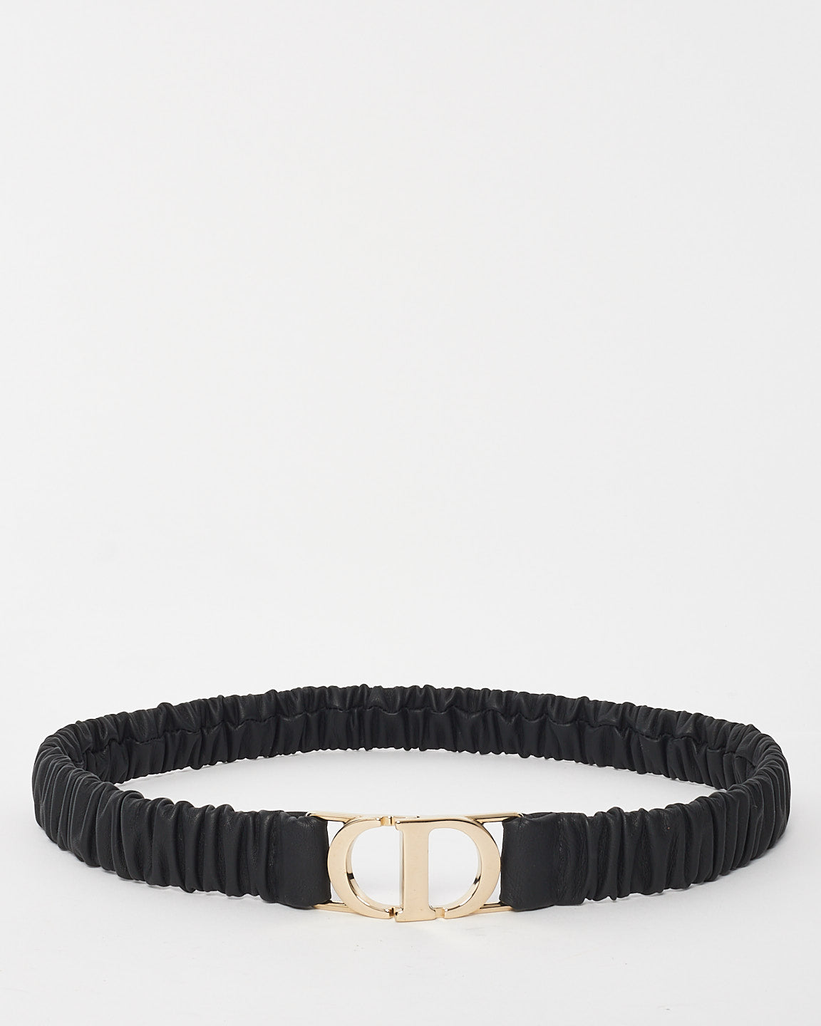 Dior Black Ruched Leather Elastic Logo Waist Belt