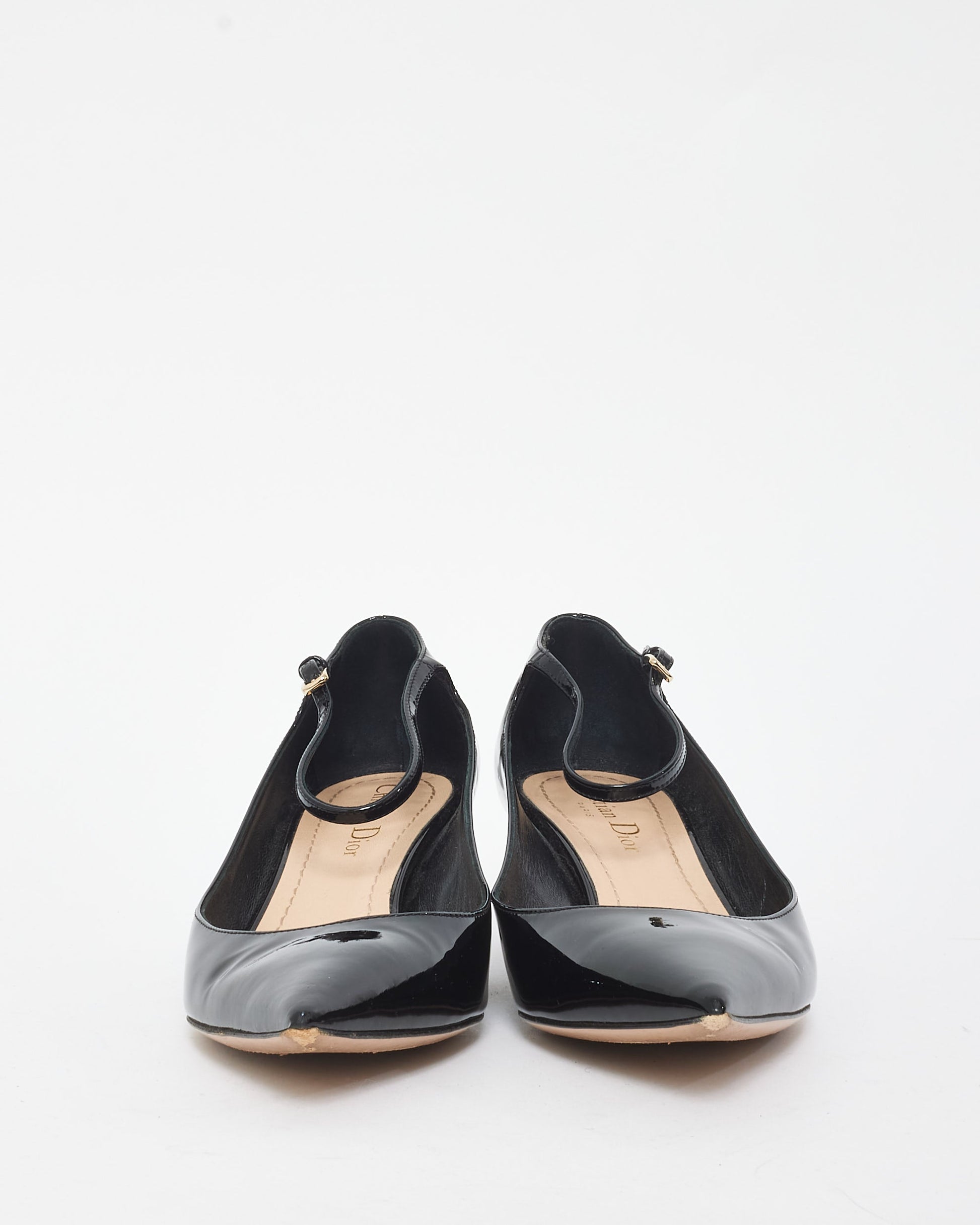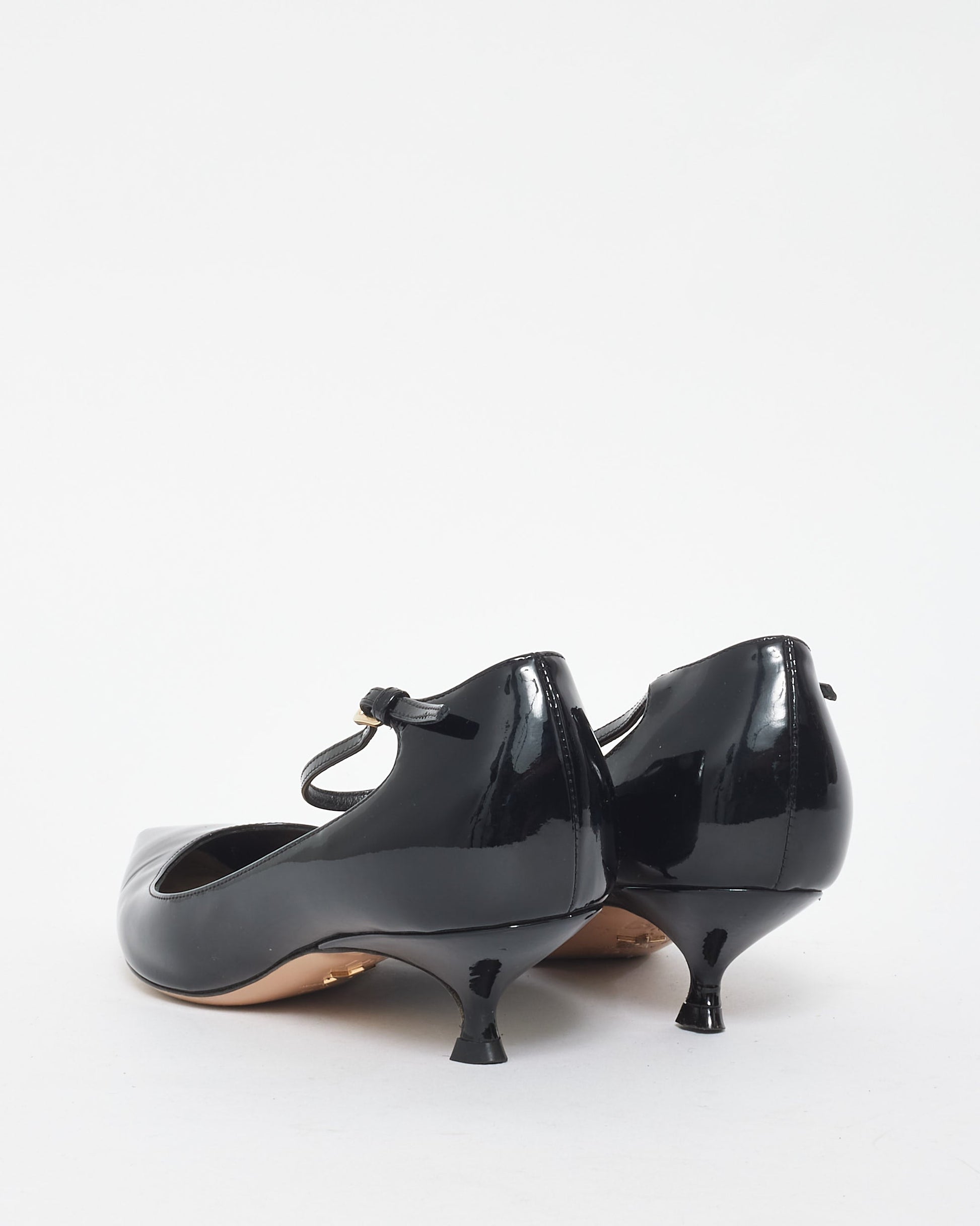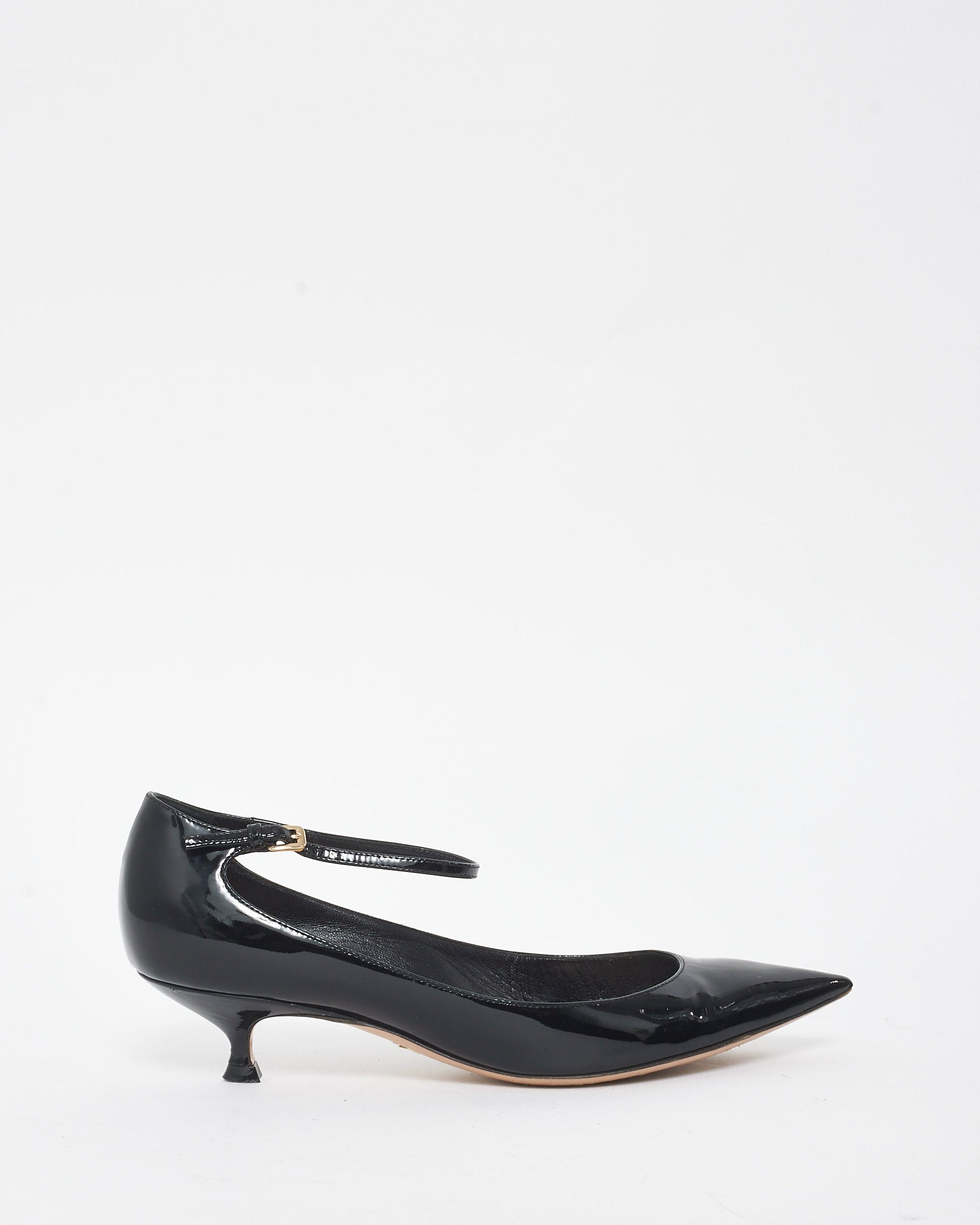Dior Black Patent Leather Ankle Strap Kitten Heels - 36.5
