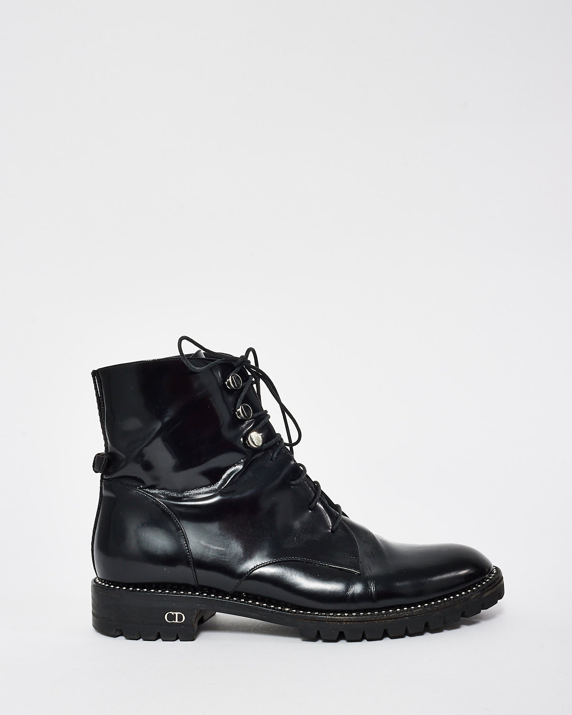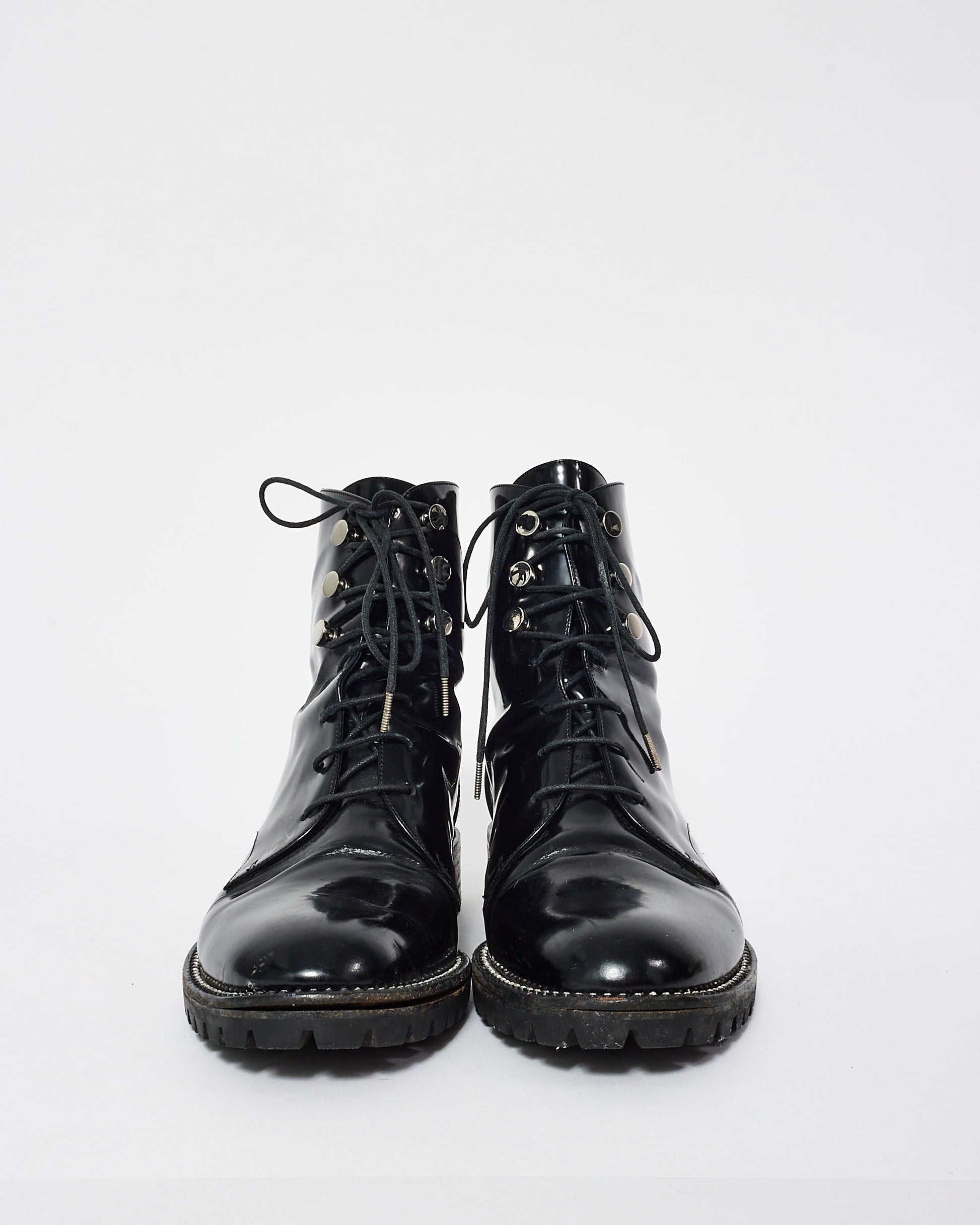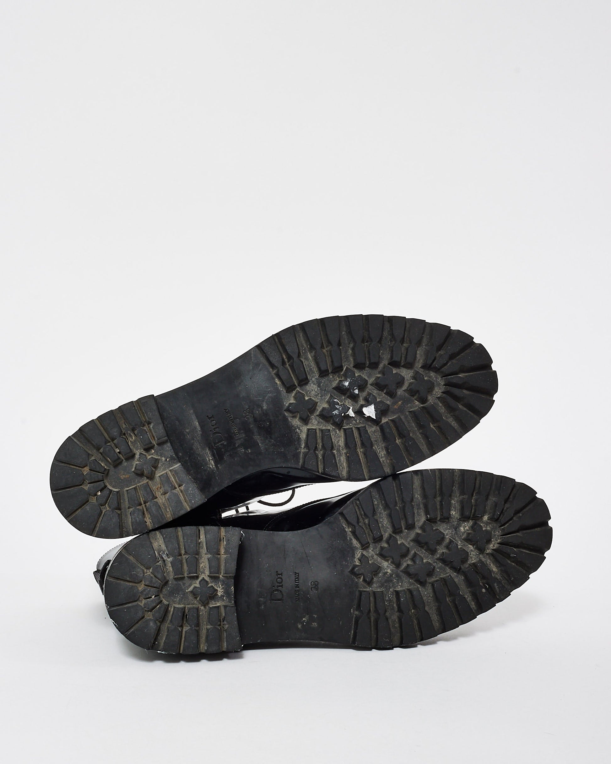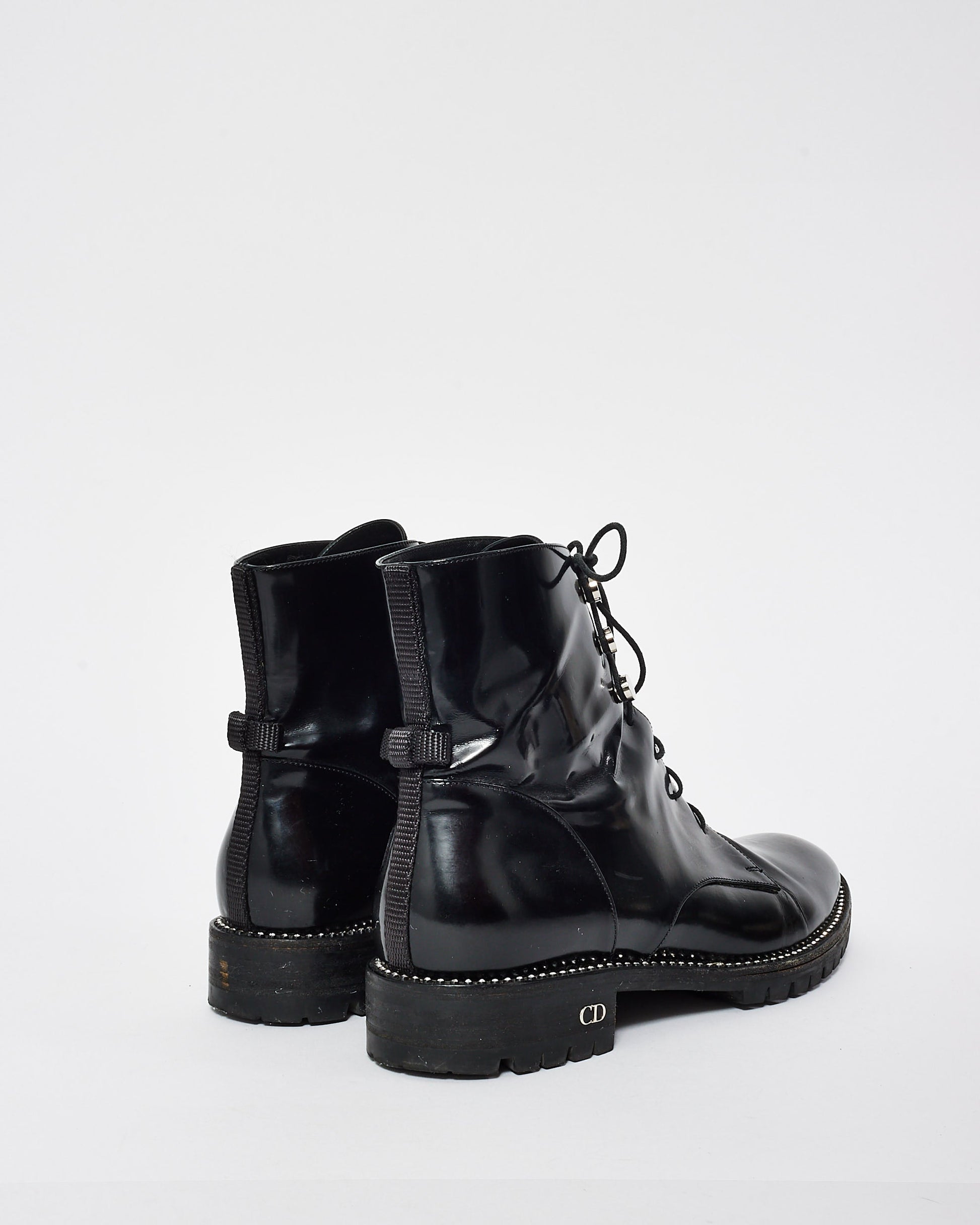 Dior Black Patent Leather Combat Rebelle Boots - 38