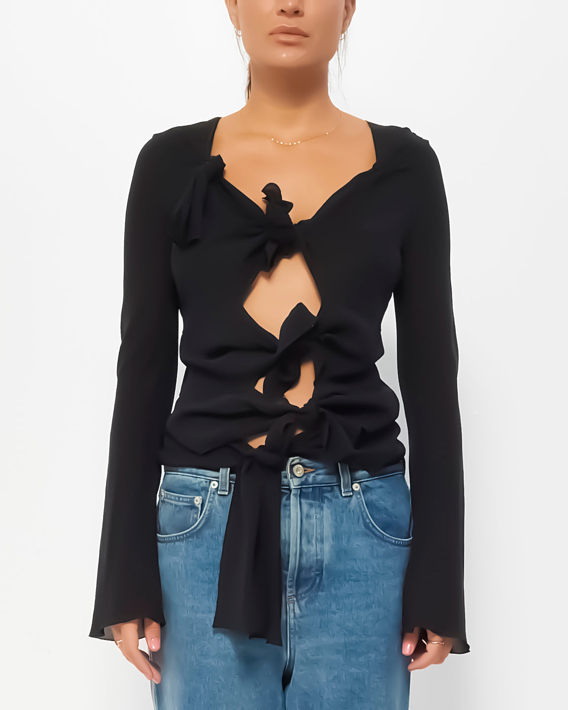 Dior Vintage Black Chiffon Wrap Around Top - 40