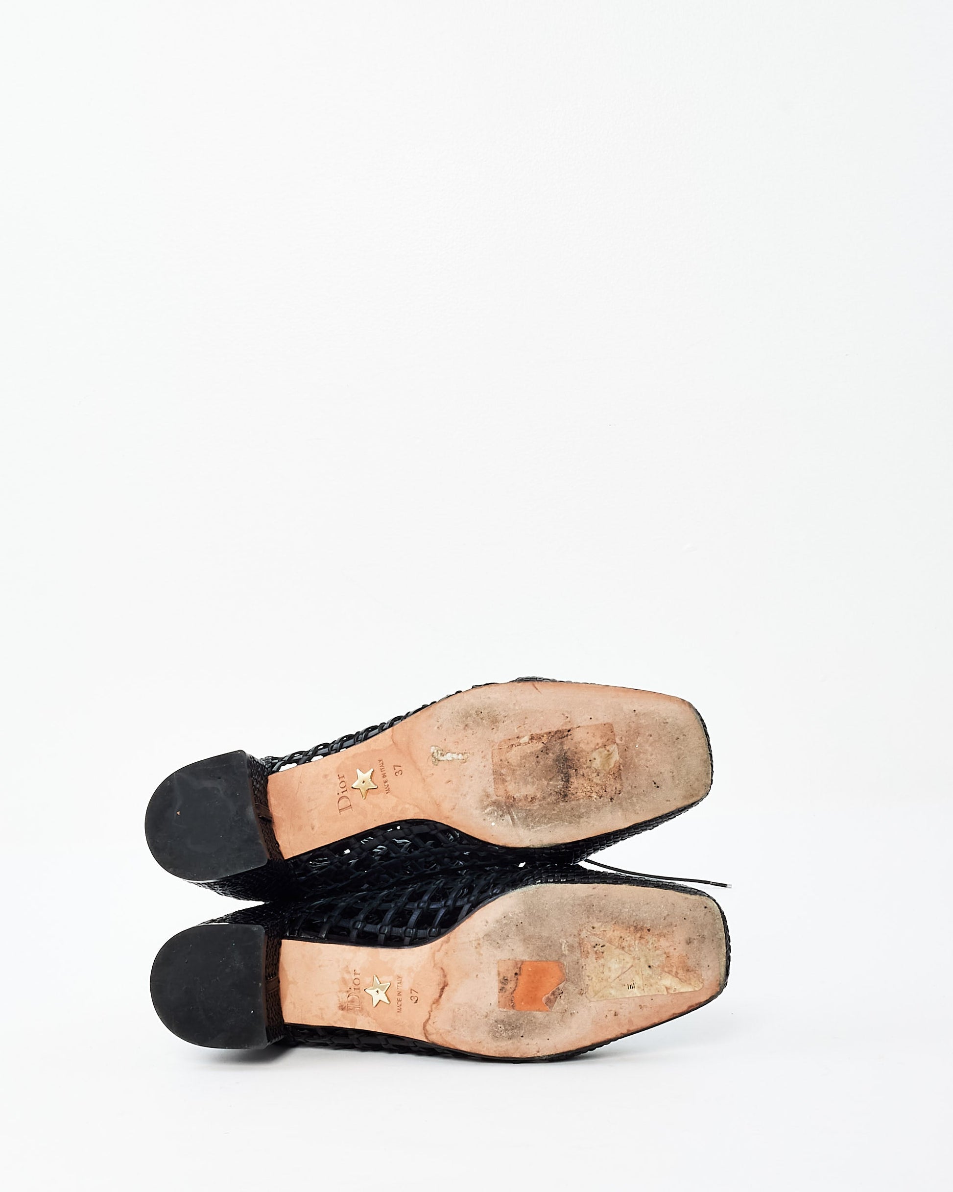 Dior Black Woven Leather Naughtily-D Fishnet Lace Up Boots - 37