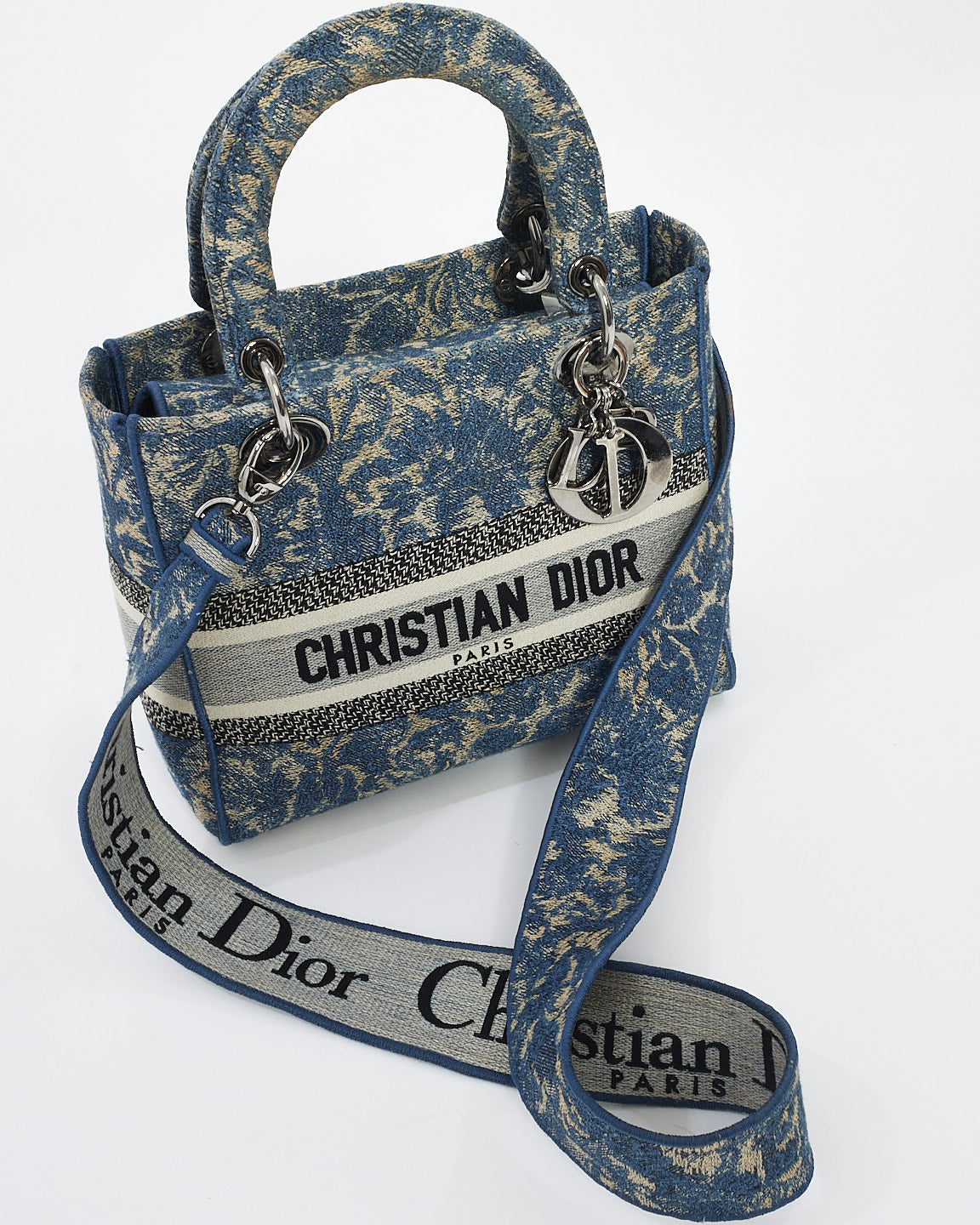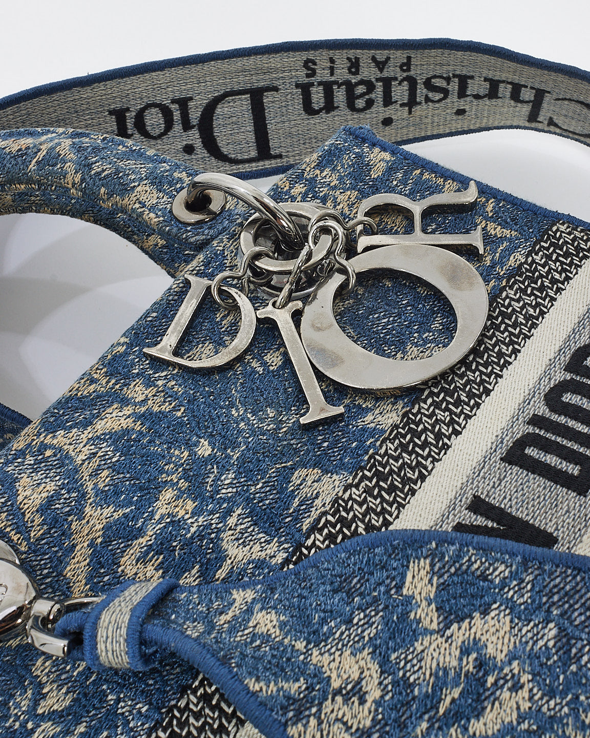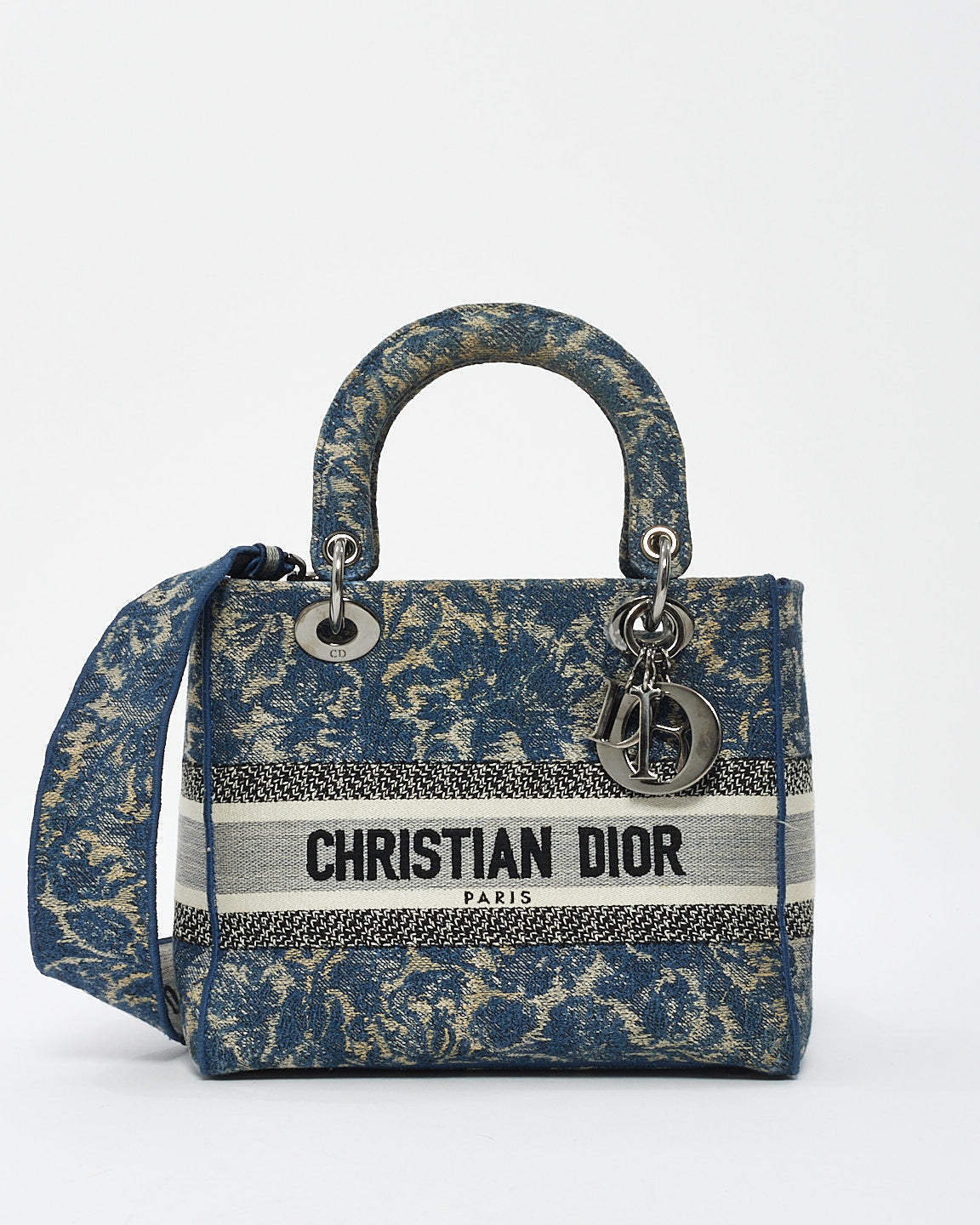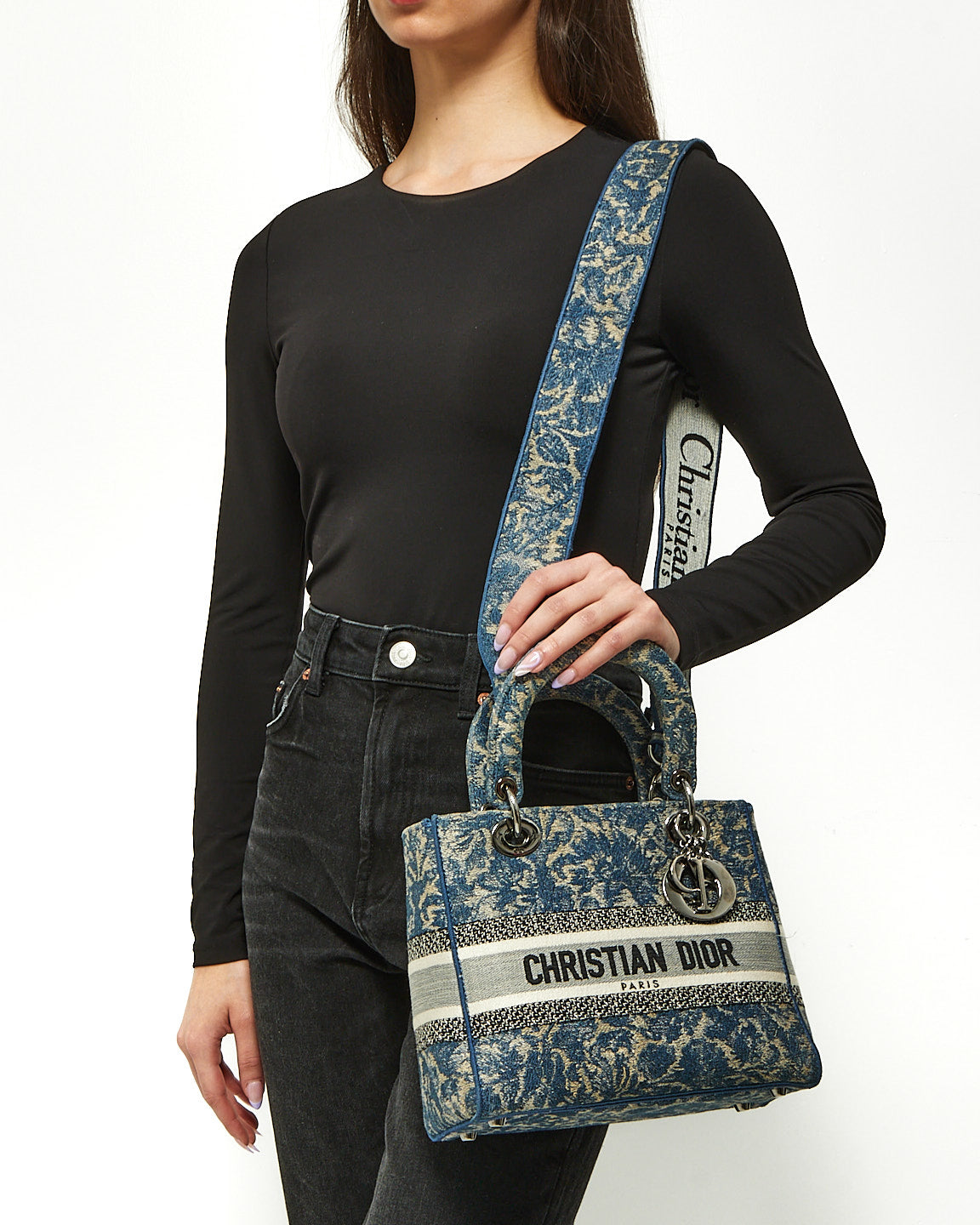 Dior Blue Denim Jardin Magique Embroidery Canvas Medium Lady D-Lite Bag