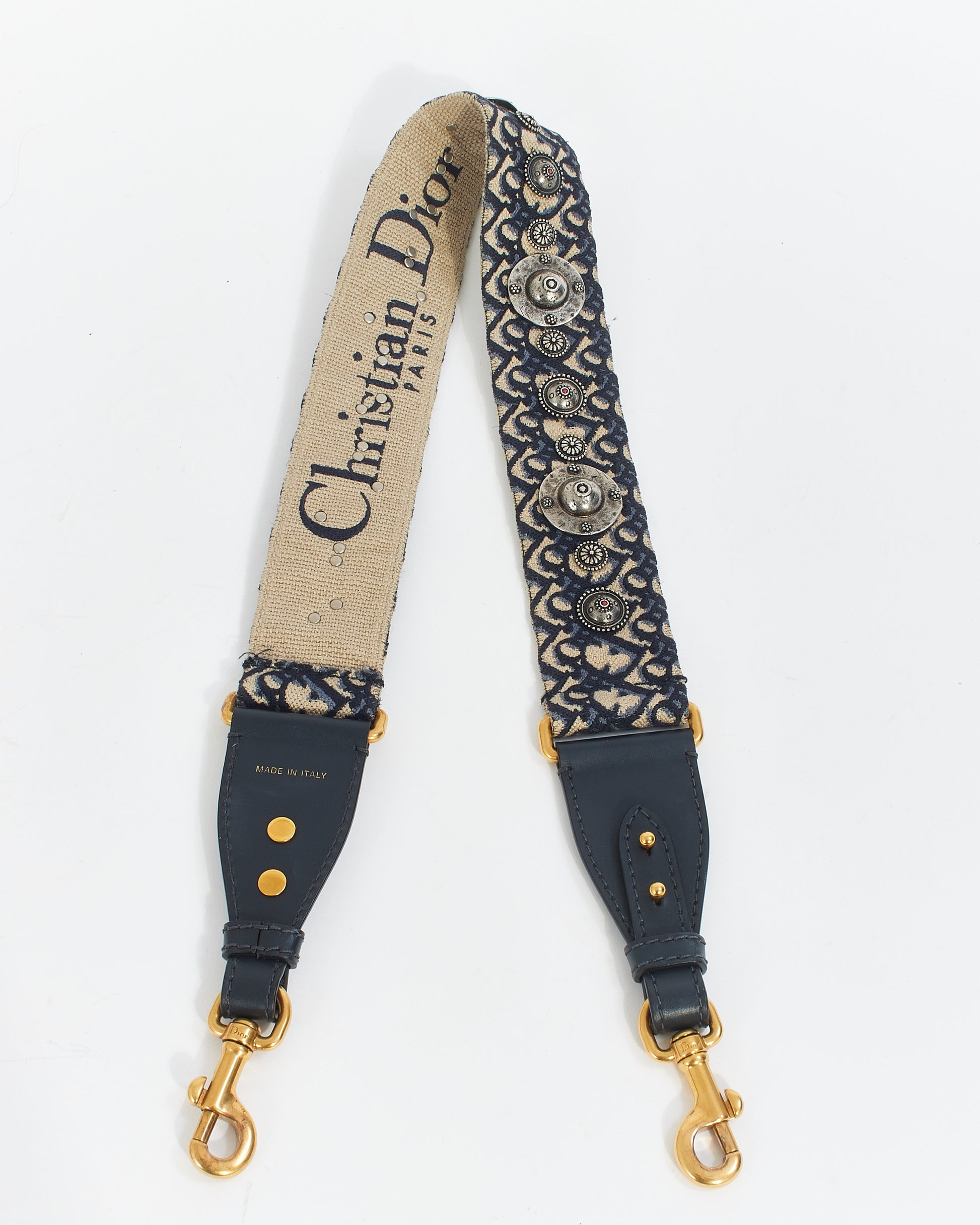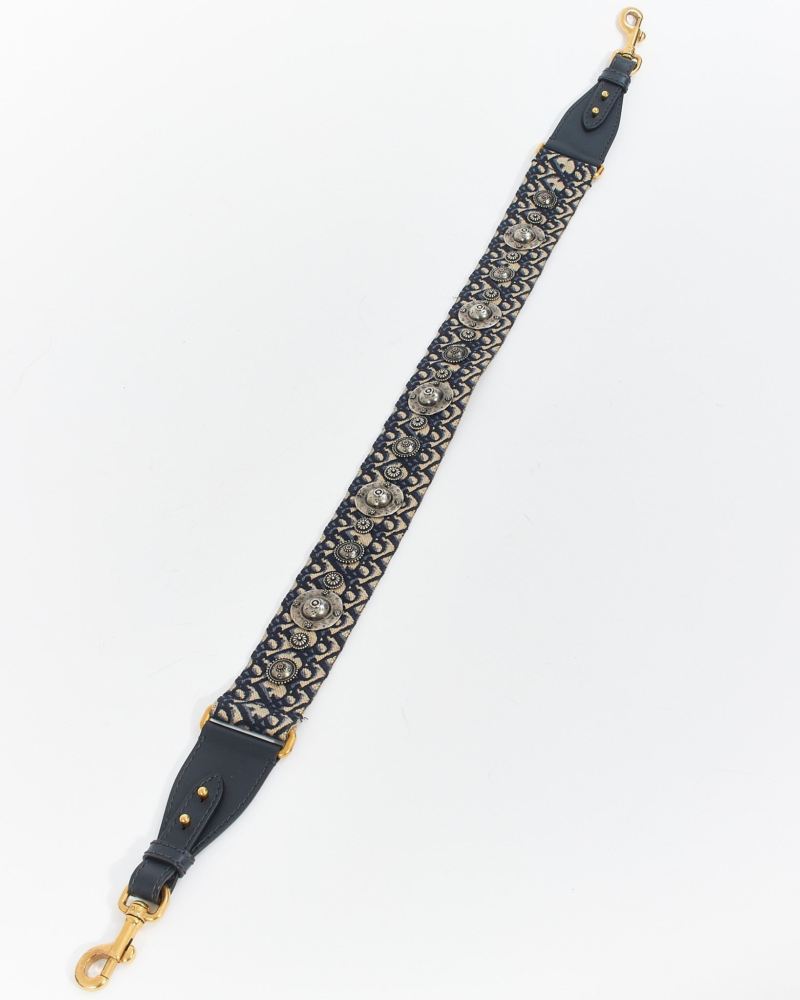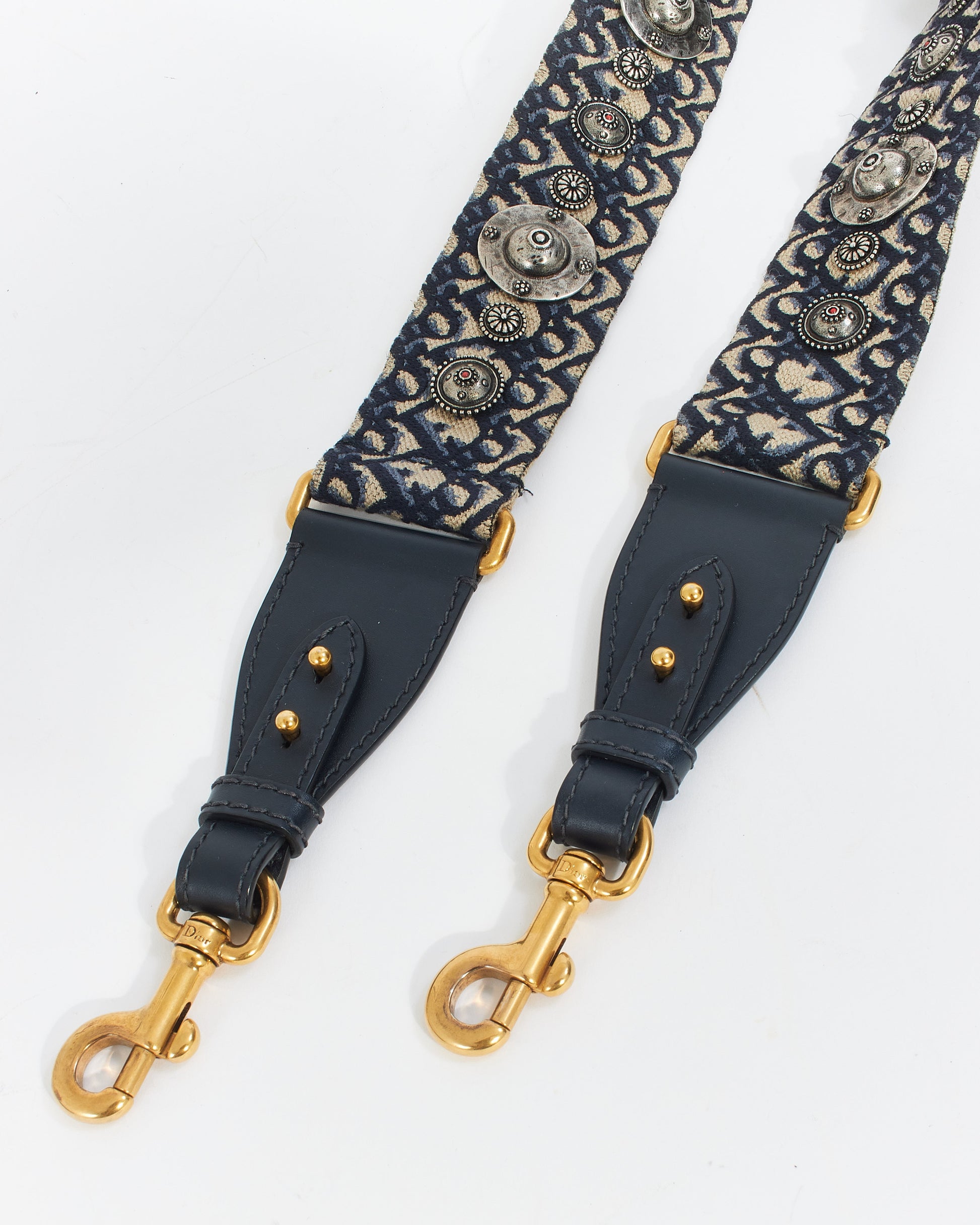Dior Blue Canvas Oblique Embroidery Medallion Strap with Ring