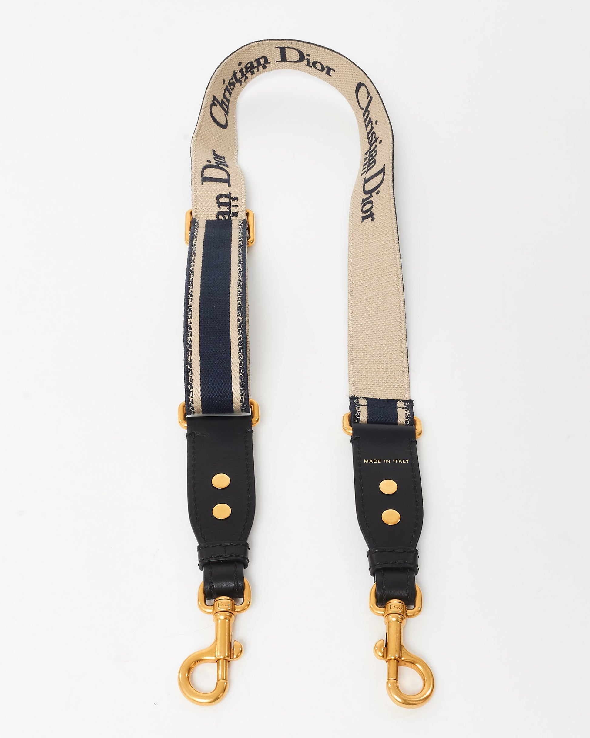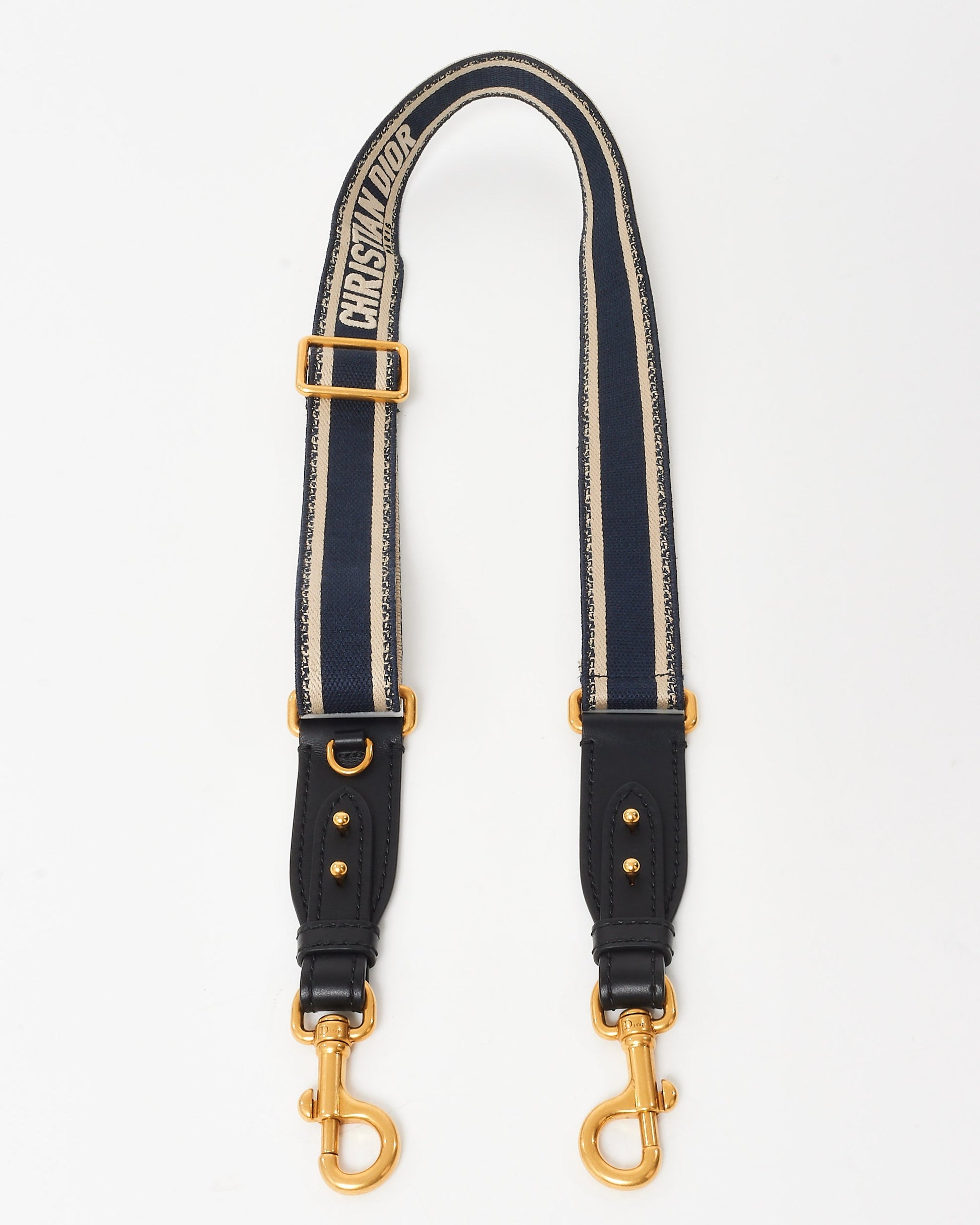 Dior Blue Christian Dior Paris Embroidery Adjustable Shoulder Strap with Ring