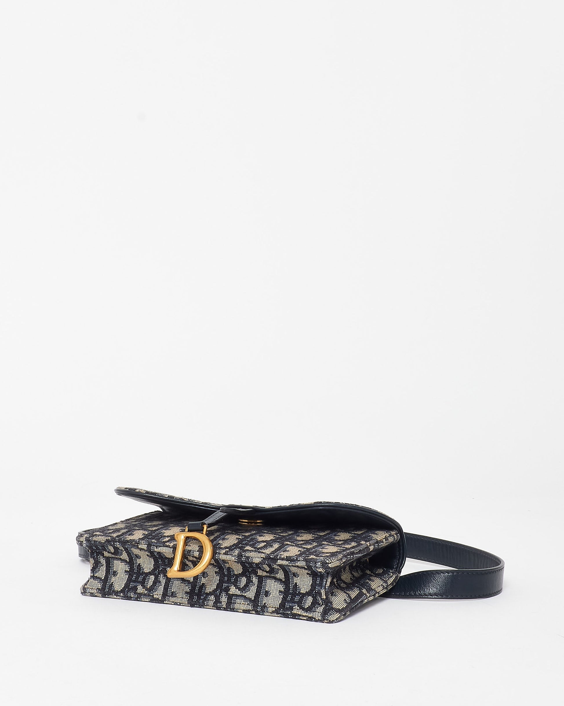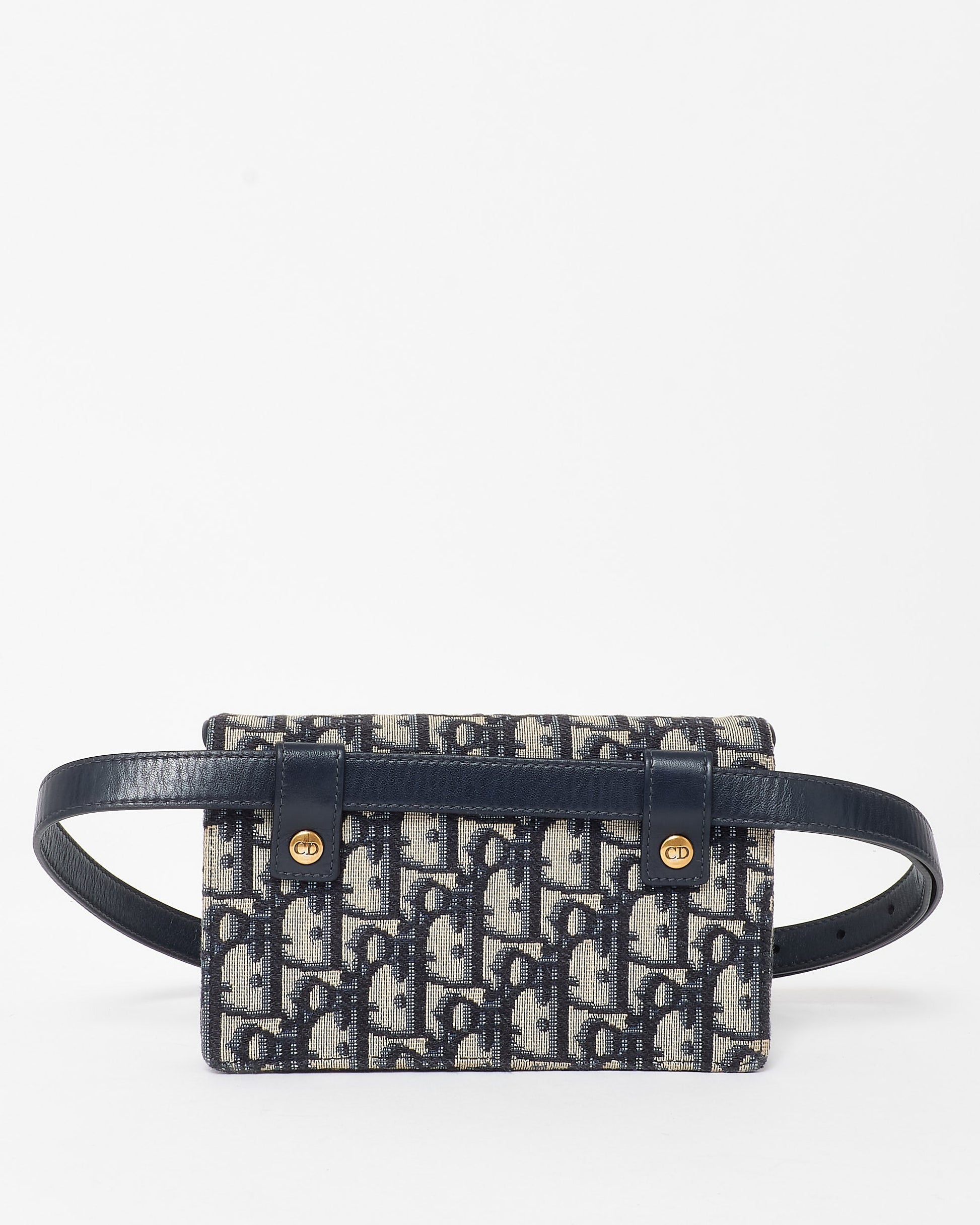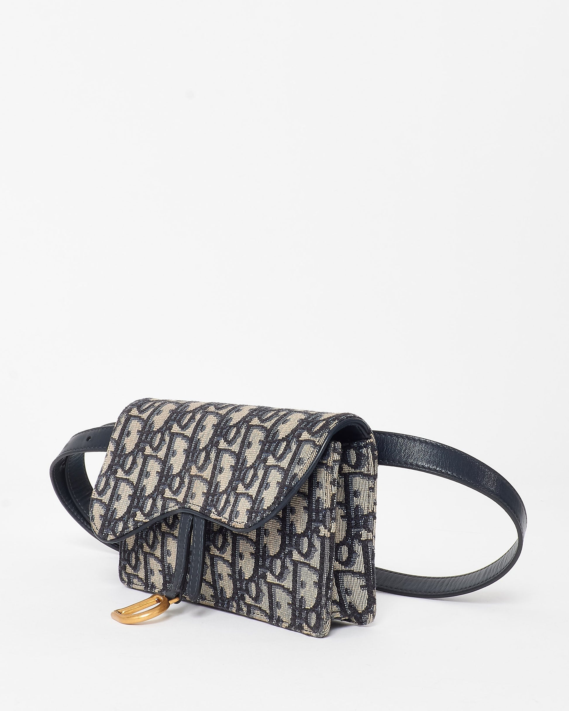 This Dior Blue Oblique Canvas Belt Bag is a stylish and functional accessory that showcases Diors signature Oblique pattern. Crafted from durable blue canvas, this belt bag combines luxury and practicality, making it a perfect choice for hands-free convenience. The adjustable belt strap allows for versatile styling options, whether worn around the waist, across the body, or over the shoulder. The sleek design and iconic pattern make it a standout piece for any outfit. Blue Oblique canvas with the iconic gold-tone D detailing, compact belt bag with iconic Dior Oblique pattern, adjustable belt strap, flap top closure with interior card slots and zipper pocket. Shop Dior handbags at Retyche.