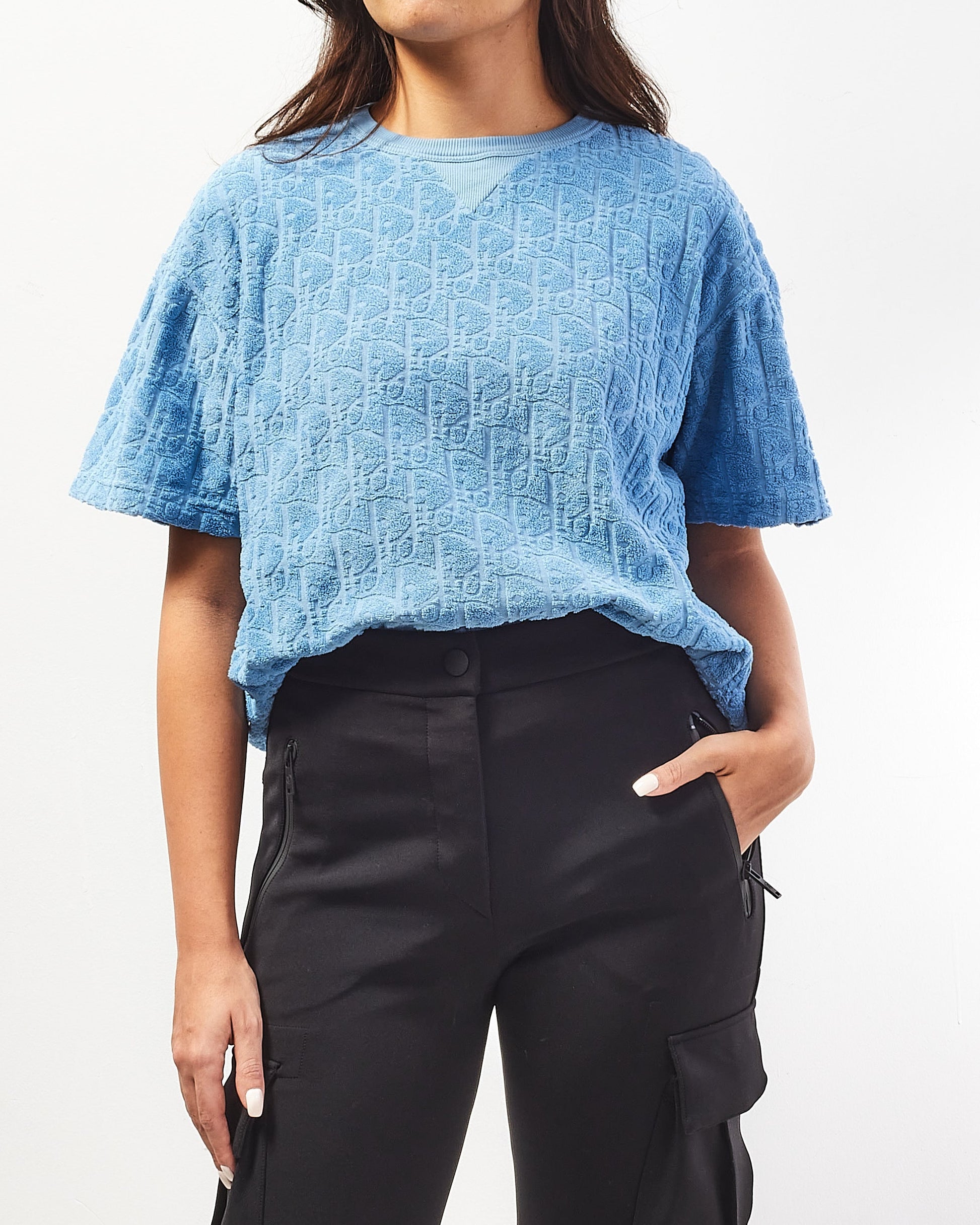 Dior Blue Oblique Monogram Terry Cloth Jacquard T Shirt - S