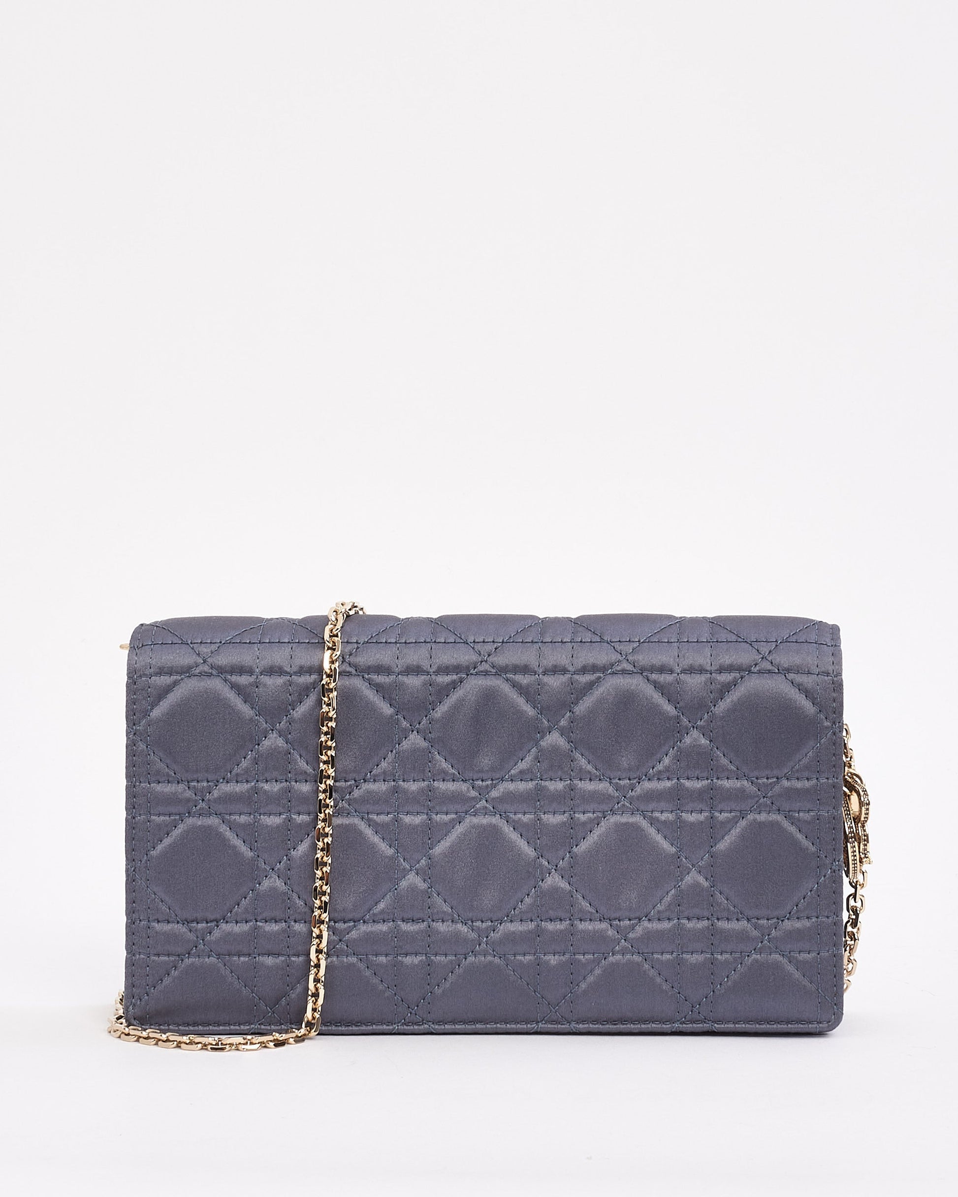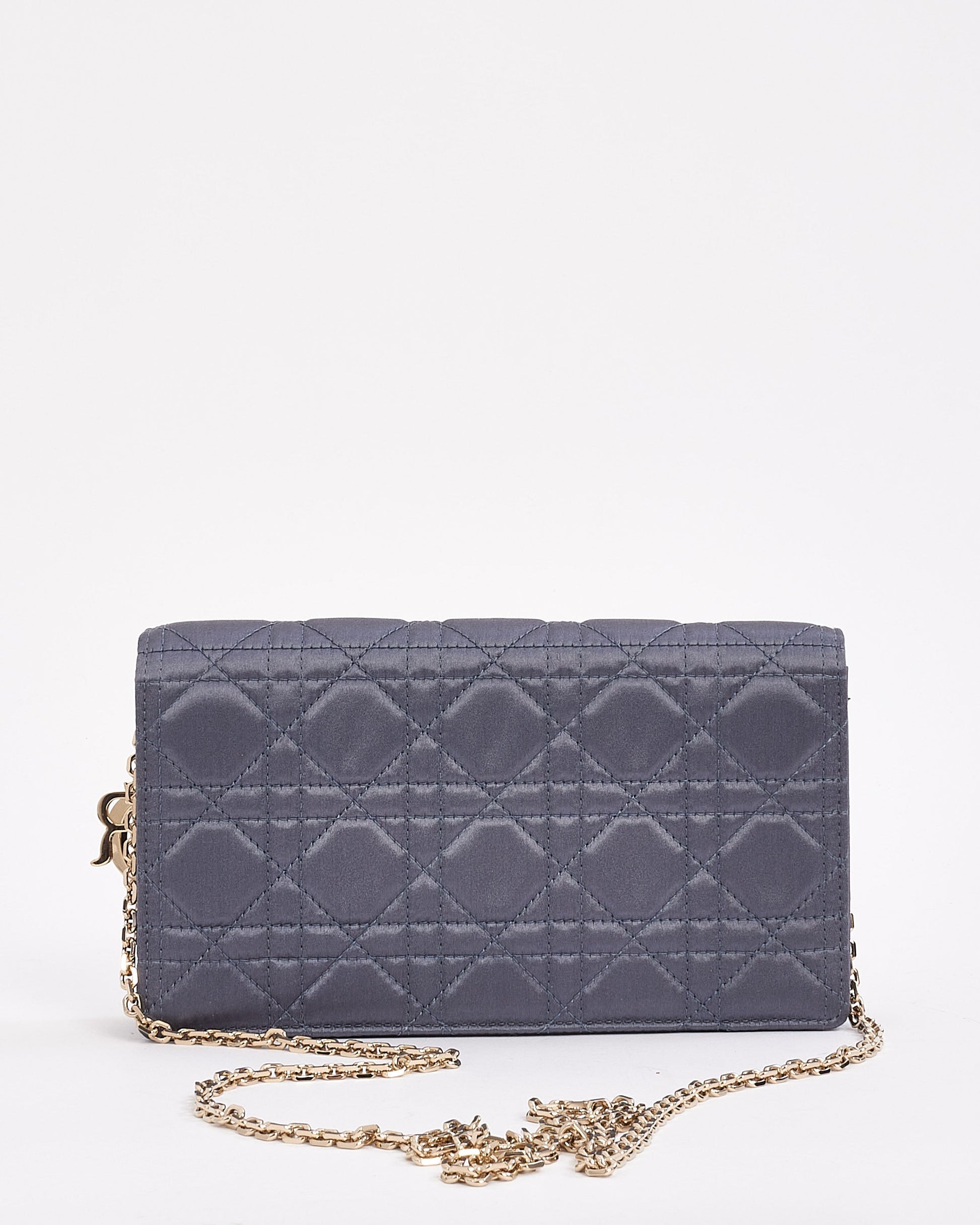 Dior Blue Satin Lady Dior Pouch Wallet on Chain